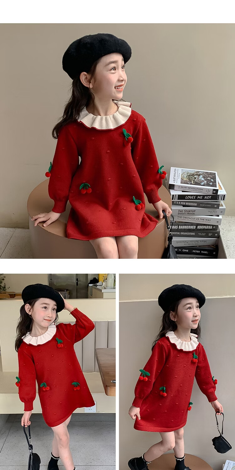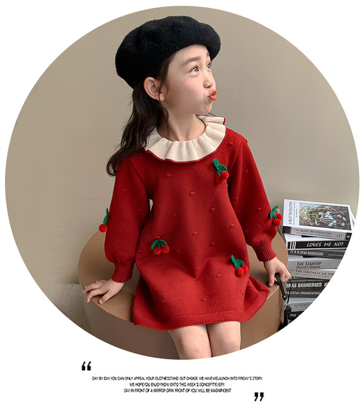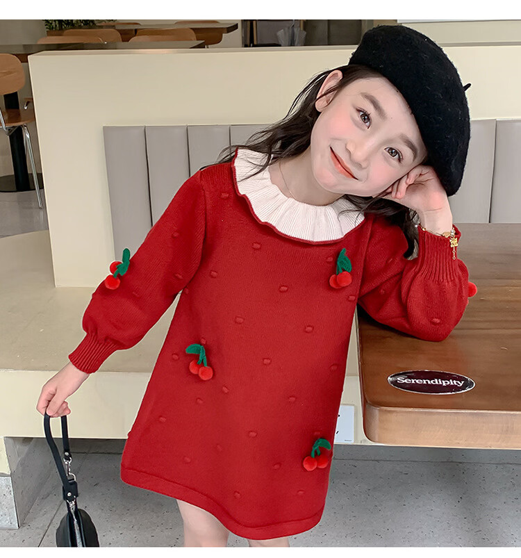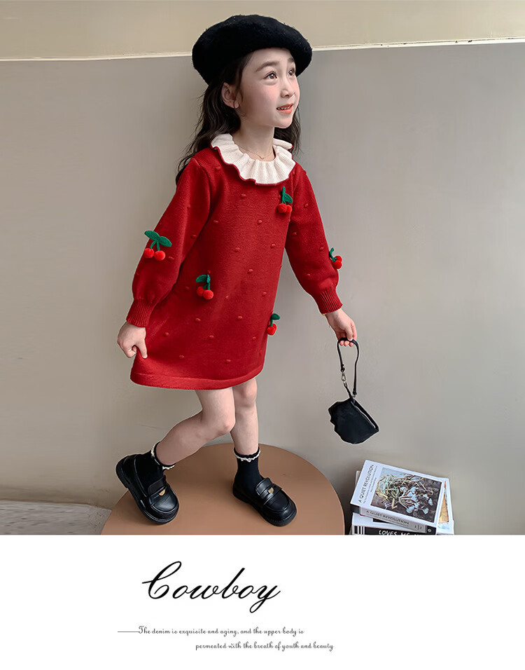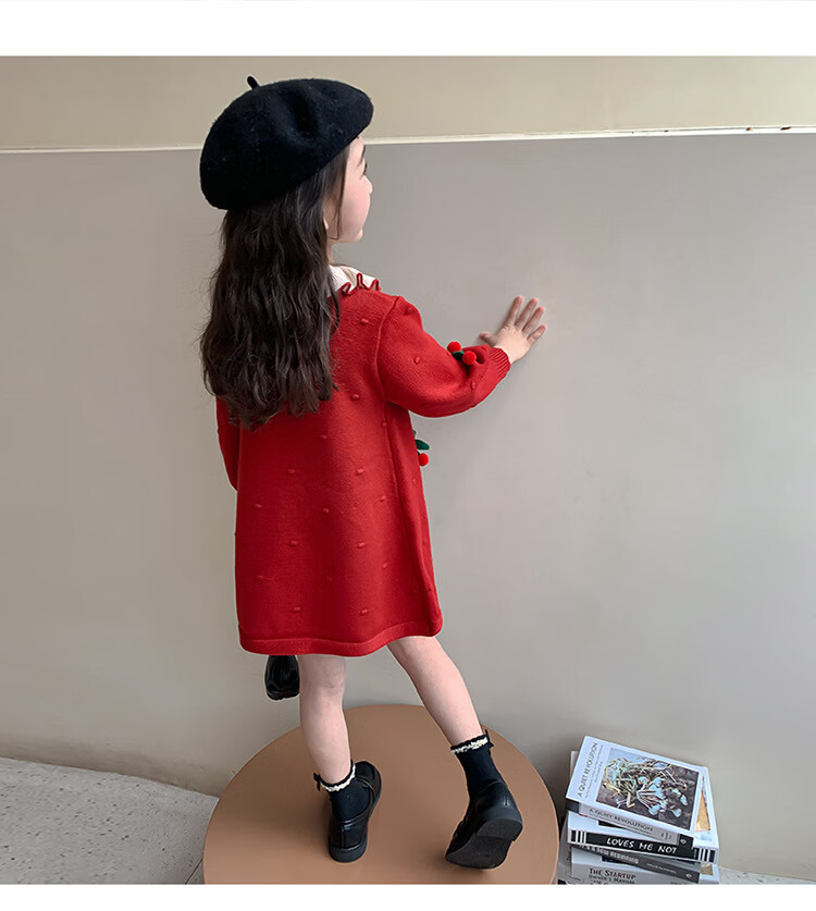 Girls dress, spring dress, children's dress, little girl baby's one-year-old dress, birthday party, spring and autumn A-line dress, red 90