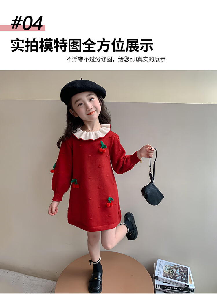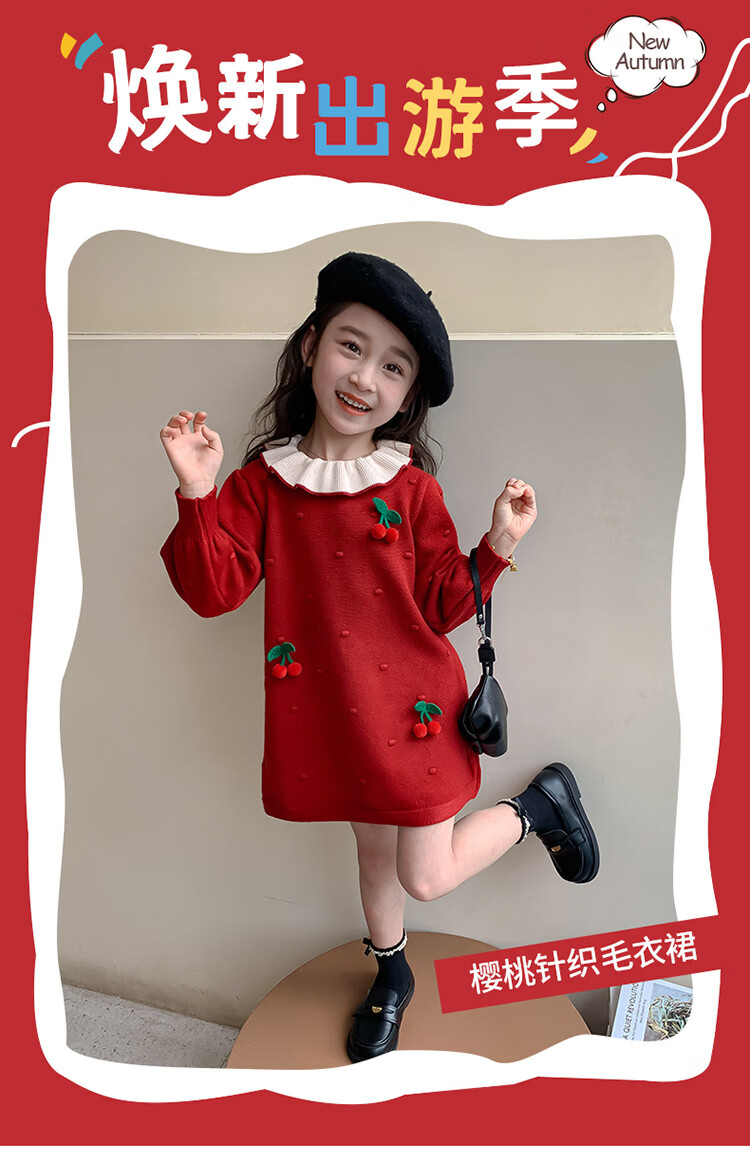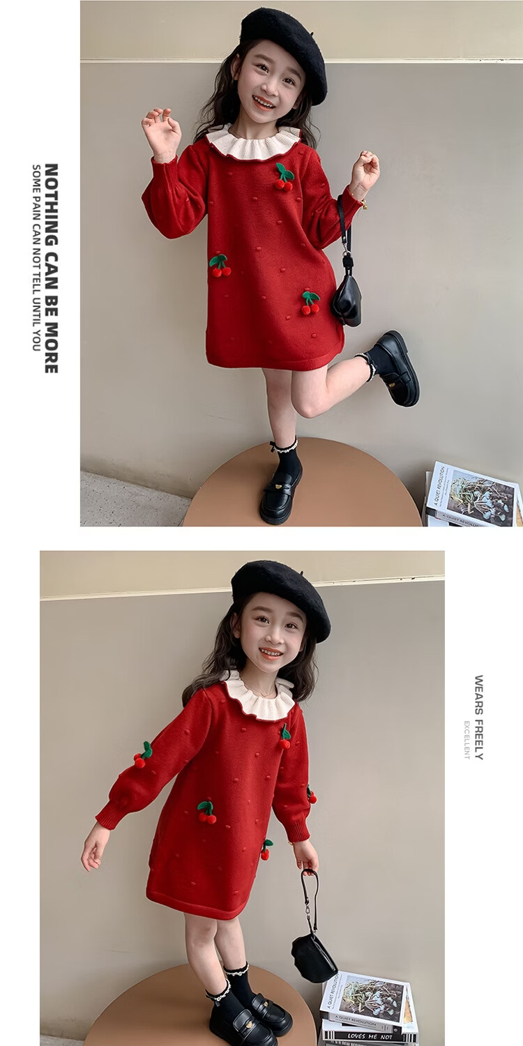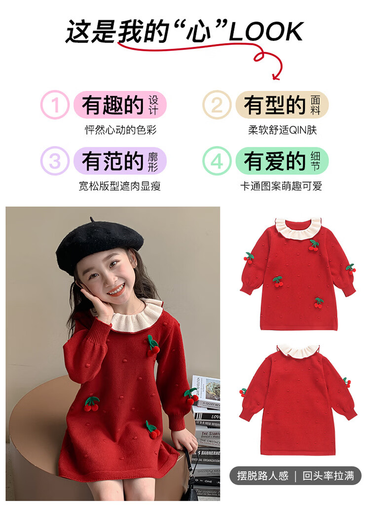 Girls dress, spring dress, children's dress, little girl baby's one-year-old dress, birthday party, spring and autumn A-line dress, red 90