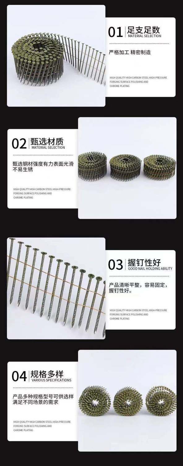 Coiled nails wholesale wooden pallet packaging pneumatic coiled nails plywood coiled nails construction and decoration ring-shaped coiled nails industrial 2.1x50 (9000 pieces) thread