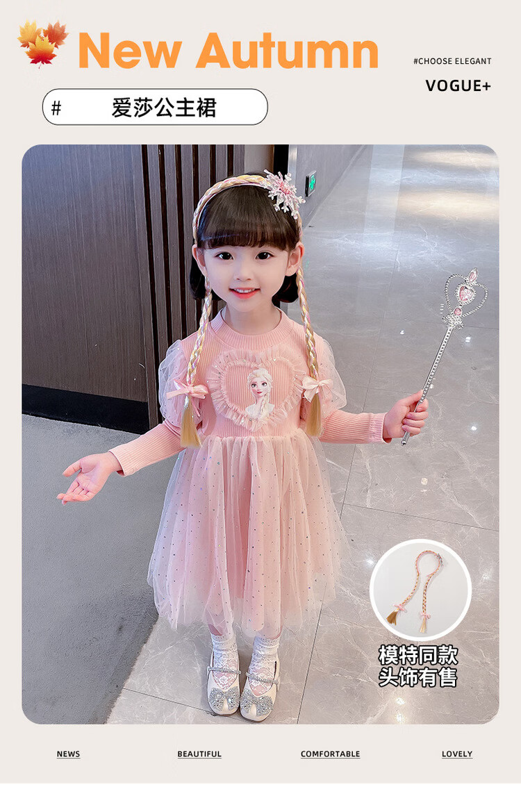 Girls' skirts spring and autumn children's summer dresses 2025 new spring clothes baby girls fashionable Elsa princess skirt pink 120 cm