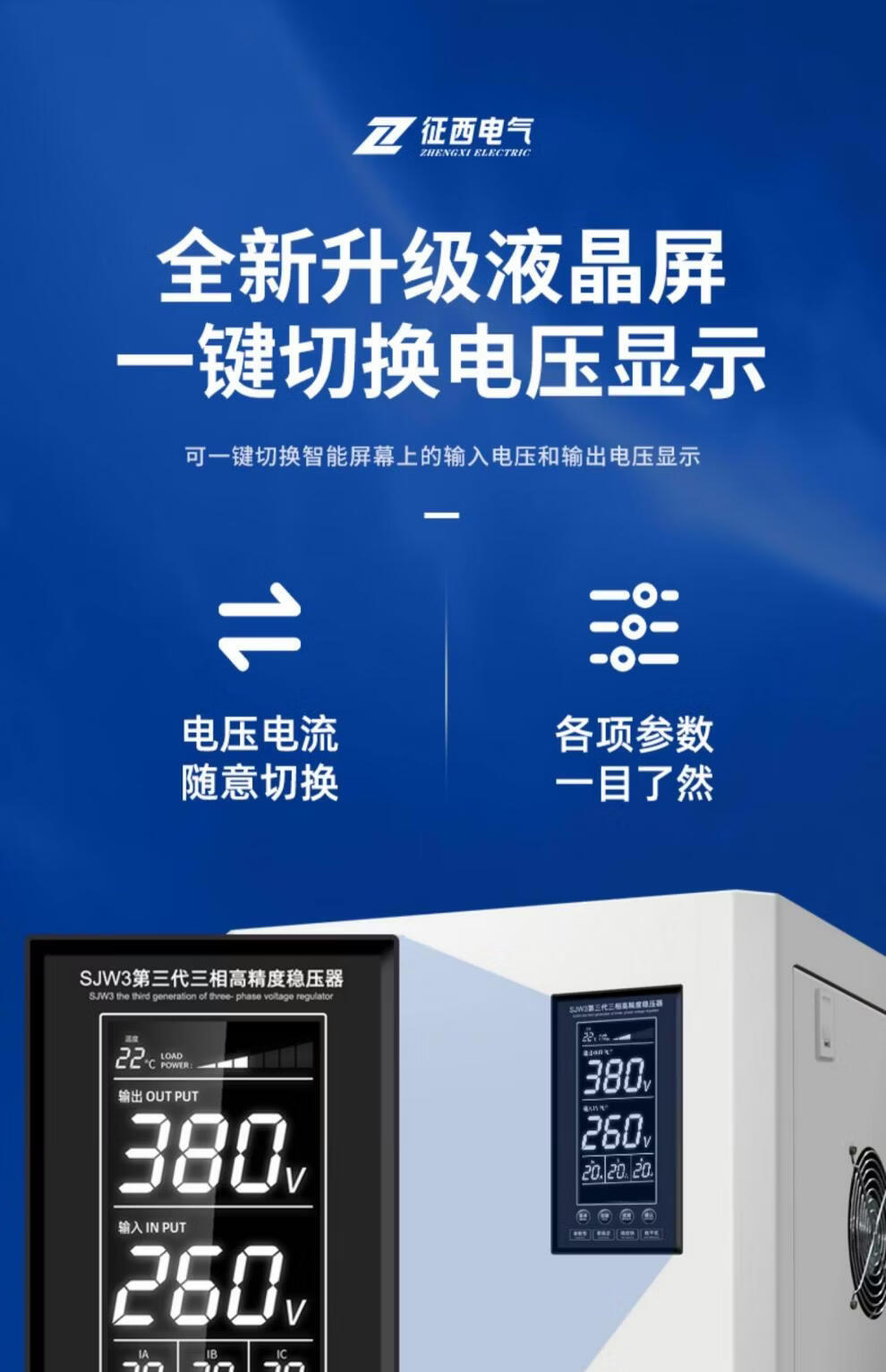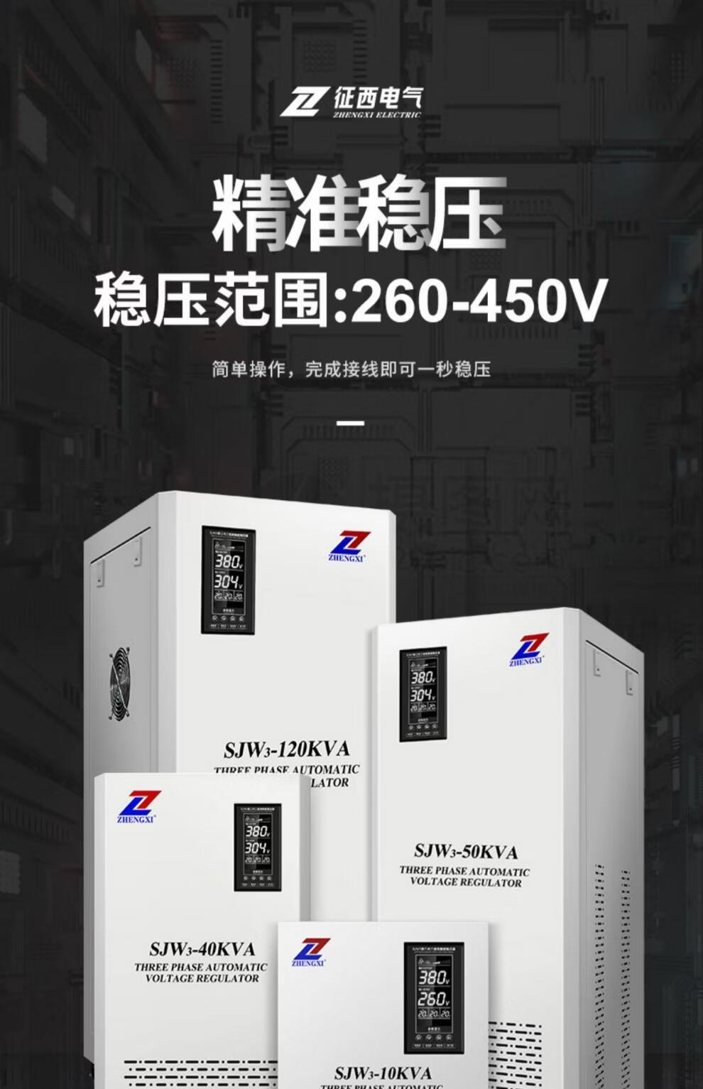 Zhengxi voltage stabilizer three-phase 380v high power fully automatic industrial 30/50/100kw 120 kilowatt voltage stabilizer copper column voltage stabilizer SBW-N250KVA
