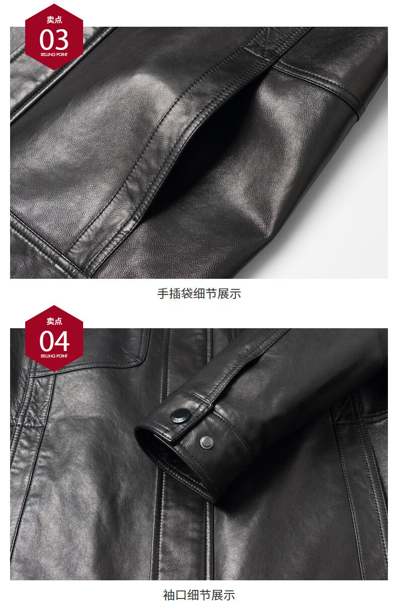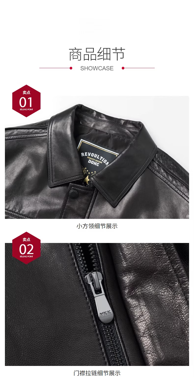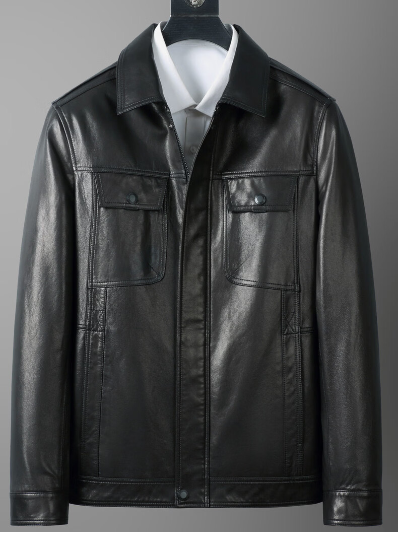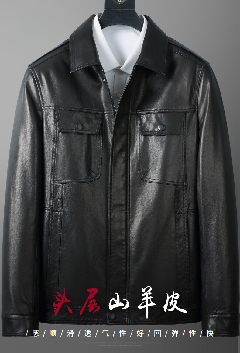 JEEP SPIRIT first layer vegetable tanned goatskin leather jacket Haining genuine leather men's leather jacket 2026 new autumn and winter middle-aged black L 170 103-117Jin Jin equals 0.5 kg