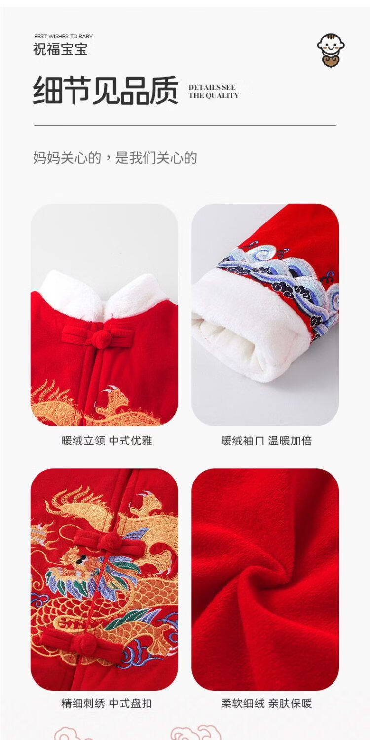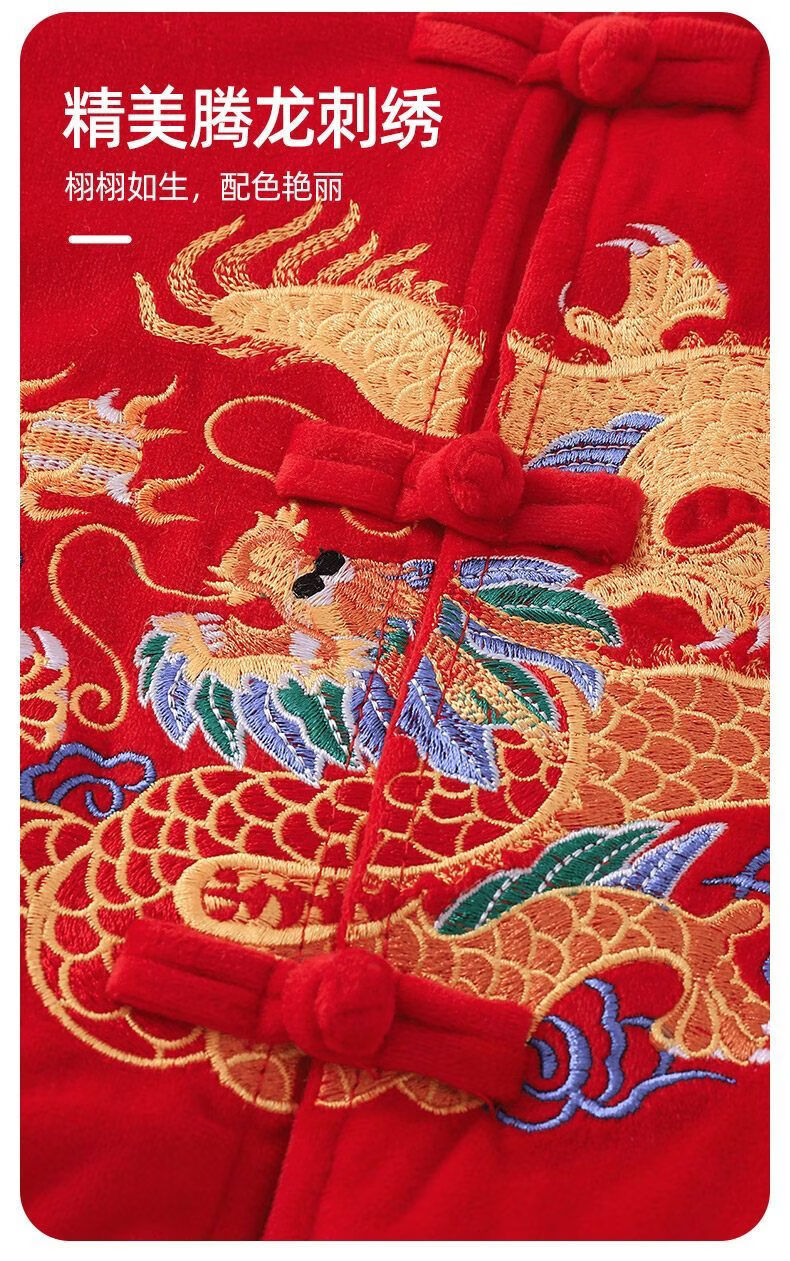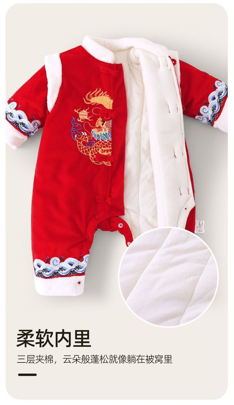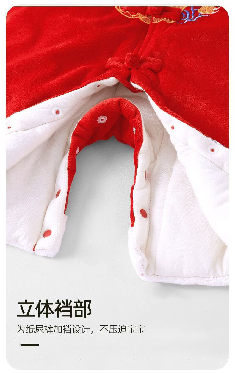 Youqi baby clothes, autumn and winter baby New Year greetings, winter clothes, New Year's full moon clothes, festive jumpsuits, Category A丨Warmth丨Long Dragon 3-piece set, with clothes, lion hat, lucky socks, 59cm, recommended height 52-59CM