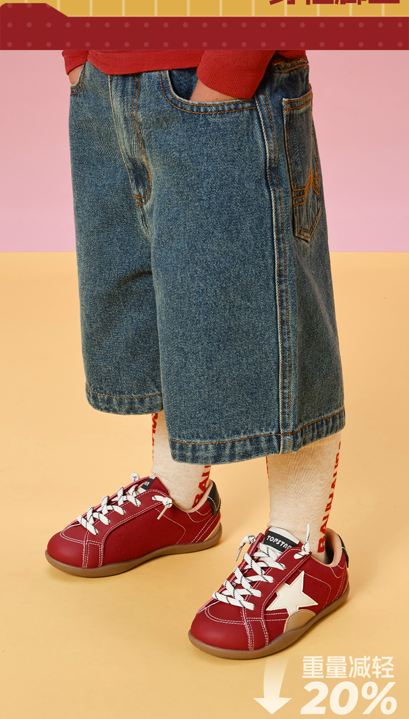TOPSTAR new spring children's sports shoes, breathable boys' toddler shoes, soft sole non-slip girls' casual shoes, indoor sneakers, pink 22, inner length 14.0cm, recommended foot length 13.0cm