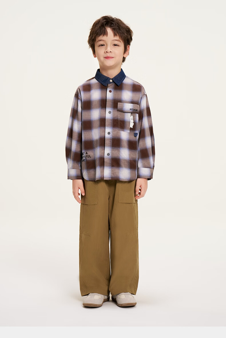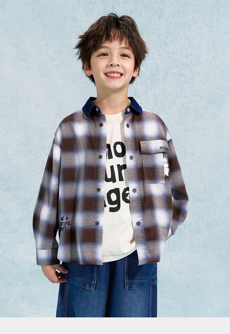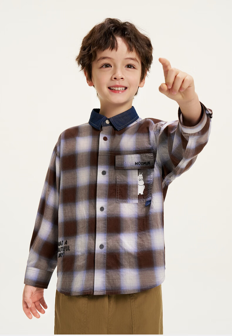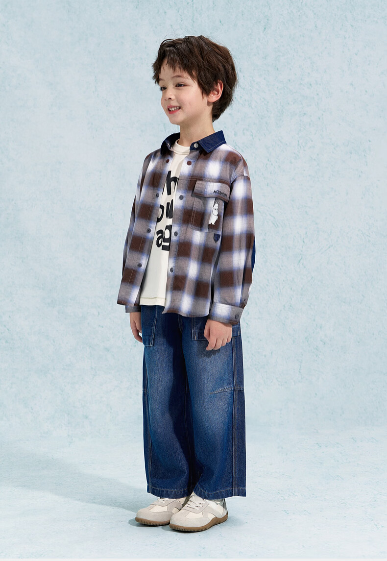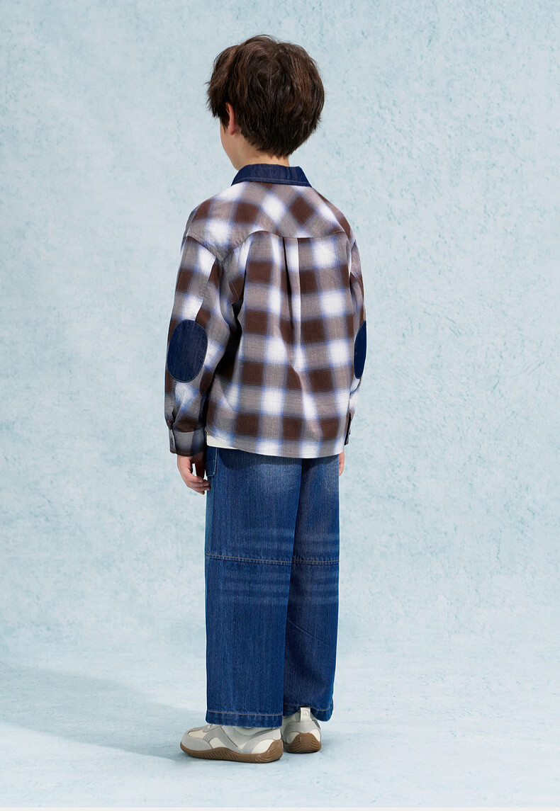 M.Latin Shopping mall same style M.Latin children's shirt 26 spring new style boys' denim splicing long-sleeved shirt Navy blue 130