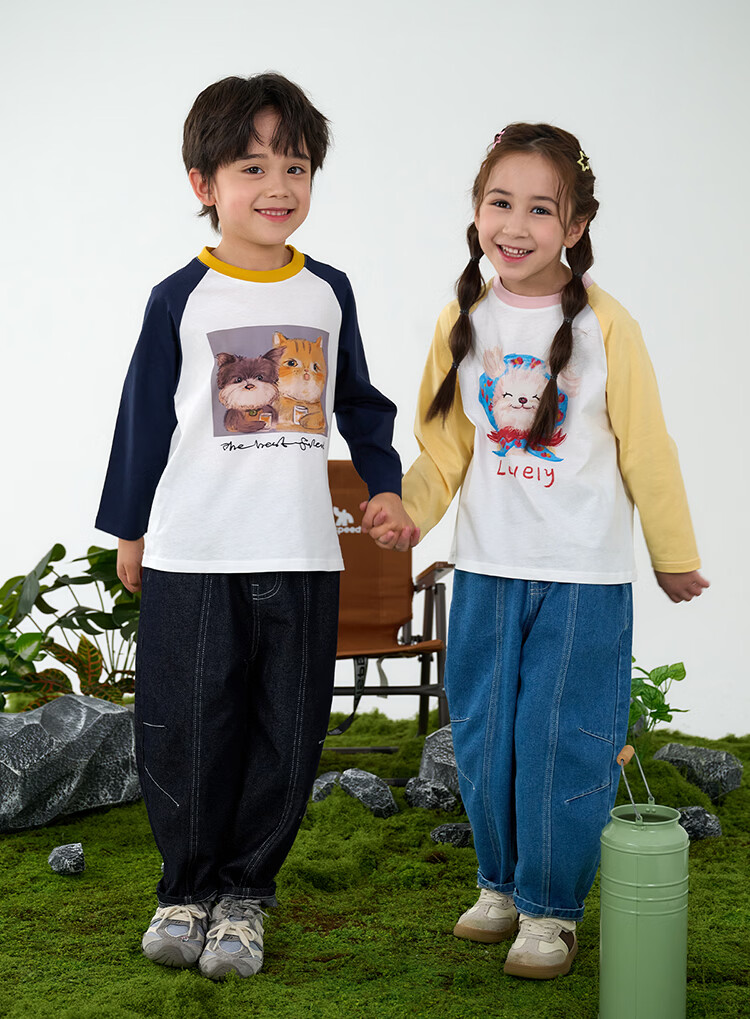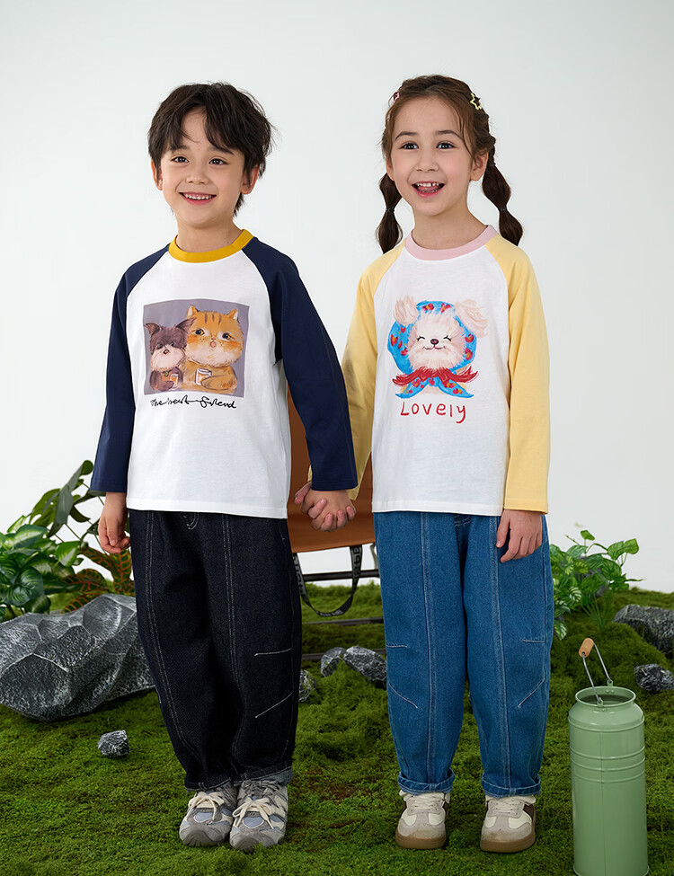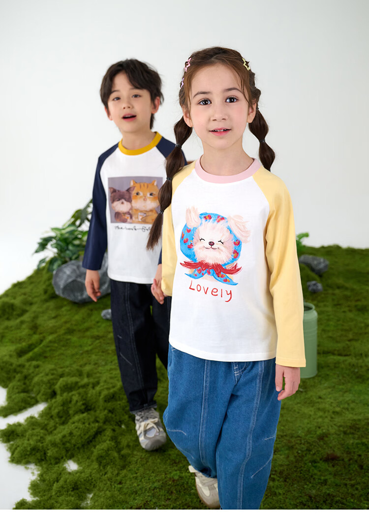 Mianmiantang 100% cotton Mianmiantang children's pure cotton long-sleeved T-shirt spring and autumn baby new girls' bottoming boys' children's clothing Navy 90