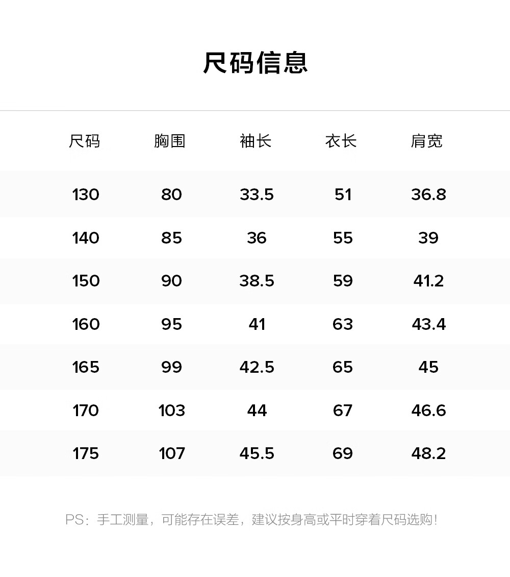 China (cm) 160-165/84-86 165-170 / 88-90 167-172 / 92-96 168-173 / 98-102 170-176 / 106-110