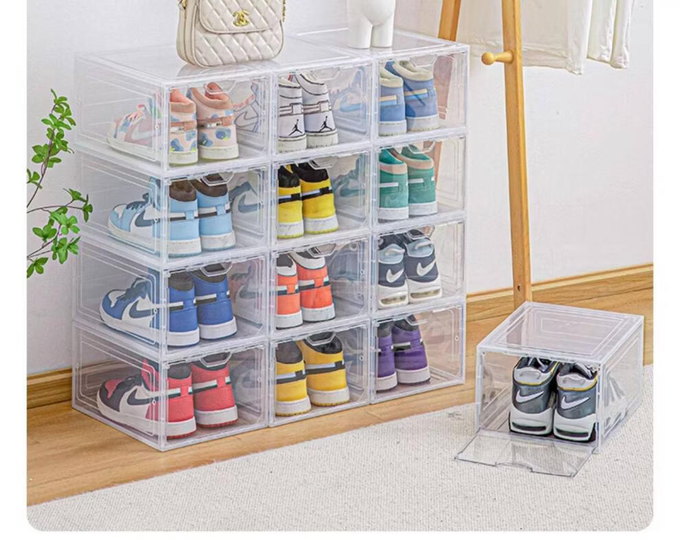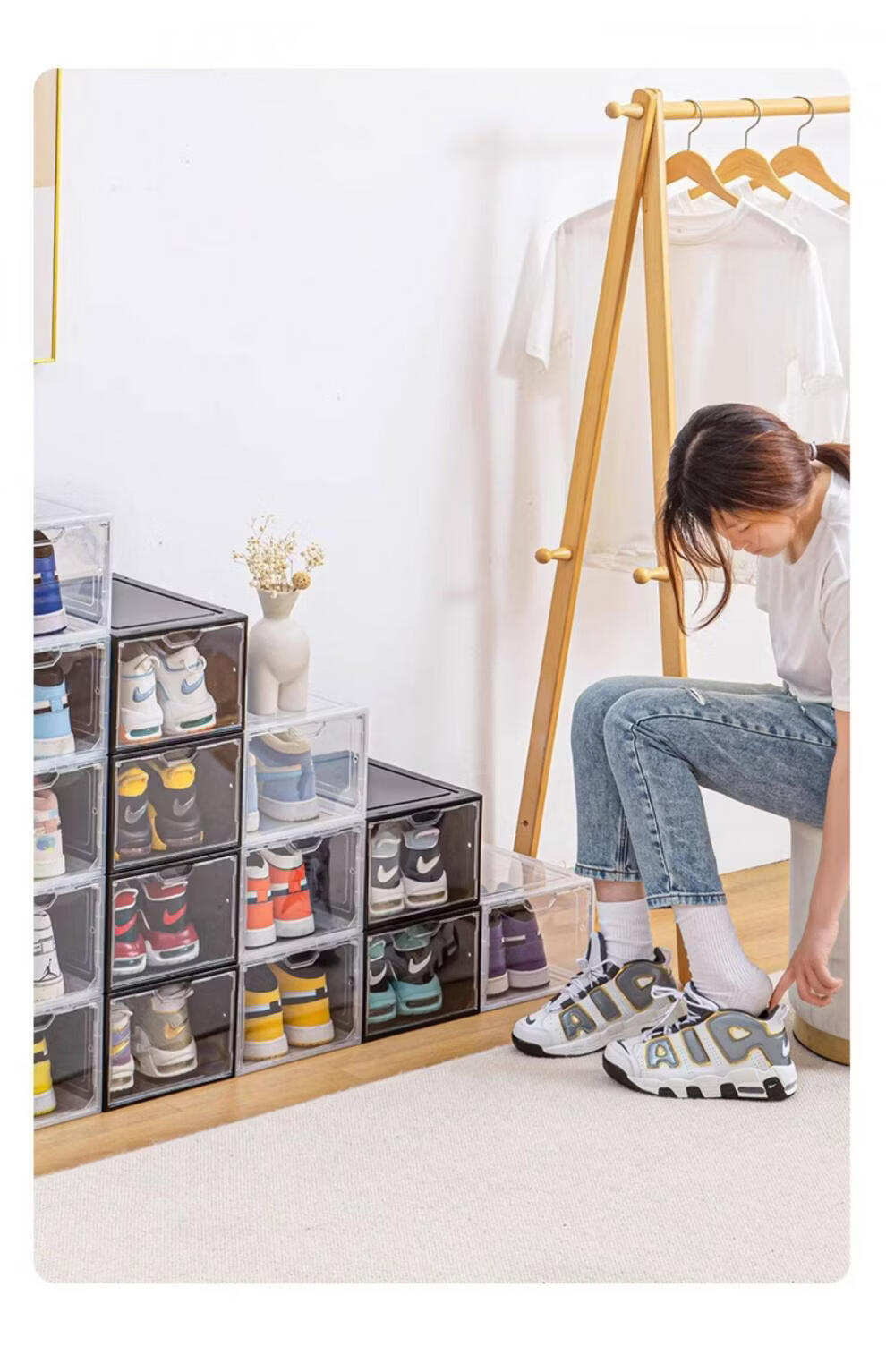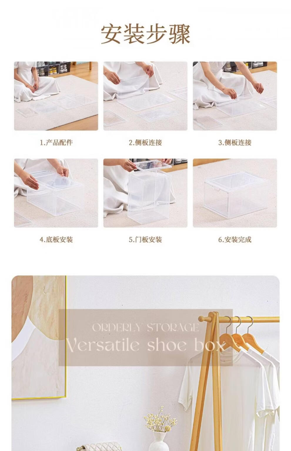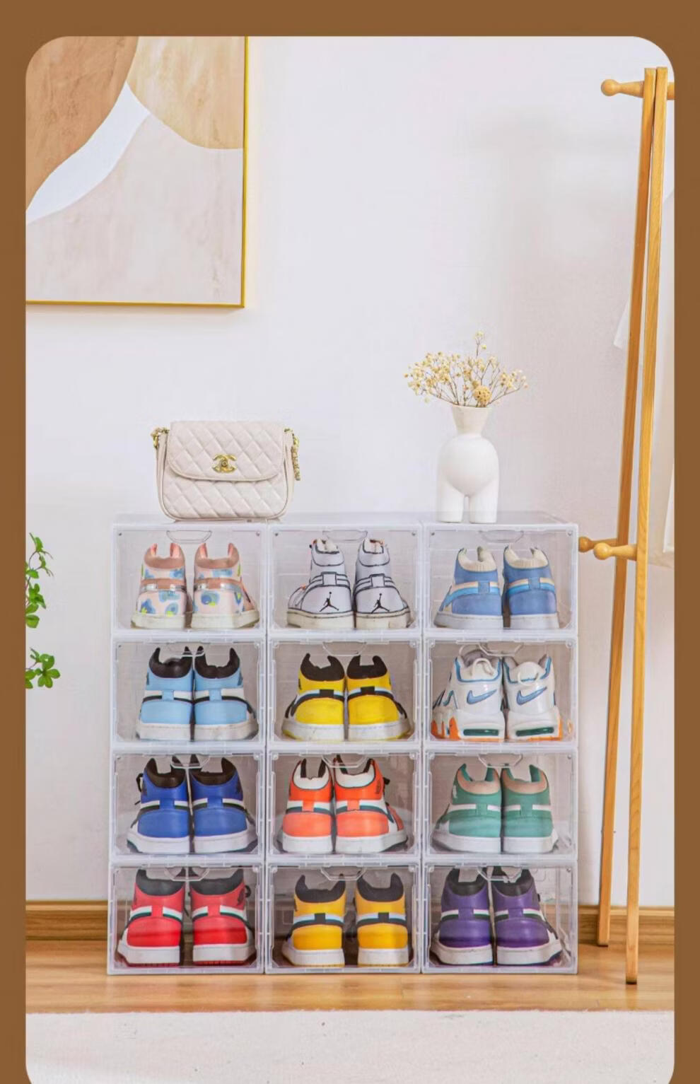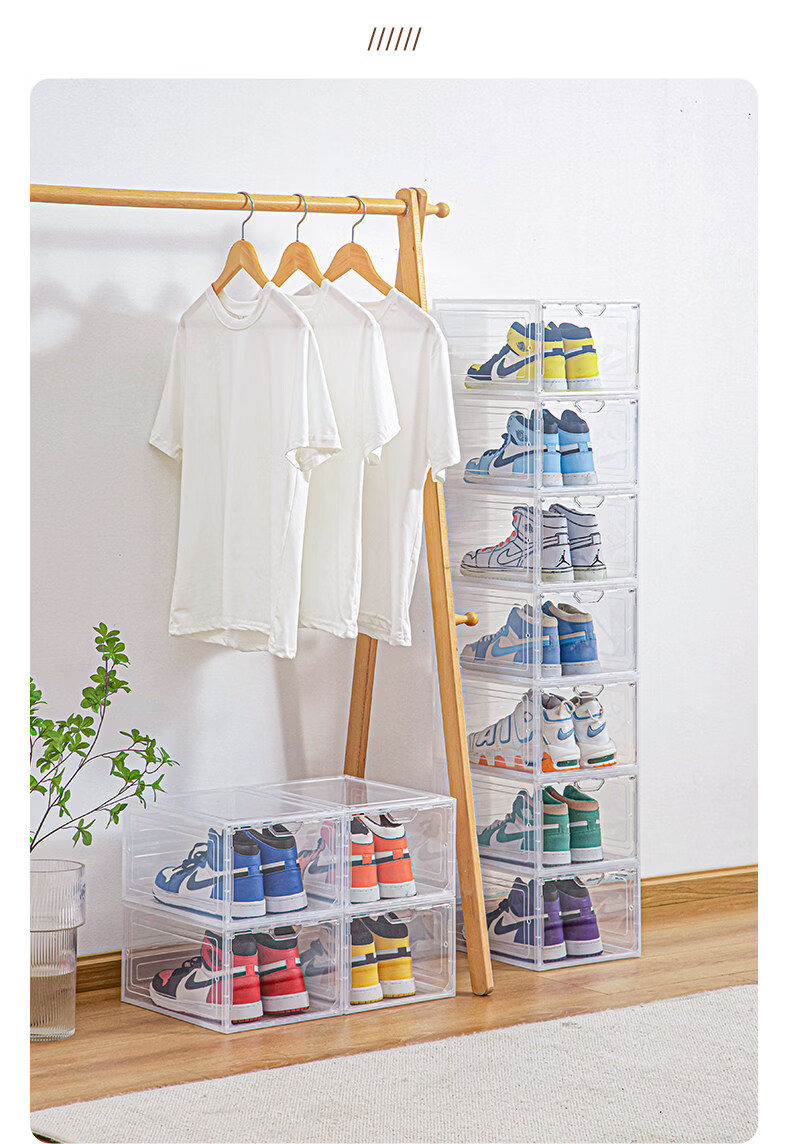 Qi Yuemang Shoe Box Acrylic Transparent AJ Sneaker Storage Box Magnetic Folding Plastic Shoe Cabinet Dormitory Space-Saving Artifact C Short Transparent Front Opening Shoe Box 8 Pack_ 25*33.5*14cm 0x0x0cm