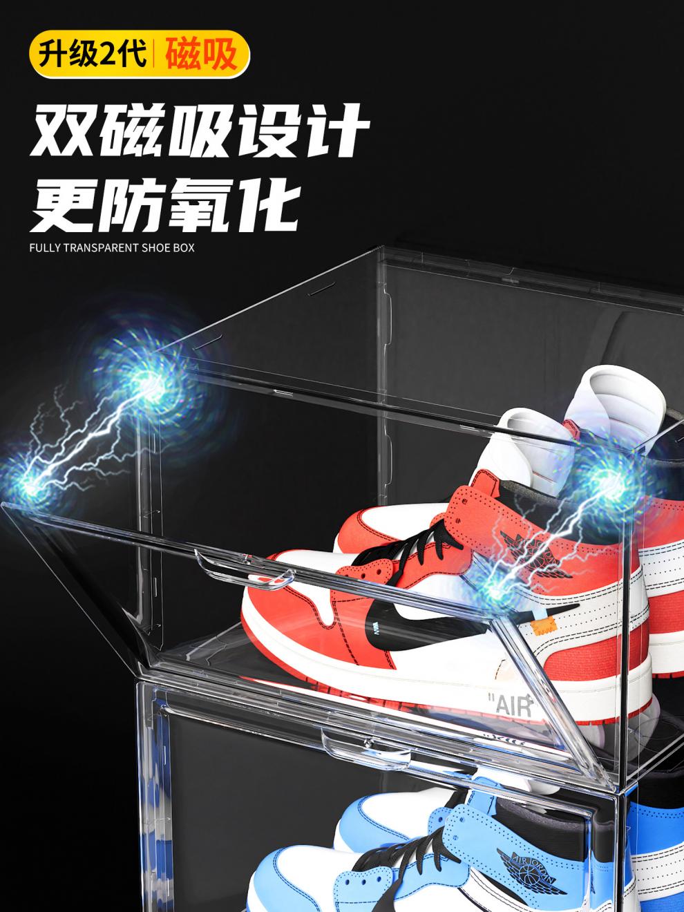 Qiyue Mang aj shoe box storage box transparent shoe storage box artifact space saving sneaker shoe cabinet shoe rack shoe wall shoe storage _double magnetic ____ anti-oxidation _package 48 size fully transparent _4 pcs