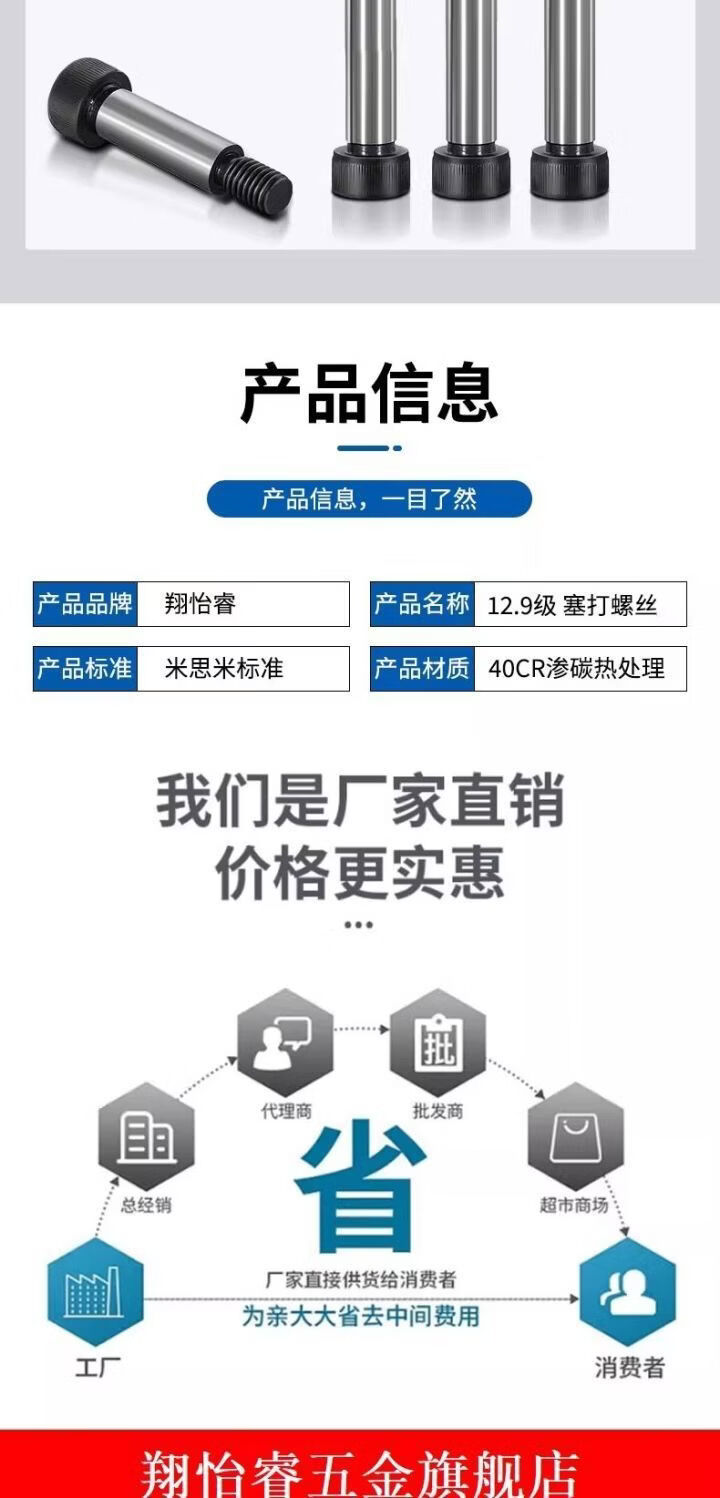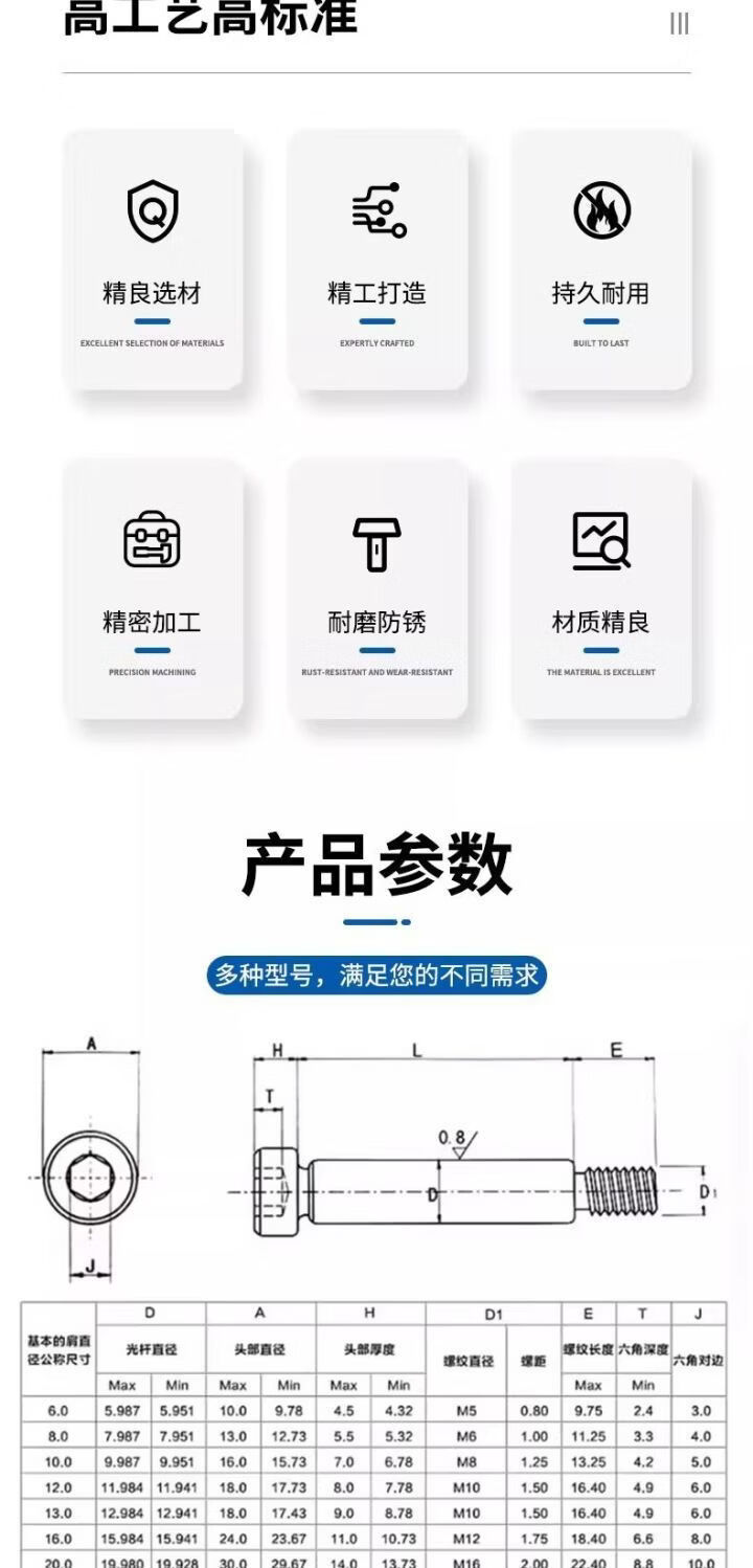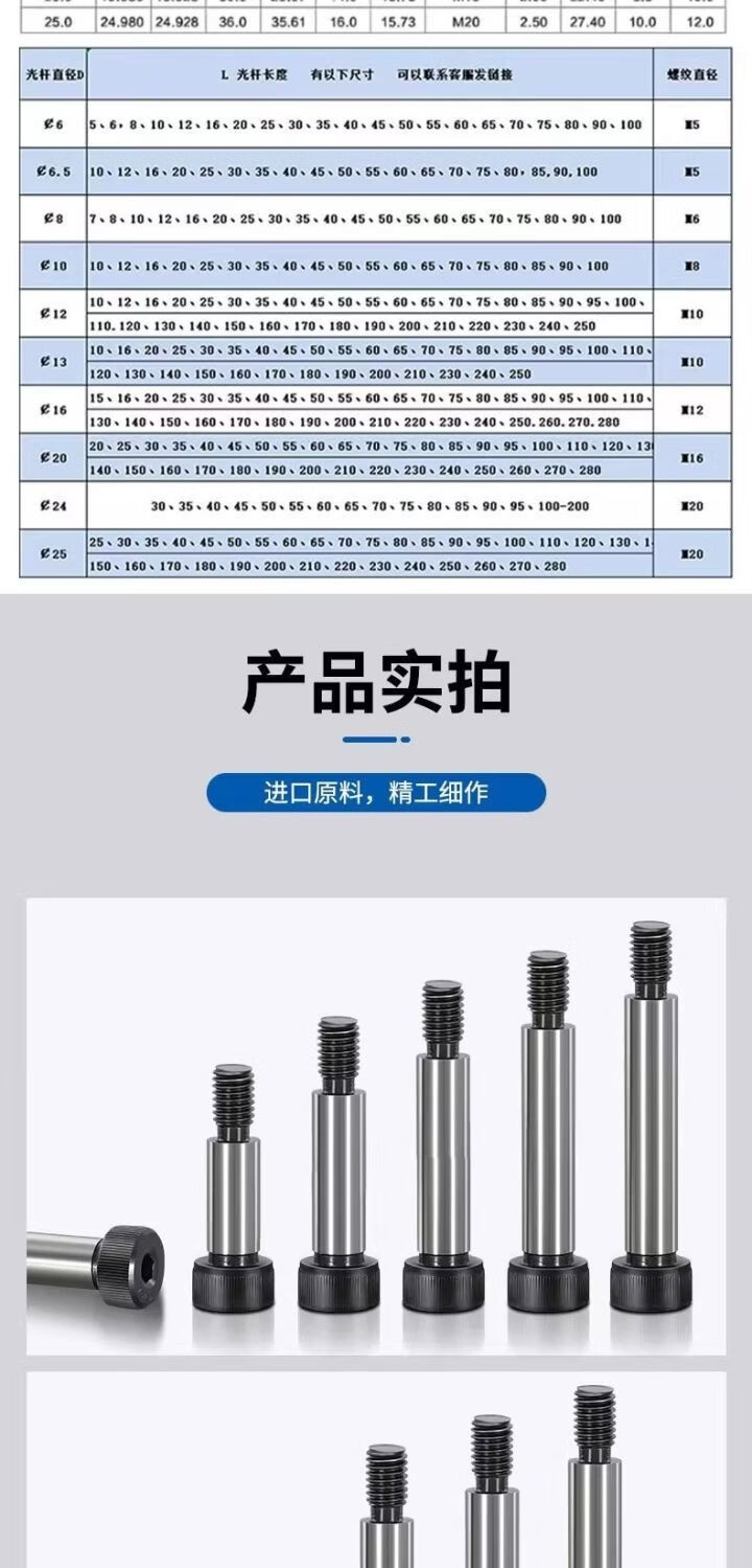CLCEY Pengchi 129 grade inner hex plug screw screw and high limit shoulder shoulder rod diameter 665 round 6*M50 points 8*1280 pcs