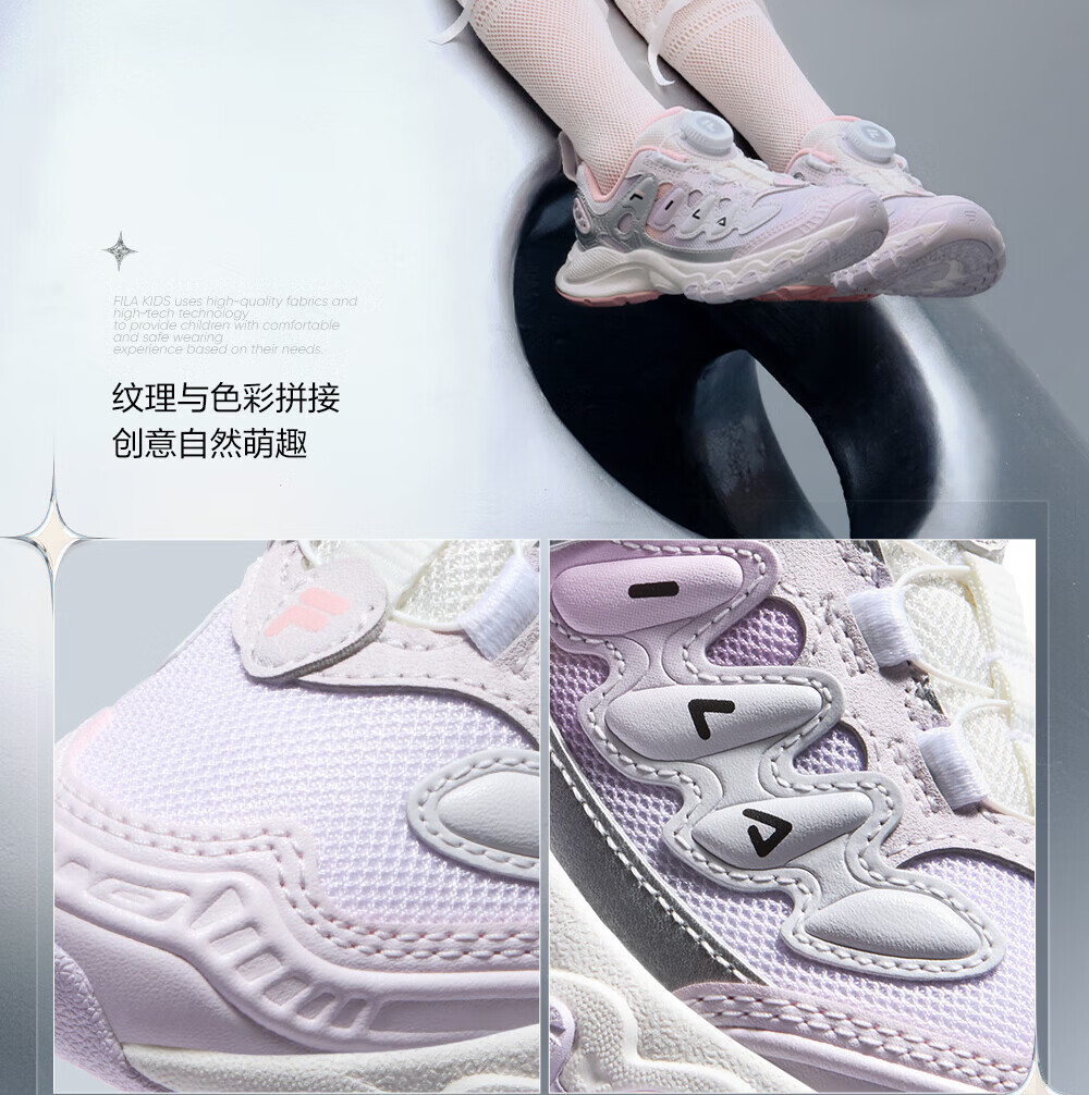 FILA Children's Shoes Running Shoes 2026 Spring New Men's and Women's Sports Shoes Mushroom Shoes Lilac/Orchid Purple-OW 25