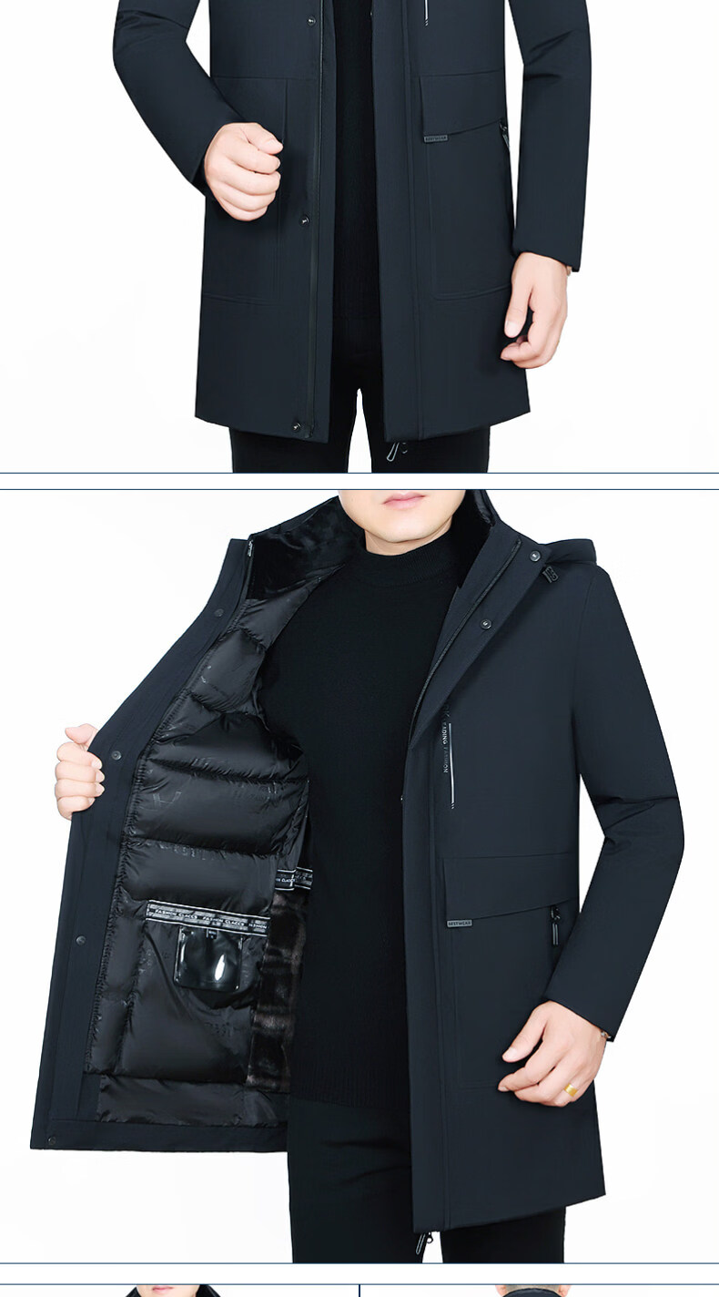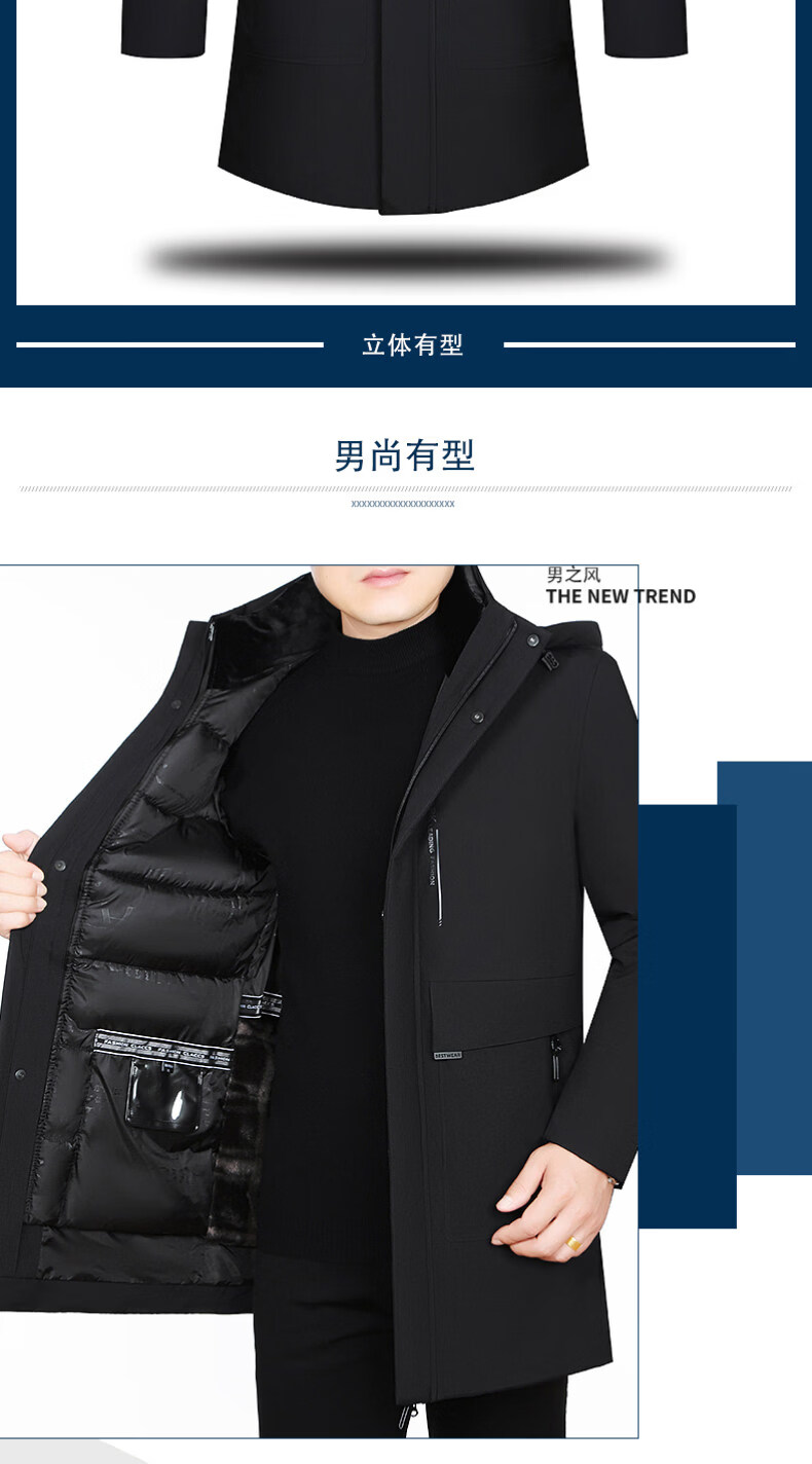 Hengyuanxiang new winter removable liner cotton coat men's medium-length thickened coat workwear middle-aged cotton jacket down jacket navy blue S 165/88A