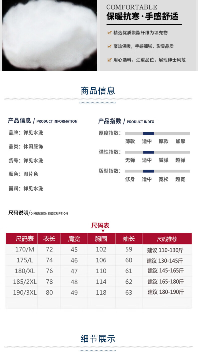 China (cm) 165 / 88-90 170 / 96-98 175 / 108-110 180 / 118-122 185 / 126-130