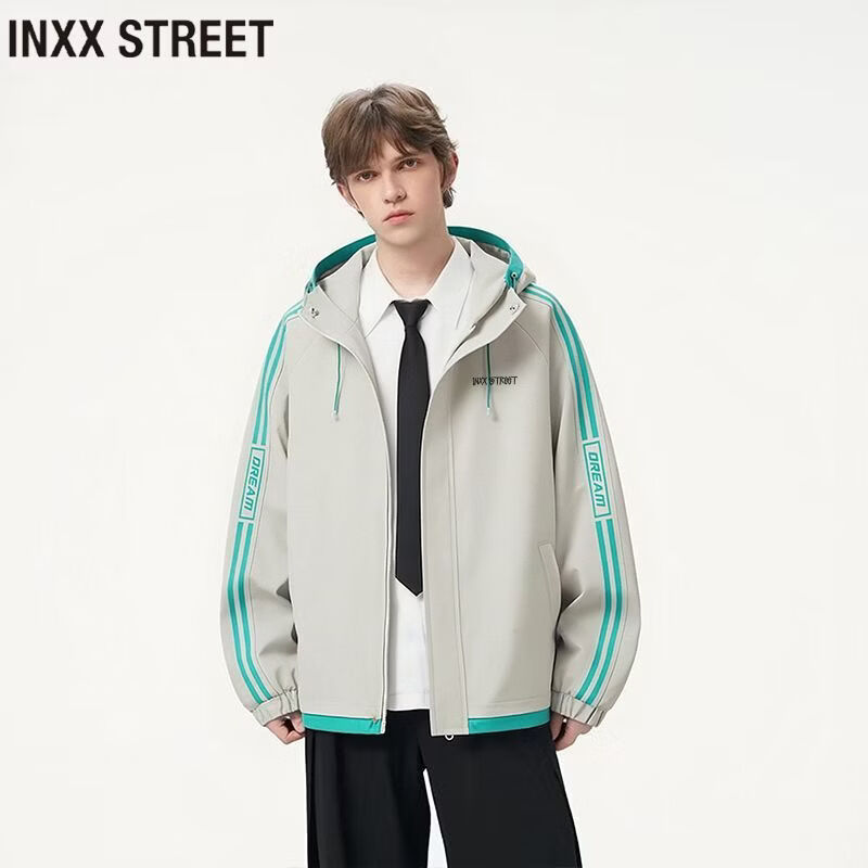 Inxx (inxx) INXX STREET American trendy brand loose hooded jacket men's spring and autumn new contrast color versatile casual jacket black M