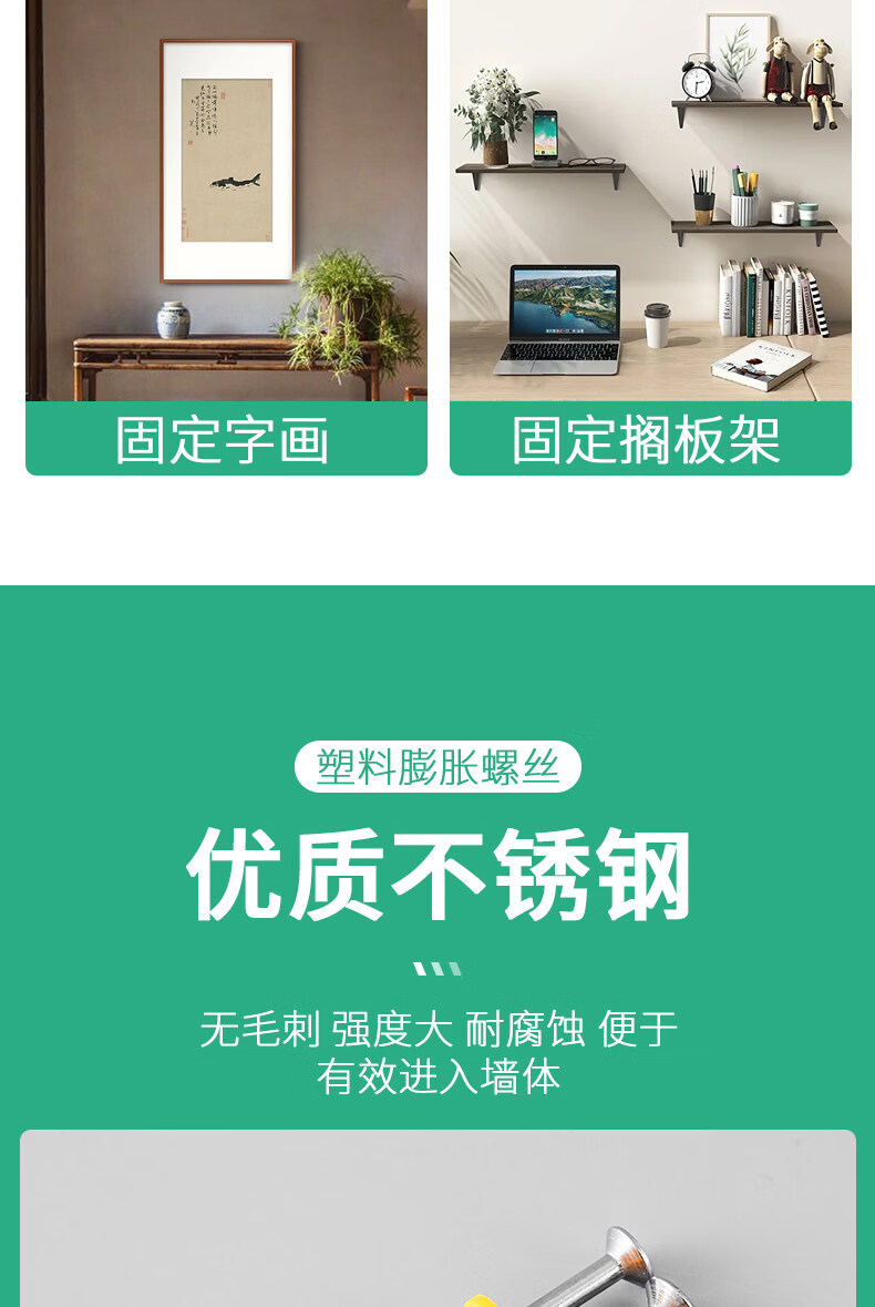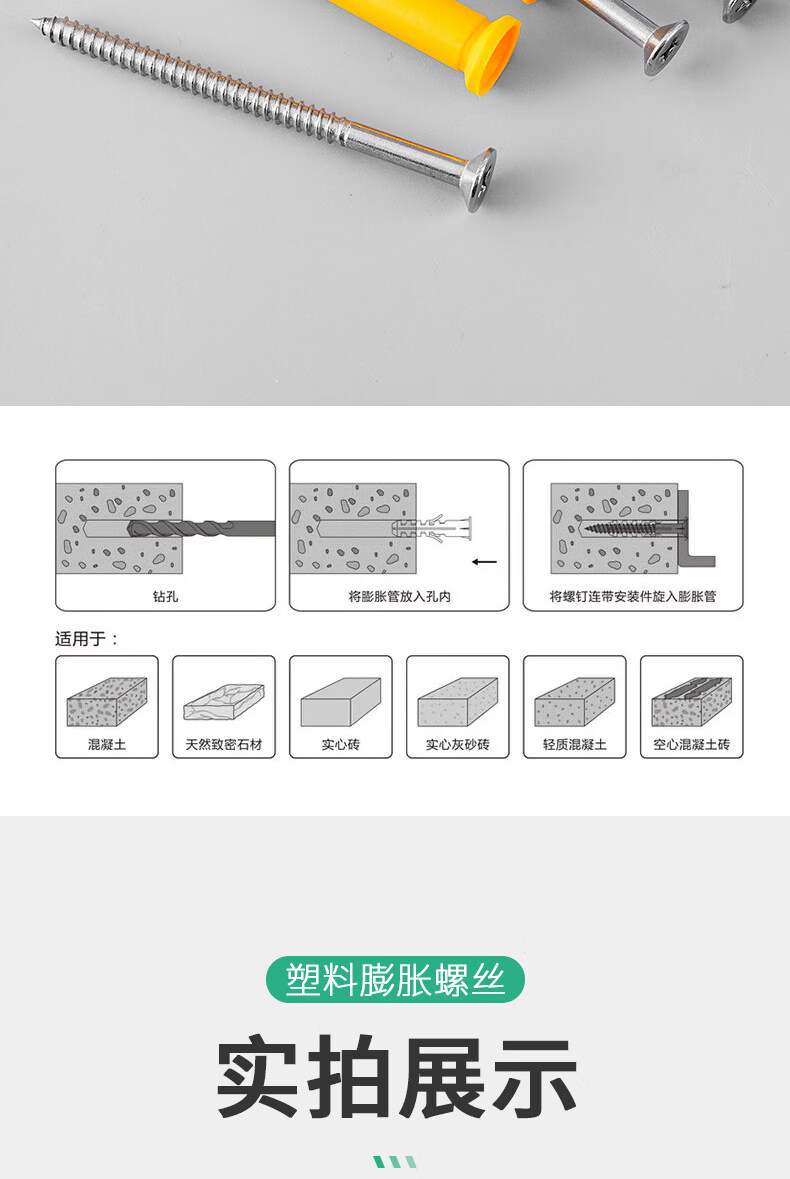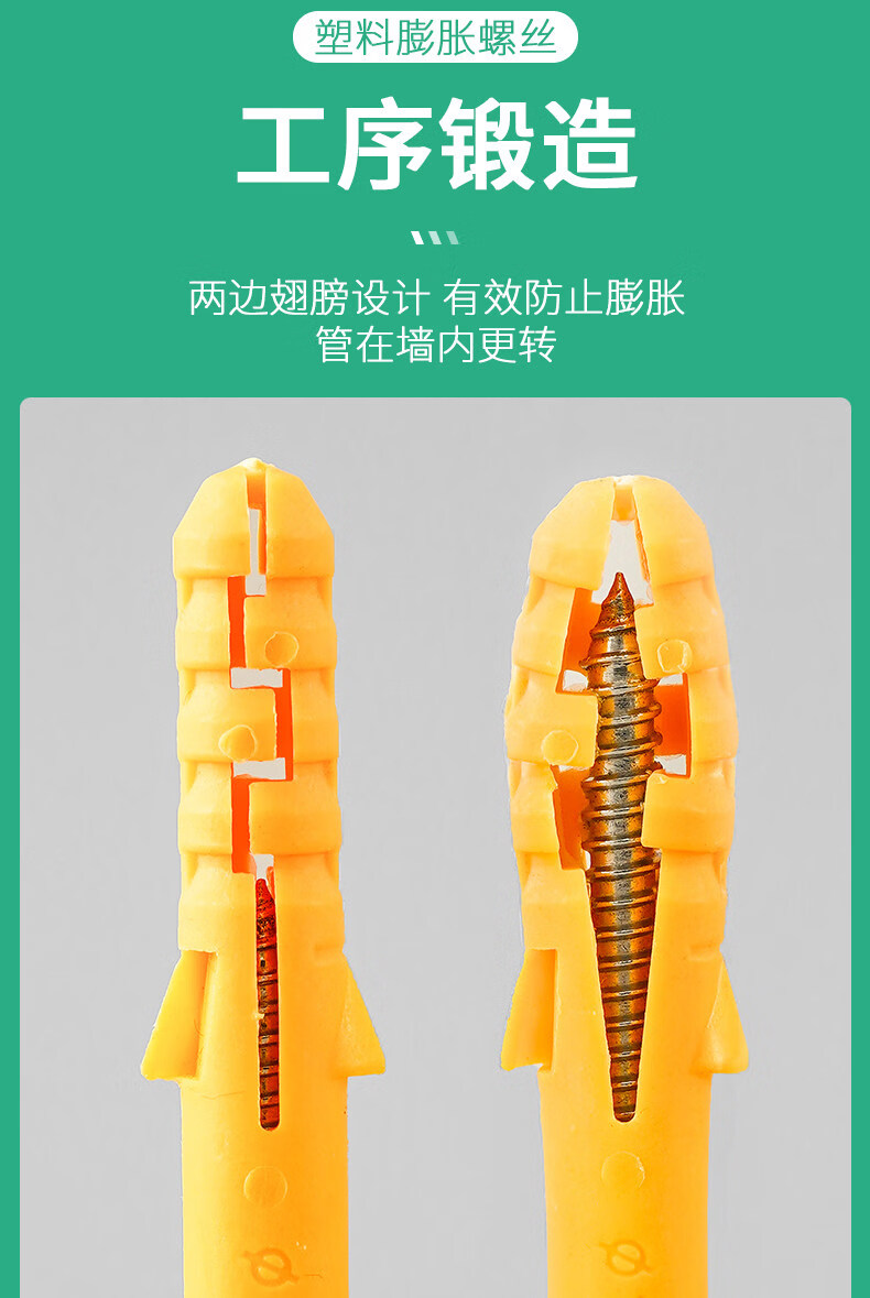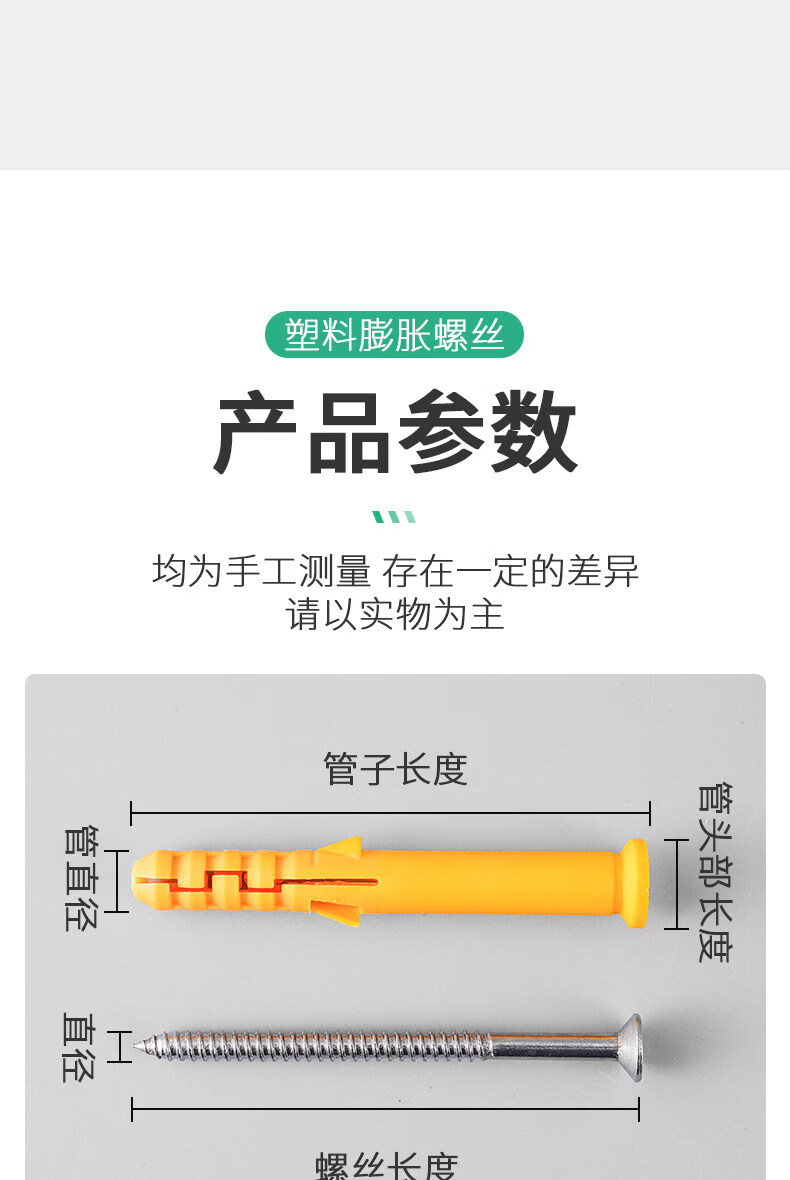 Fantasy expansion screw 8mm small yellow croaker nylon plastic expansion tube lengthened expansion screw rubber plug bolt expansion plug self-tapping M6*30+color zinc nails (530 sets/14 packs)