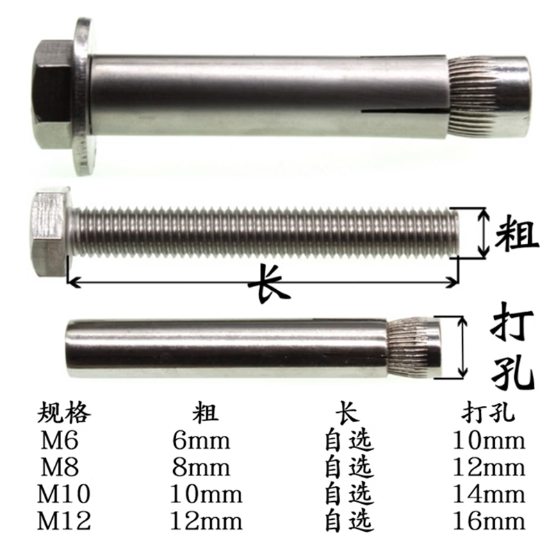 Fantasy expansion screw 8mm extra long internal expansion screw full body 304 stainless steel external hexagonal internal expansion screw length 18 punch 12 M8*200 4 pieces