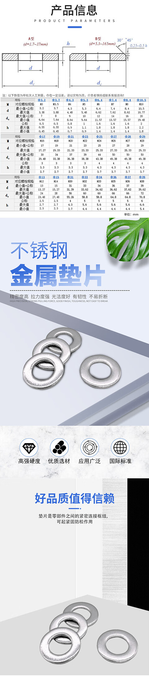 304316 stainless steel GB971 hardened high strength flat washer M3M39DIN125200300HV M2430410 only