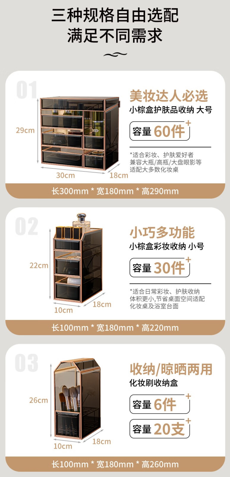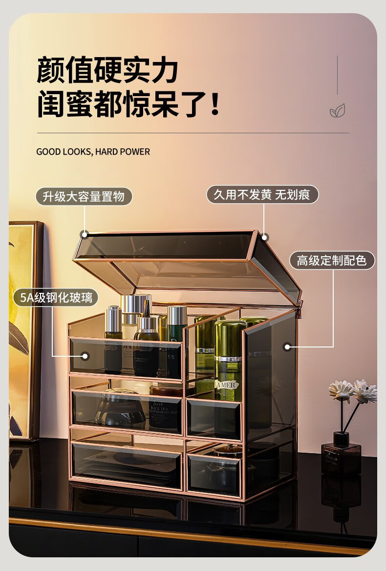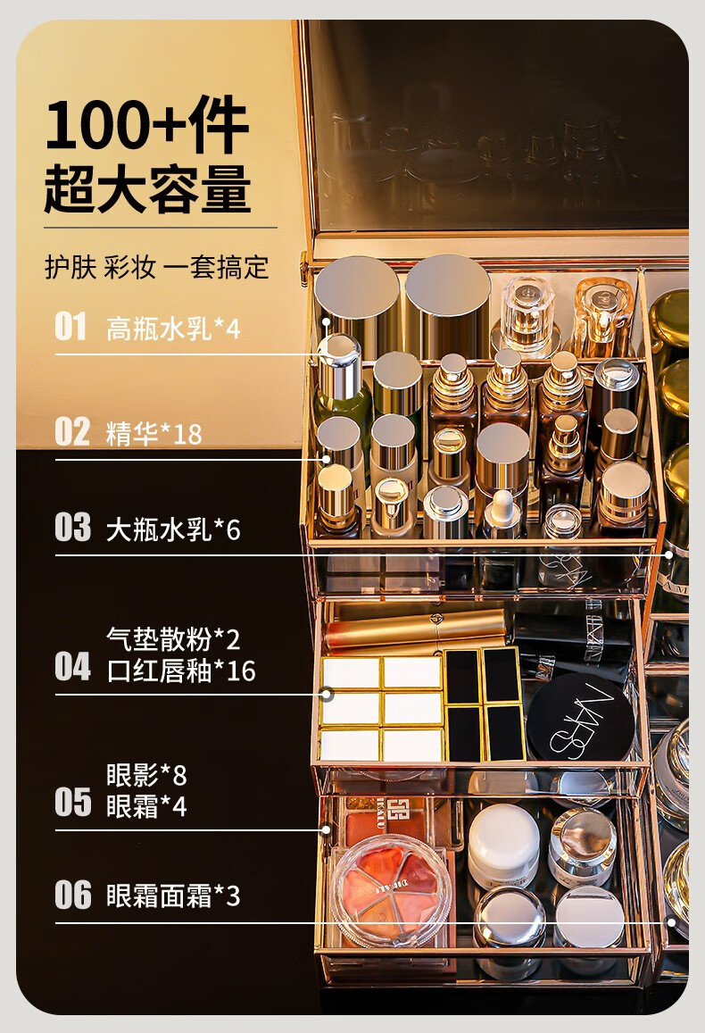 RSRDDY Cosmetic Storage Box Desktop Glass Skin Care Product Storage Box Light Luxury Beauty Brush Storage Rack Small Black Box Series Three-piece Set