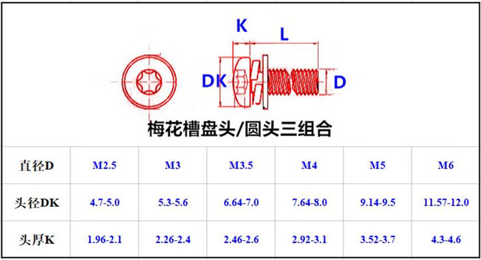 Junmo M3 stainless steel 304 inner plum groove pan head round head anti-theft three-combination screw G672 three-combination screw M3*6mm
