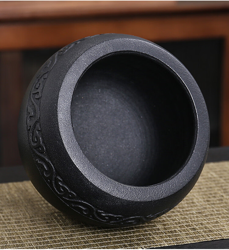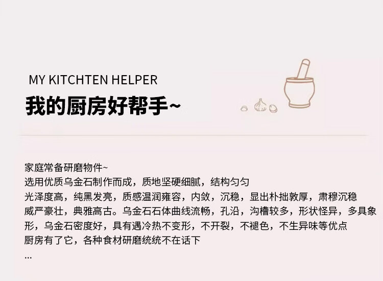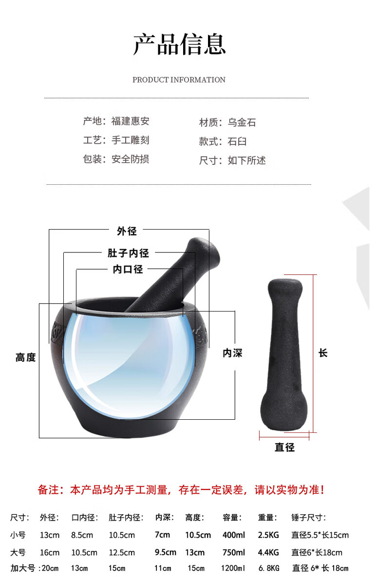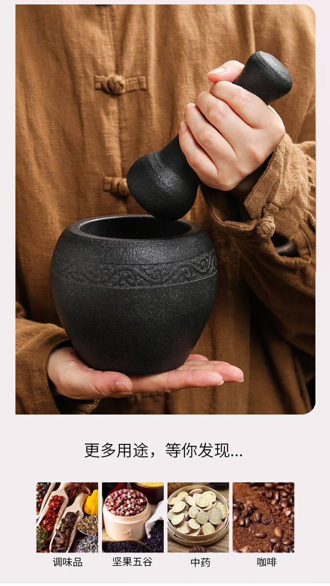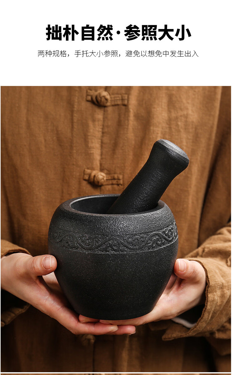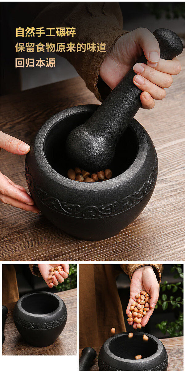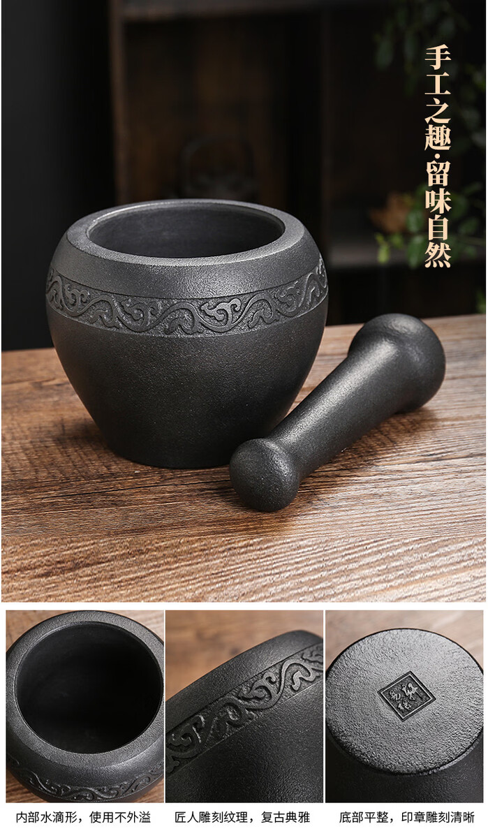 Miaopule natural black gold stone bowl pepper grinder, old-fashioned stone cup, traditional stone mortar, garlic pounding tool with stone scoop, easy black gold stone outer diameter 13, plain water drop shape design