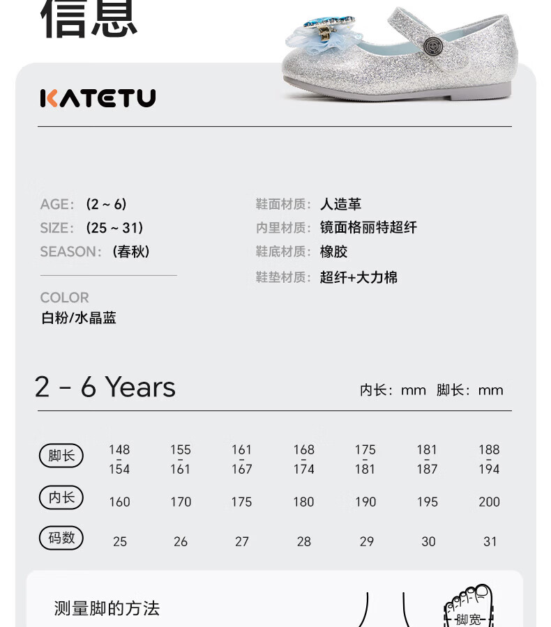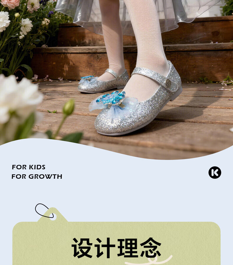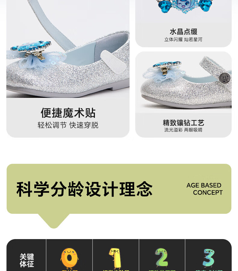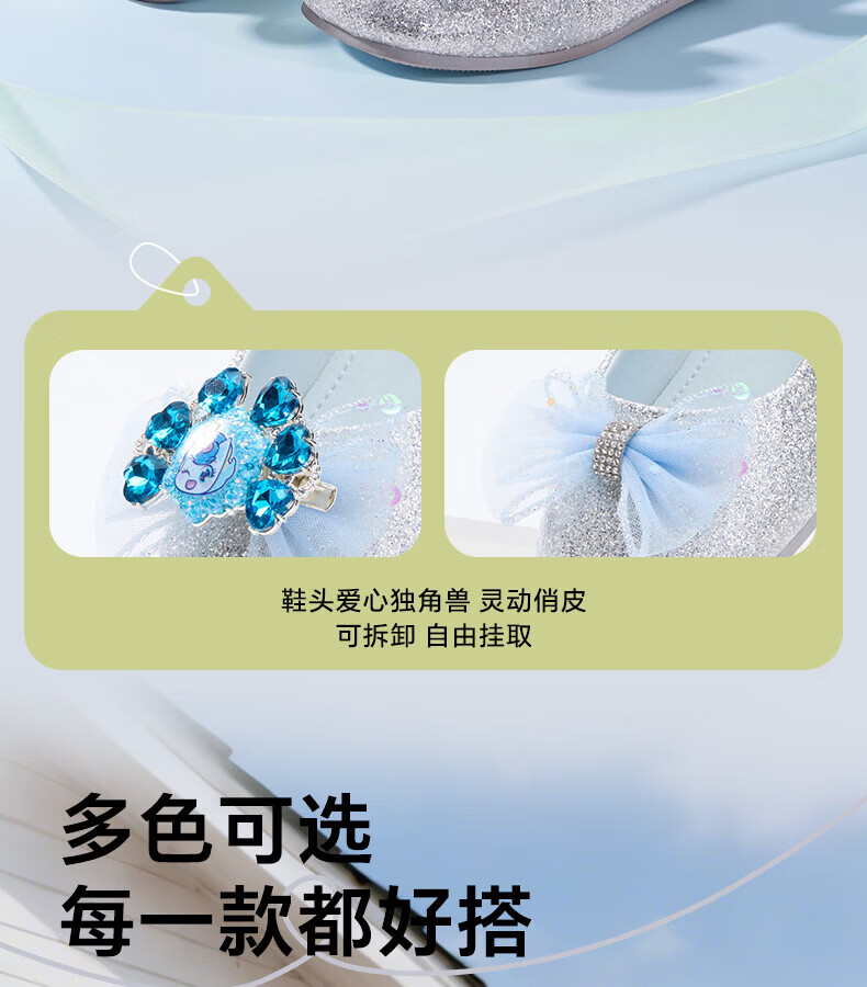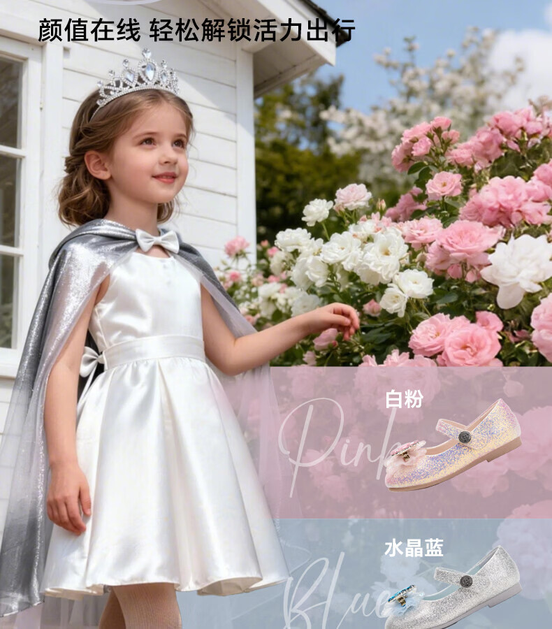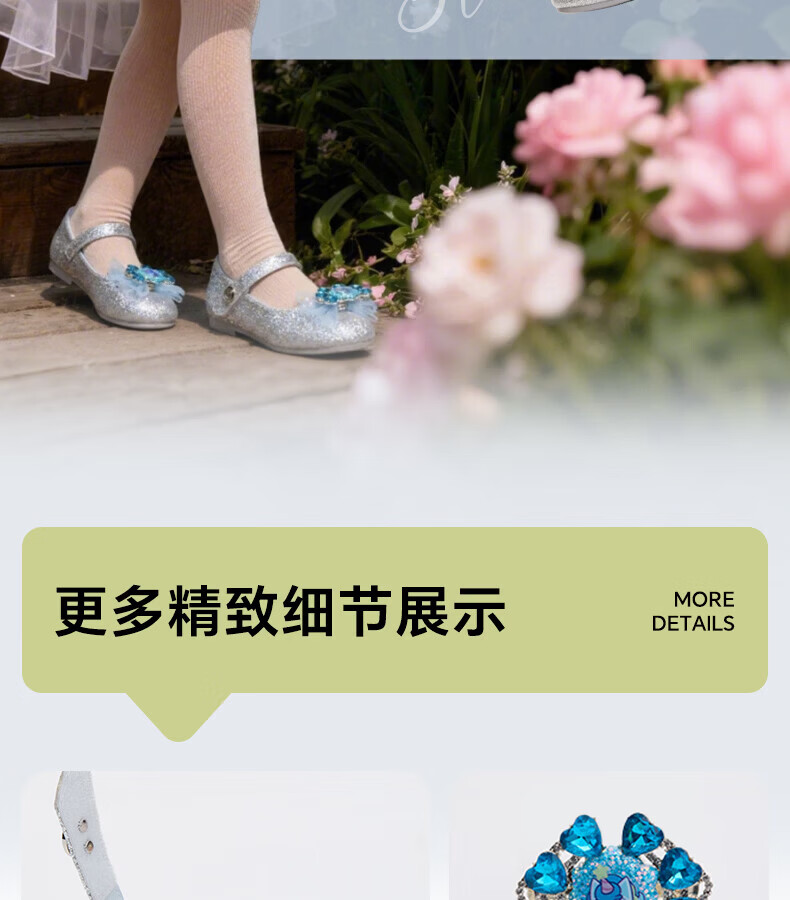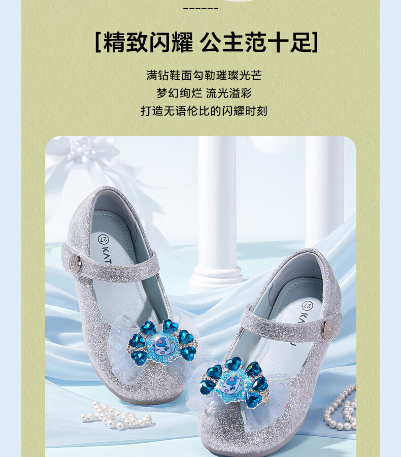 Carter Rabbit Children's Leather Shoes Girls 2026 Spring New Product Baby Single Shoes Crystal Shoes Girls Elsa Princess Shoes Crystal Blue 25 Inner Length Approximately 16.0cm Foot Length Approximately 14.8-15.4cm