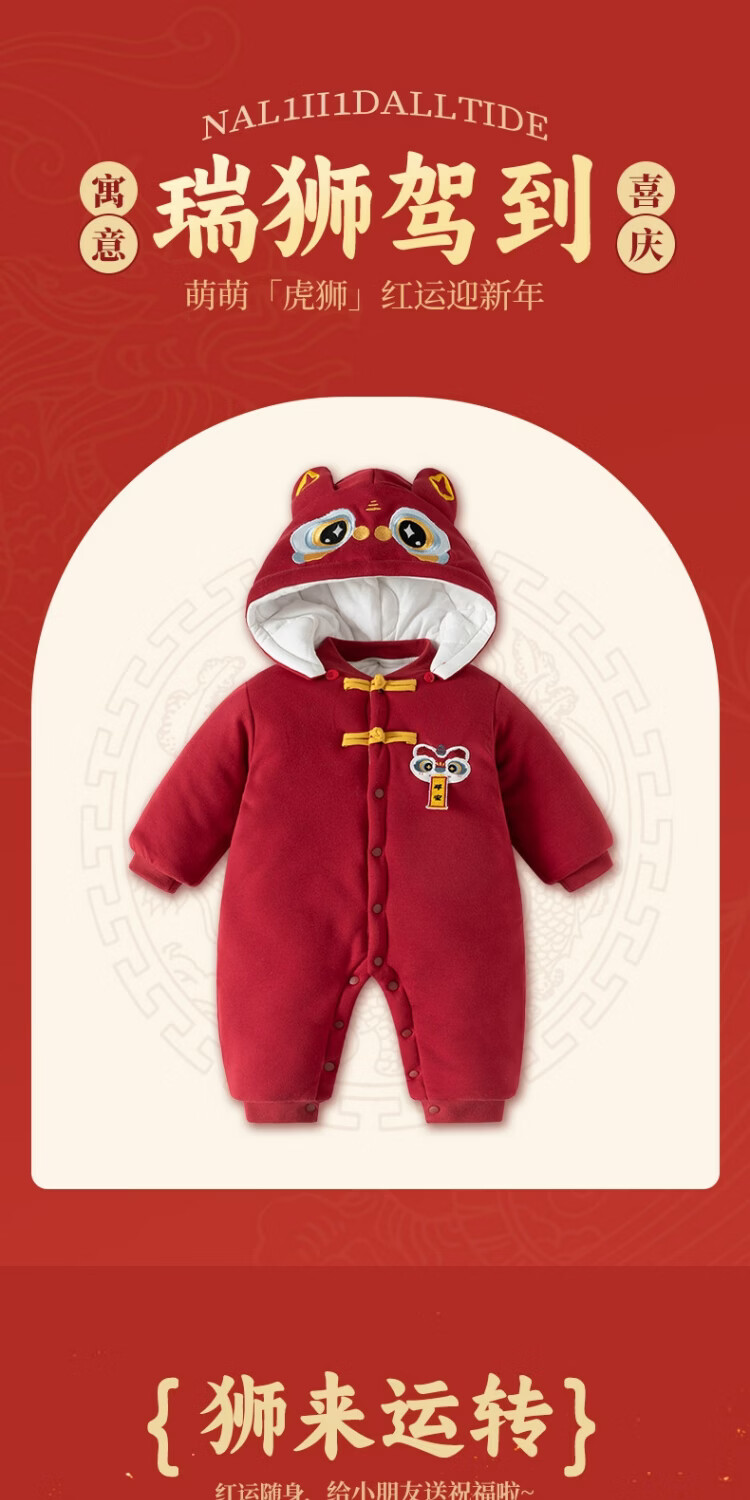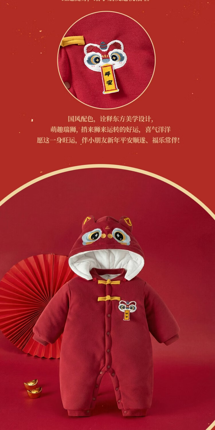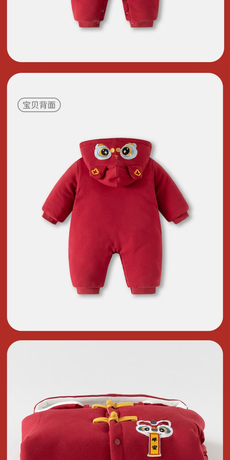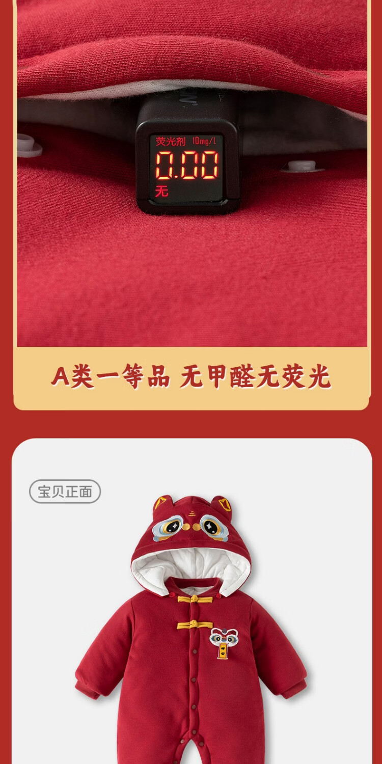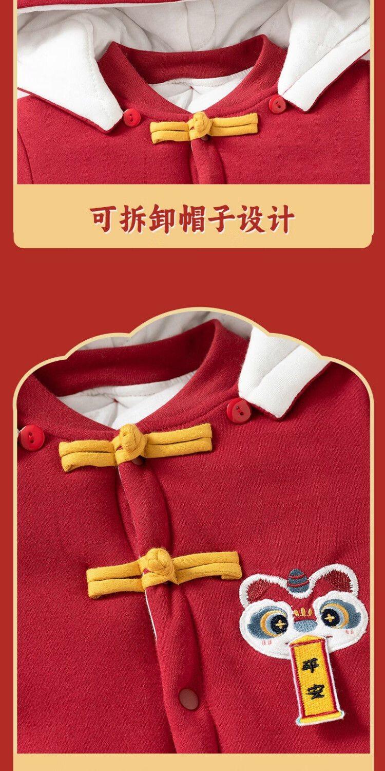 Jingqi newborn baby quilted one-piece winter red New Year's greeting suit for male and female baby, New Year's romper for baby, cute tiger 59cm 1-3 months recommended weight 3.5-6.9kg