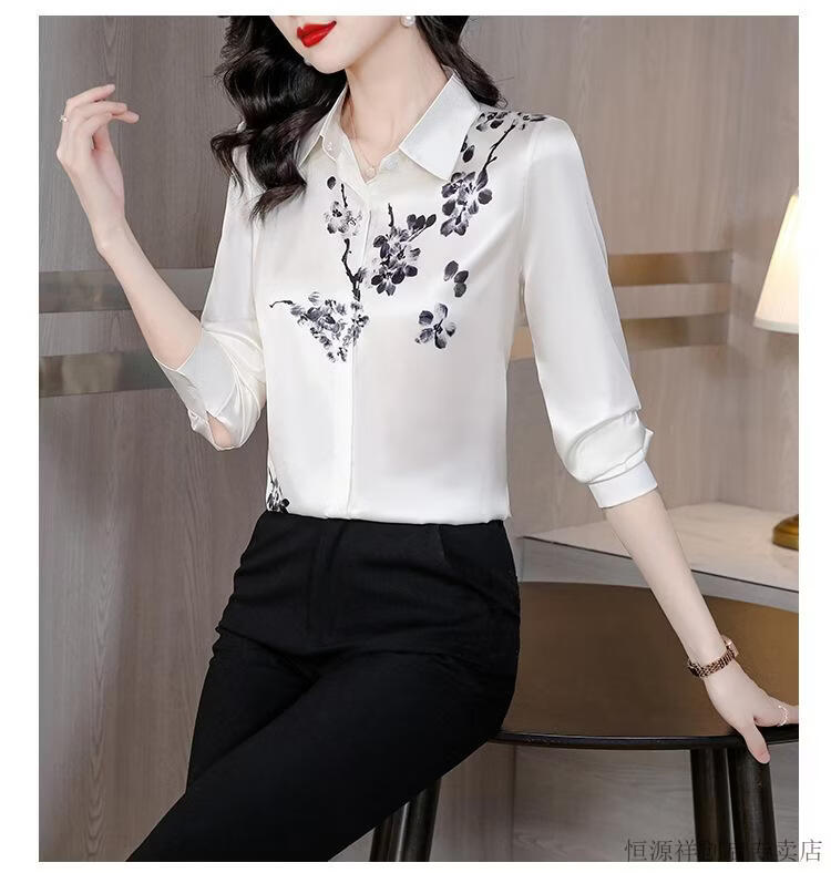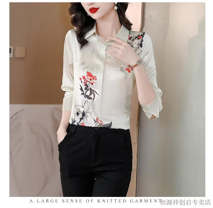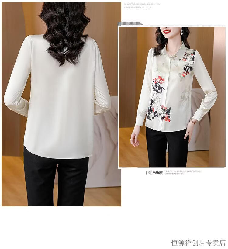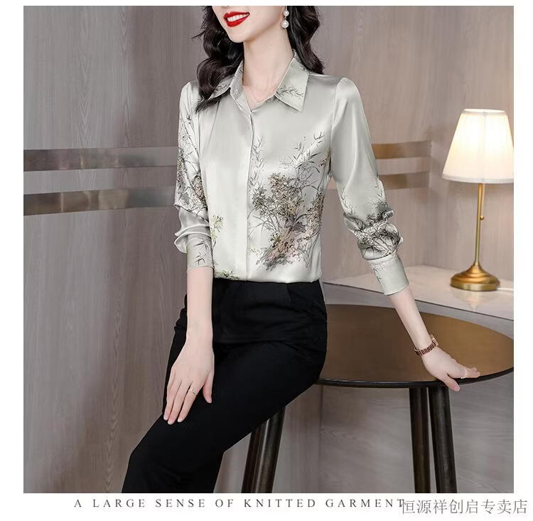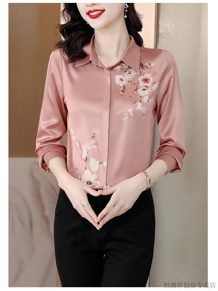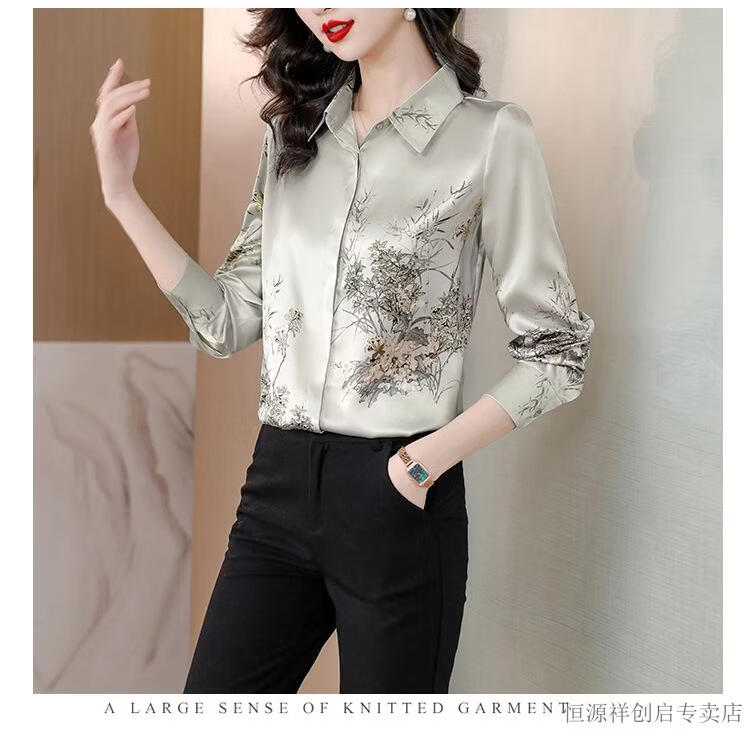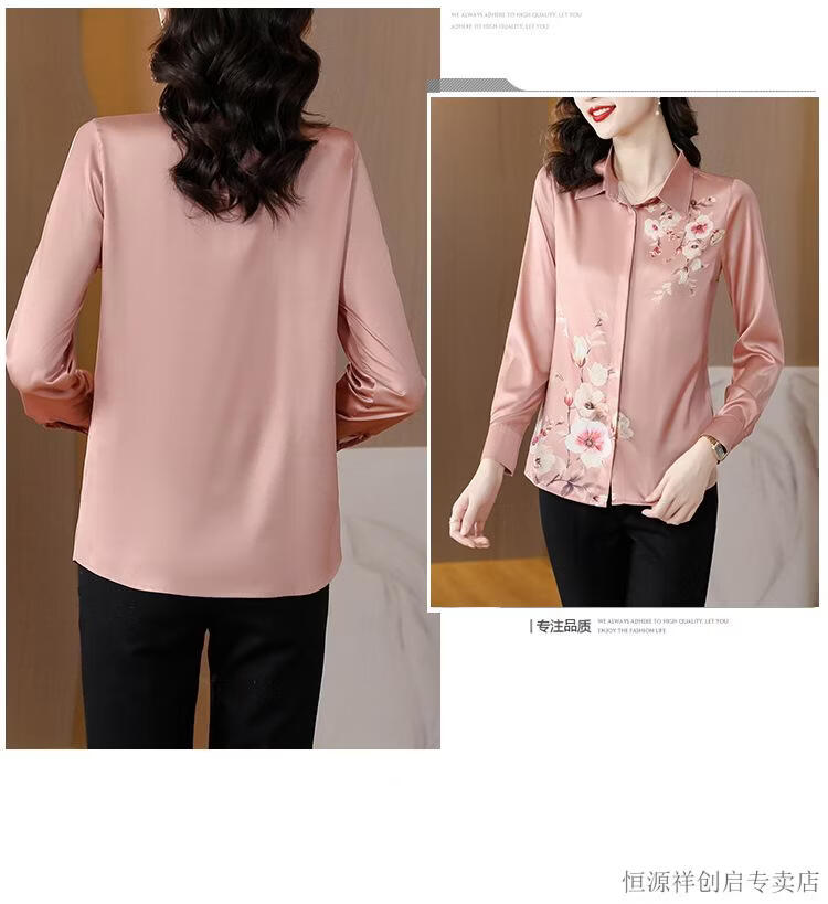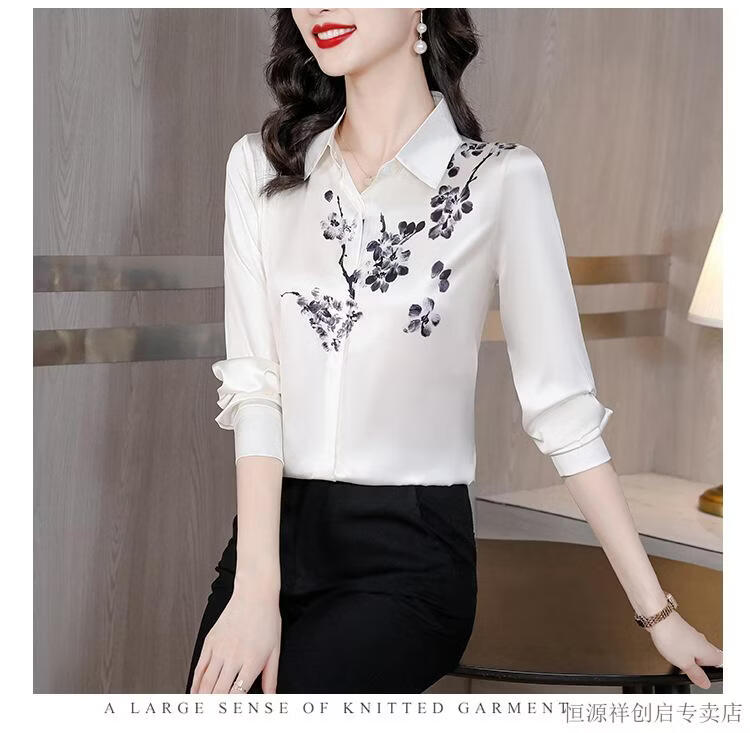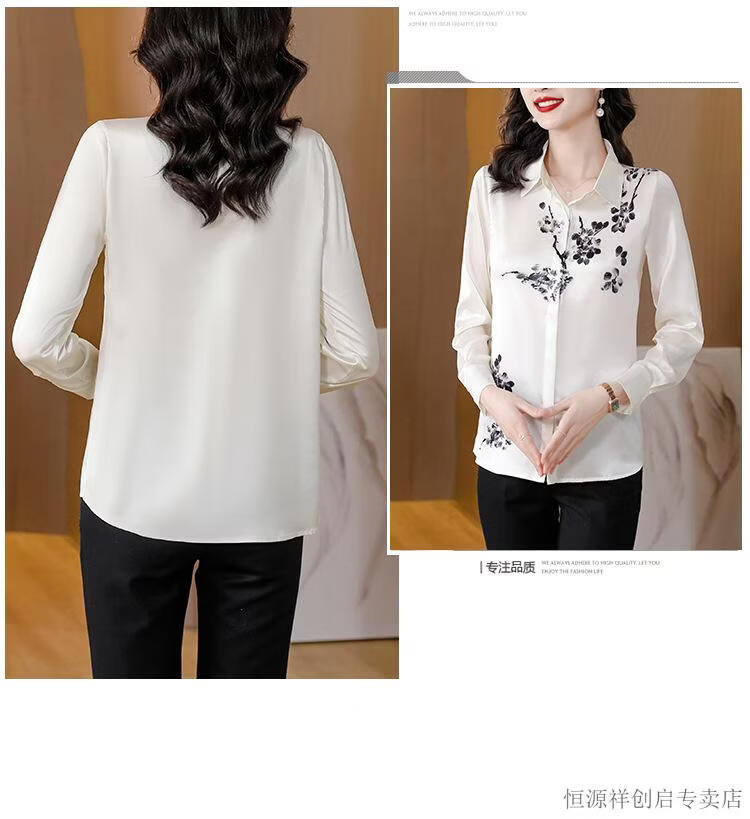 Hengyuanxiang Acetate Satin Long Sleeve Shirt Women's 2026 Spring and Autumn New T-shirt Top Mom Spring Shirt Temperament Small Shirt Gaojie Plum Blossom 3XL