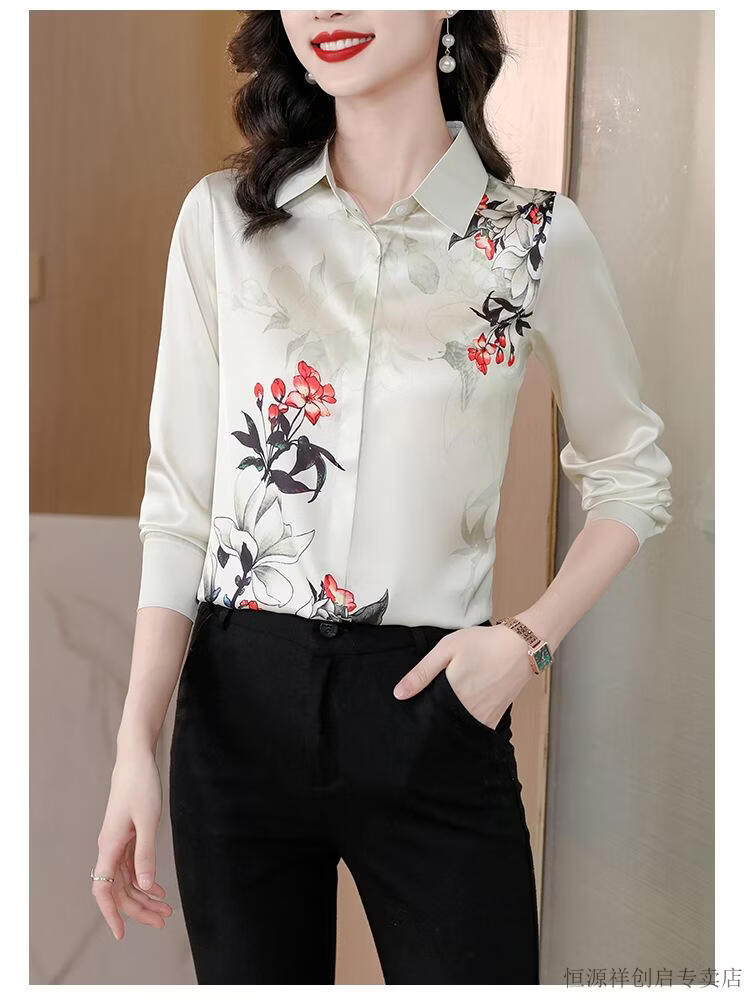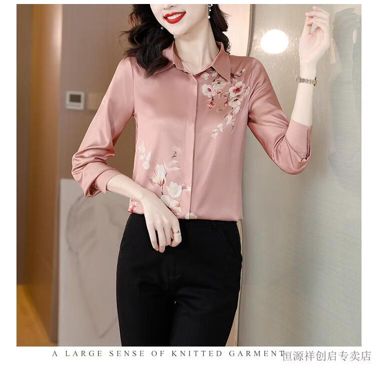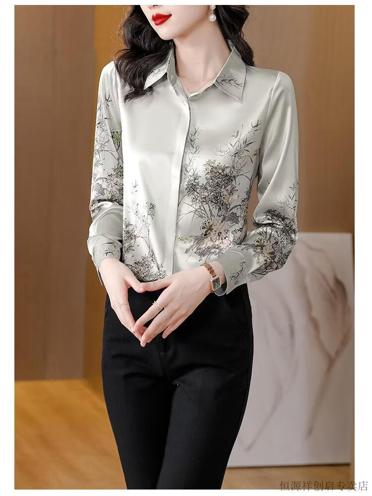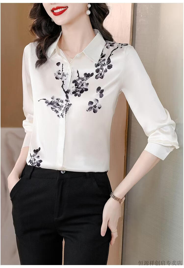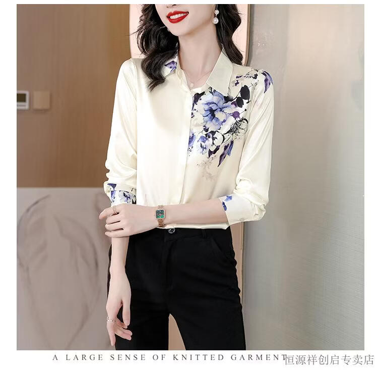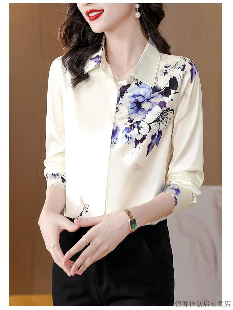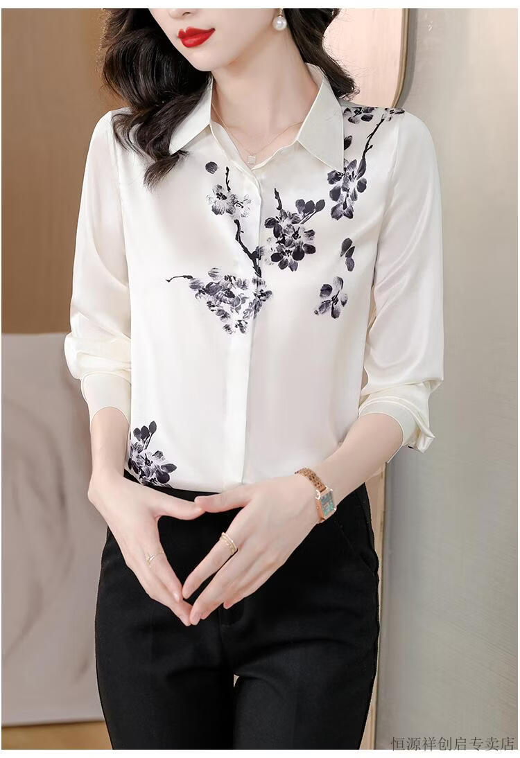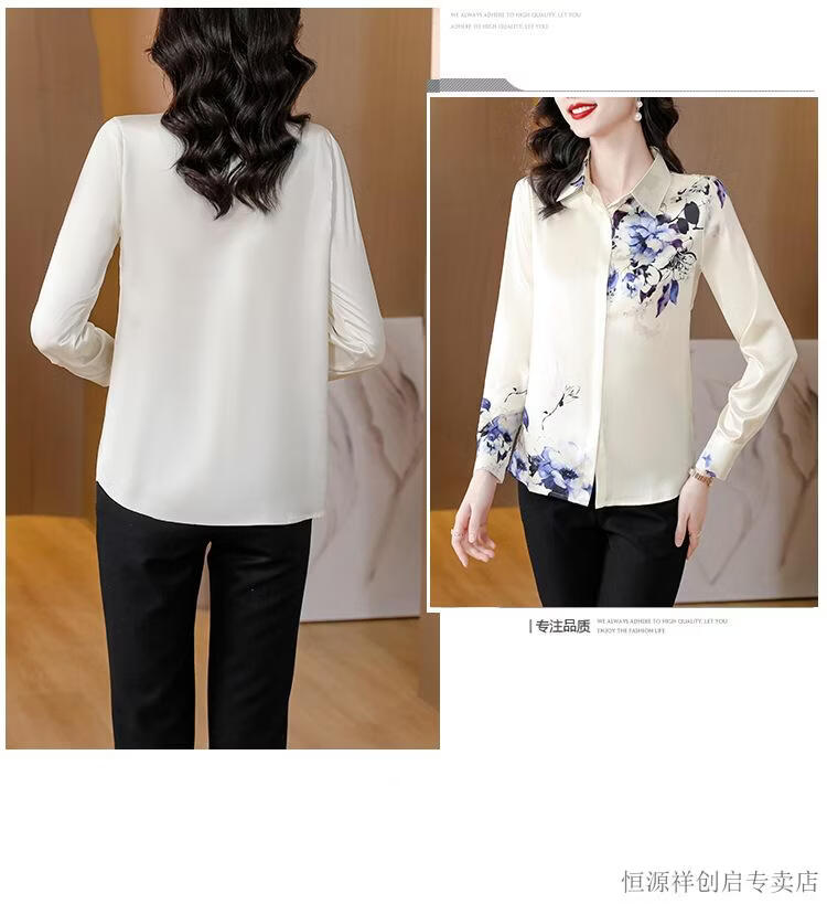 Hengyuanxiang Acetate Satin Long Sleeve Shirt Women's 2026 Spring and Autumn New T-shirt Top Mom Spring Shirt Temperament Small Shirt Gaojie Plum Blossom 3XL