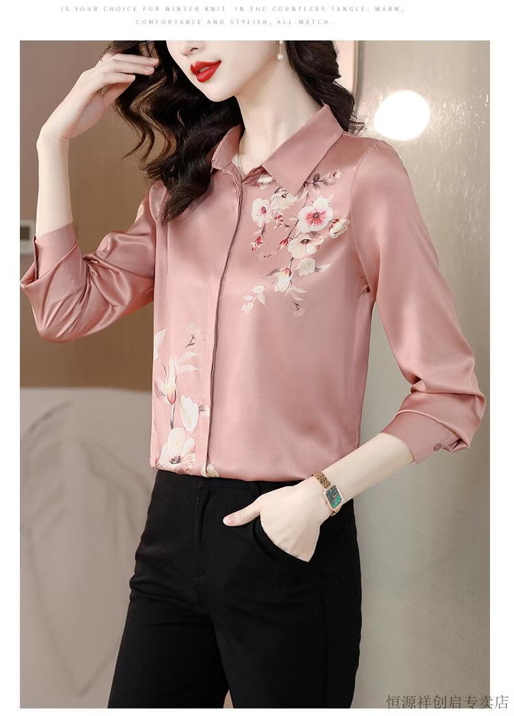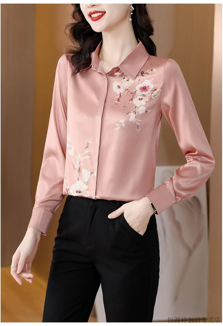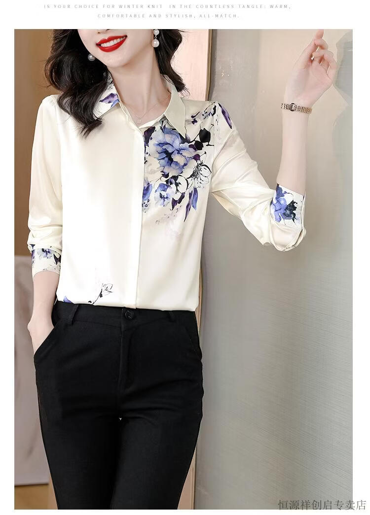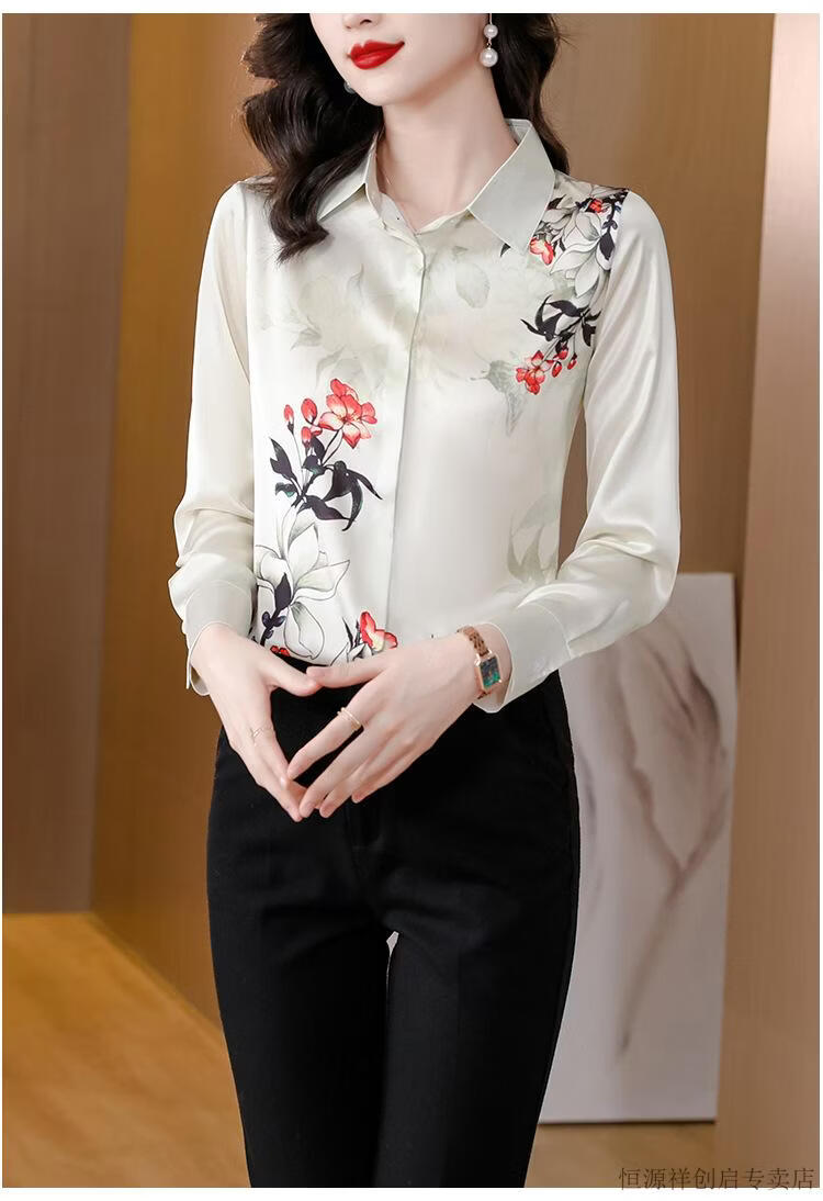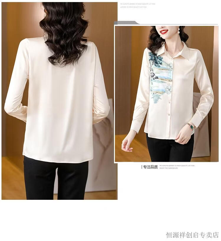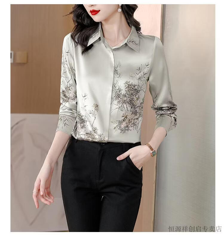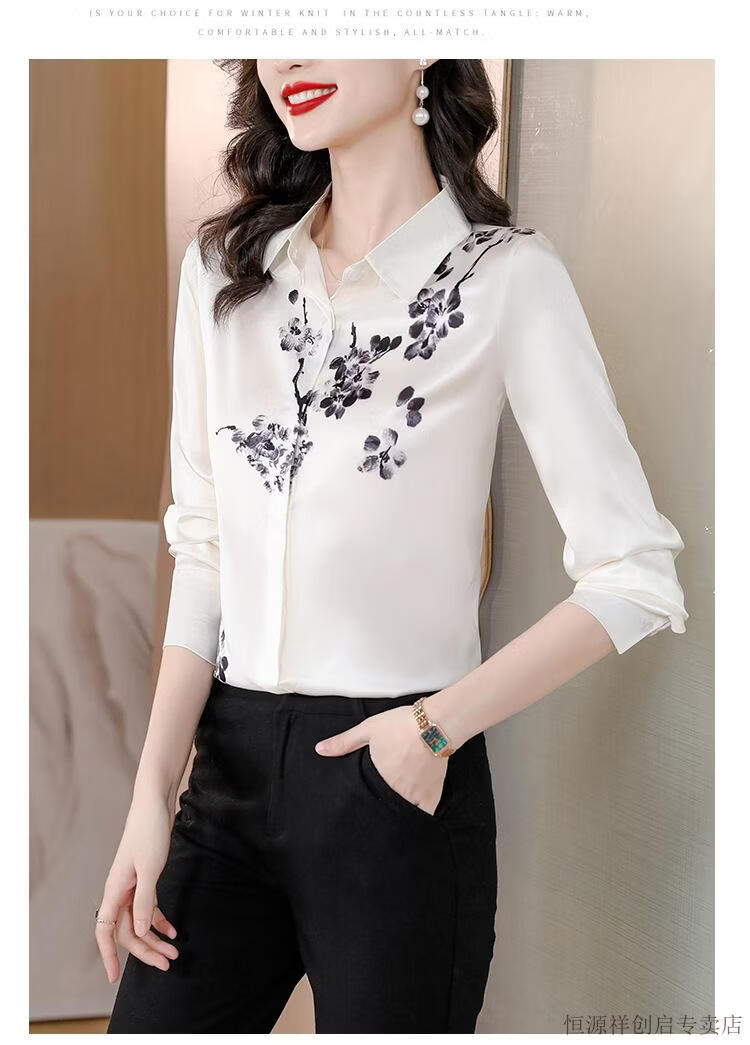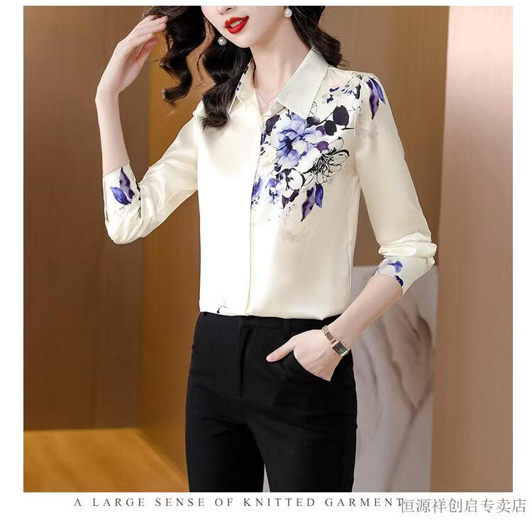 Hengyuanxiang Acetate Satin Long Sleeve Shirt Women's 2026 Spring and Autumn New T-shirt Top Mom Spring Shirt Temperament Small Shirt Gaojie Plum Blossom 3XL