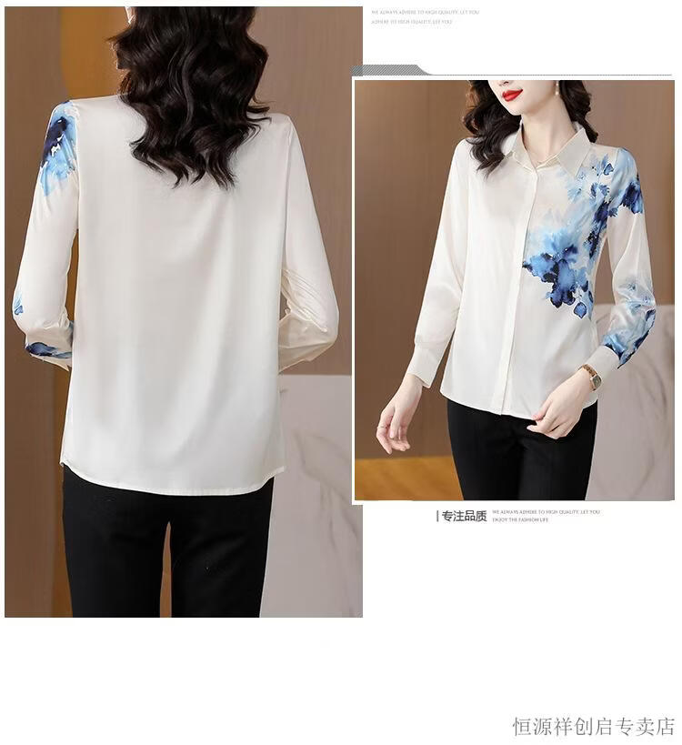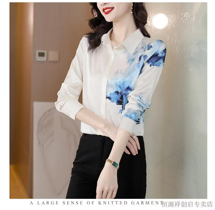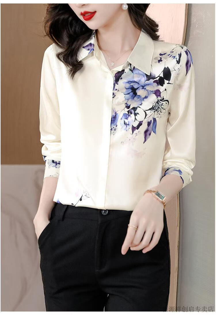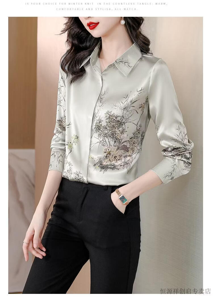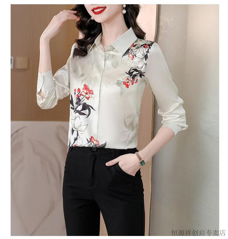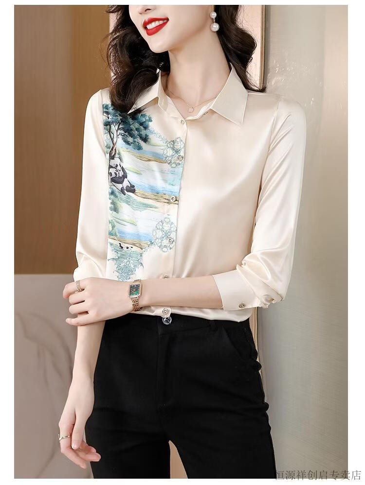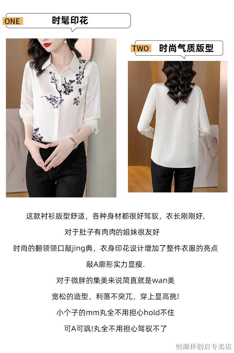Hengyuanxiang Acetate Satin Long Sleeve Shirt Women's 2026 Spring and Autumn New T-shirt Top Mom Spring Shirt Temperament Small Shirt Gaojie Plum Blossom 3XL