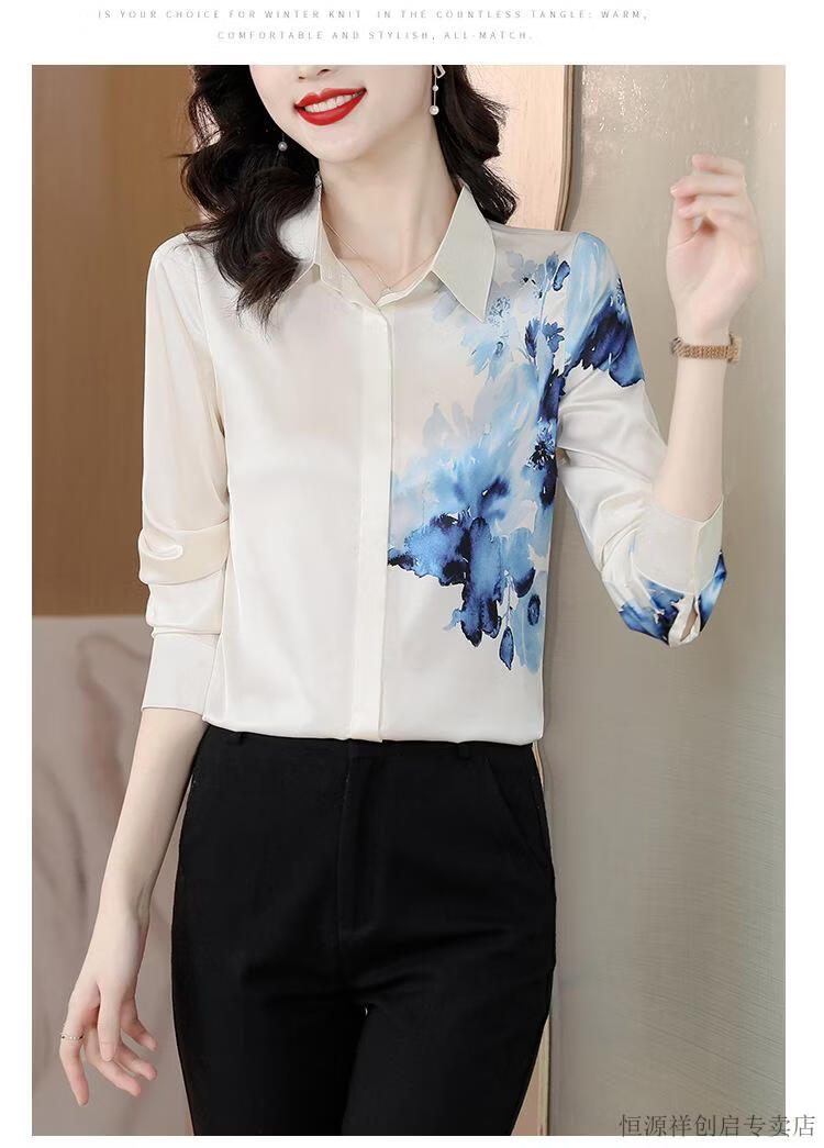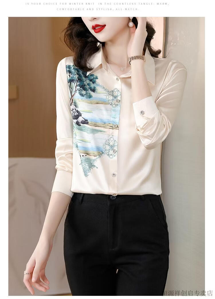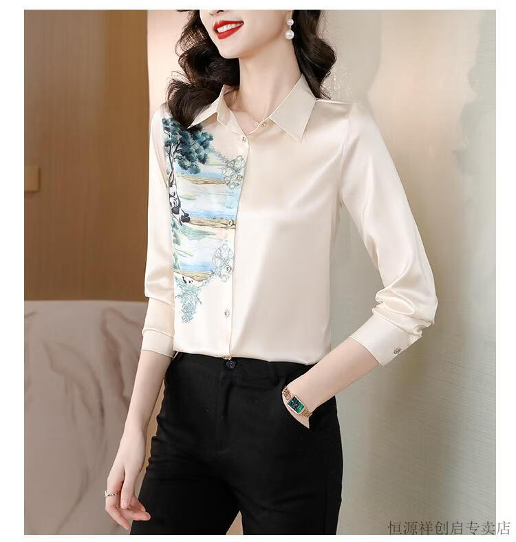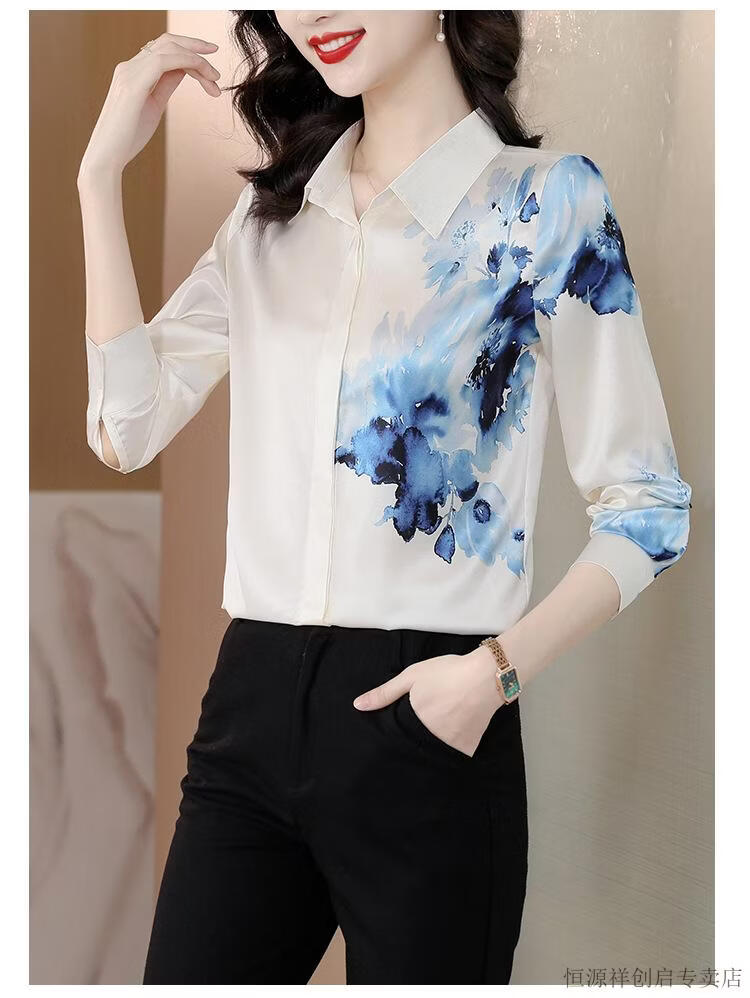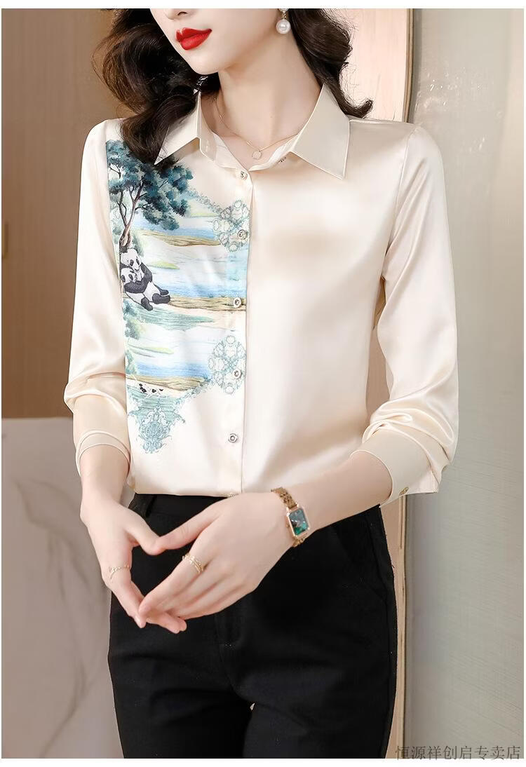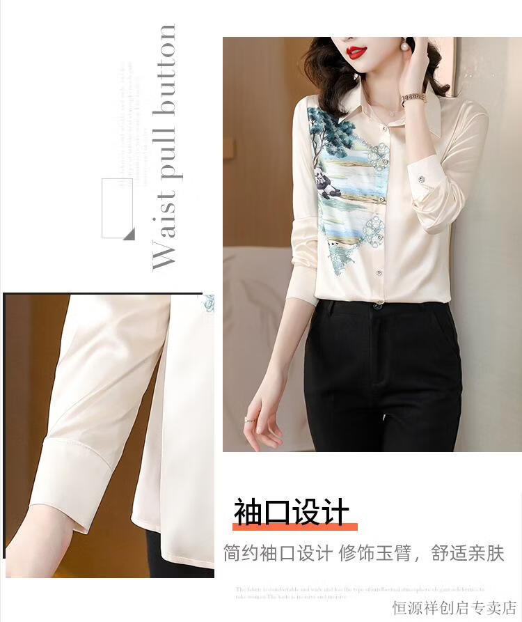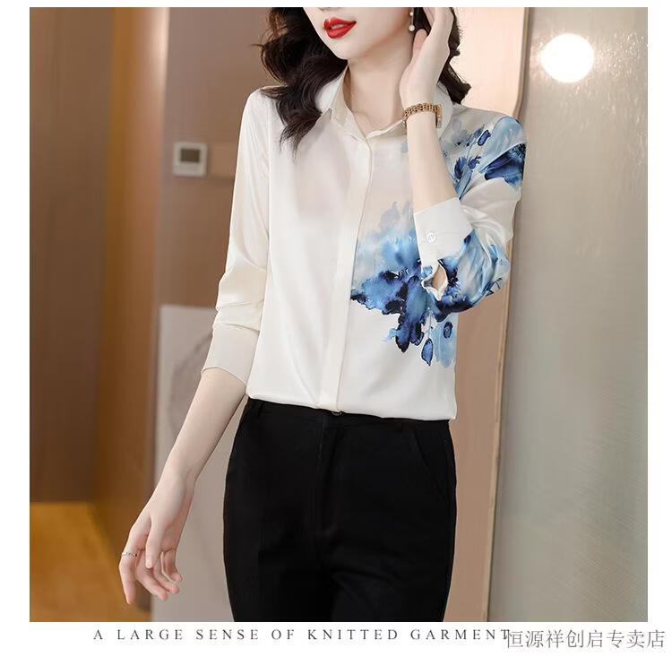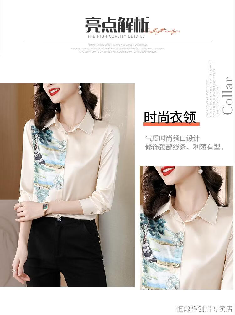 Hengyuanxiang Acetate Satin Long Sleeve Shirt Women's 2026 Spring and Autumn New T-shirt Top Mom Spring Shirt Temperament Small Shirt Gaojie Plum Blossom 3XL