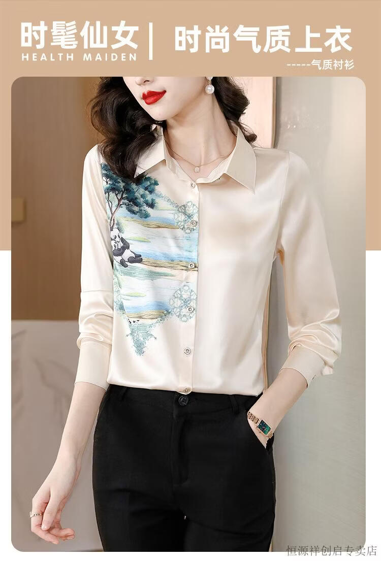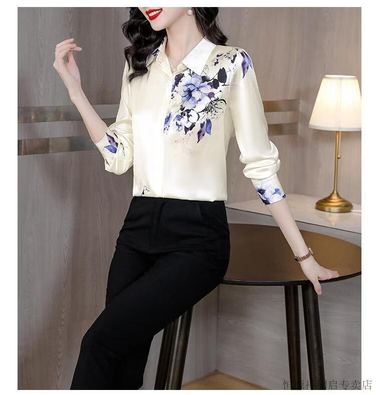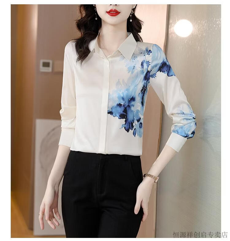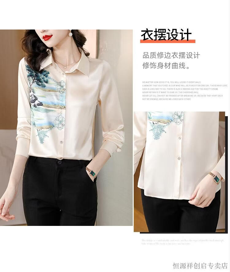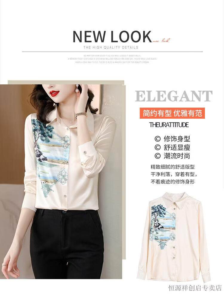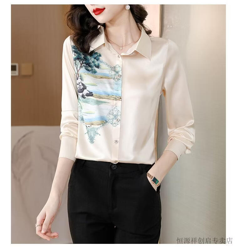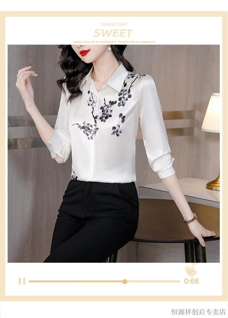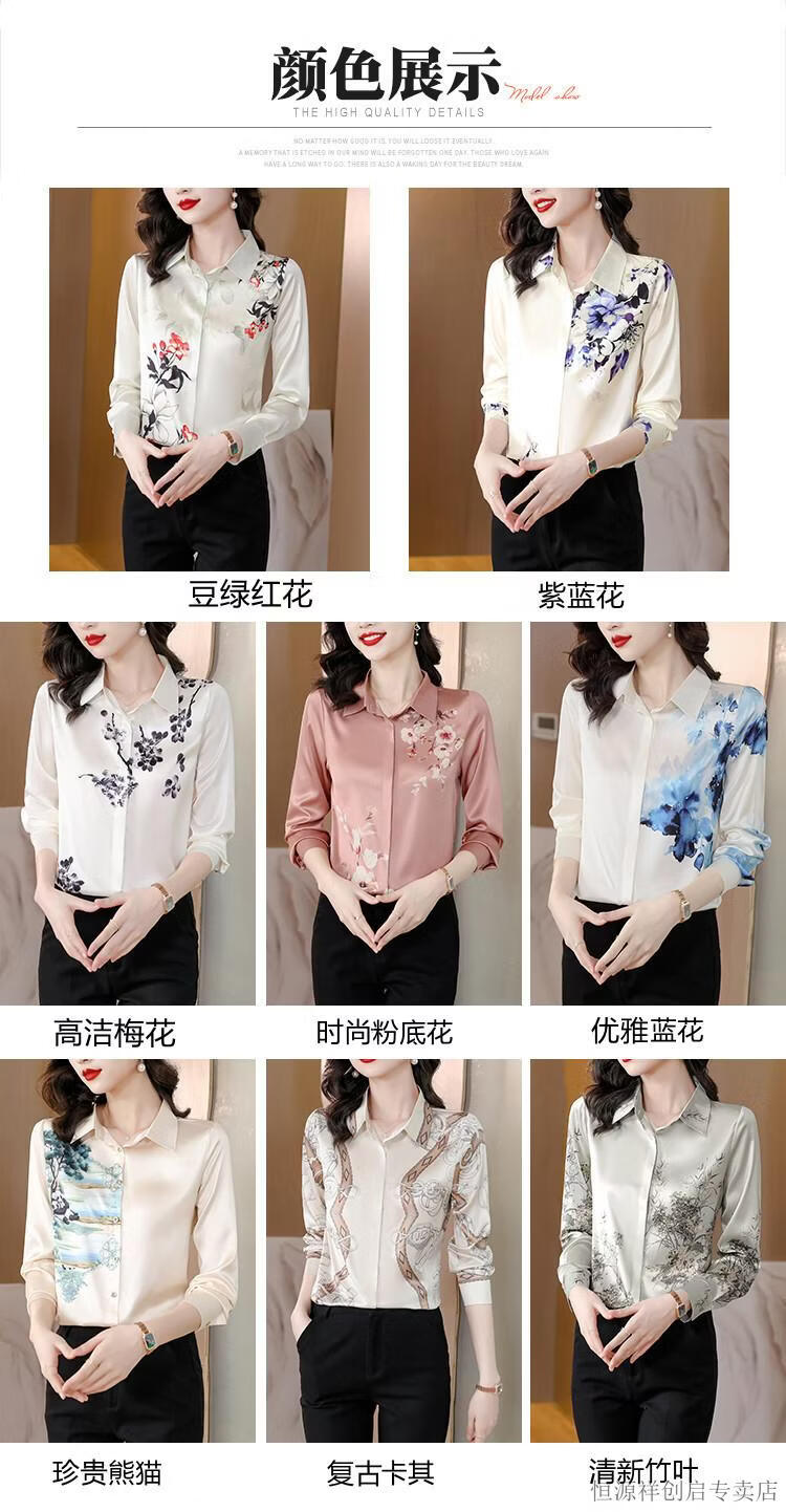 Hengyuanxiang Acetate Satin Long Sleeve Shirt Women's 2026 Spring and Autumn New T-shirt Top Mom Spring Shirt Temperament Small Shirt Gaojie Plum Blossom 3XL