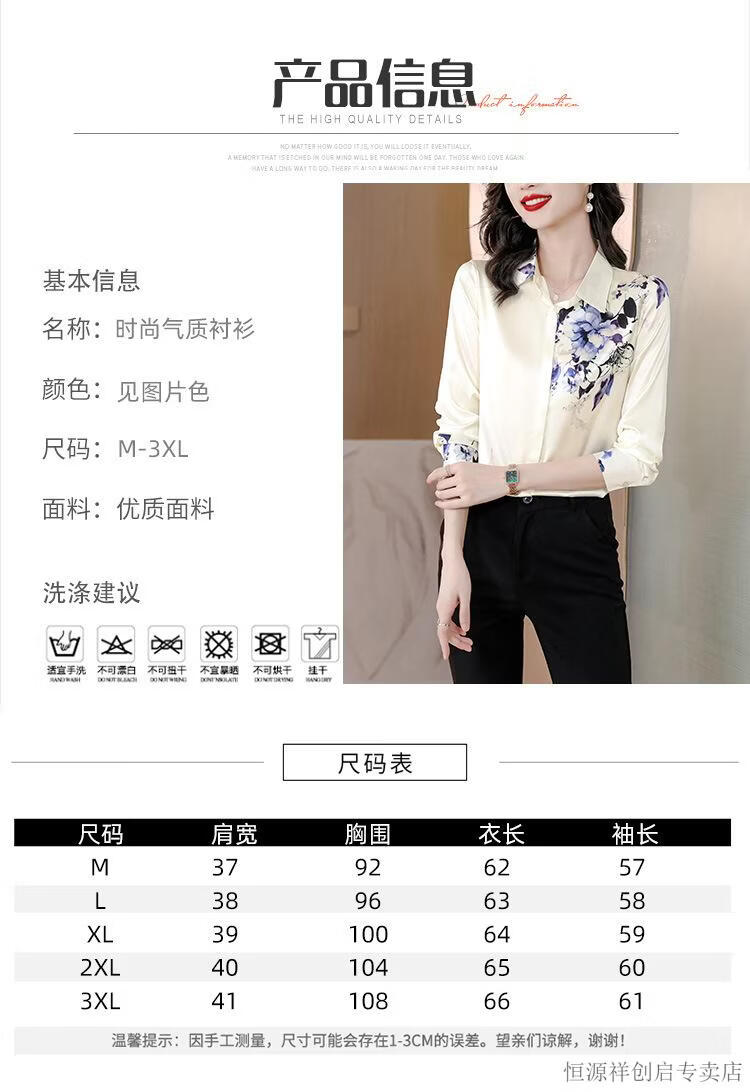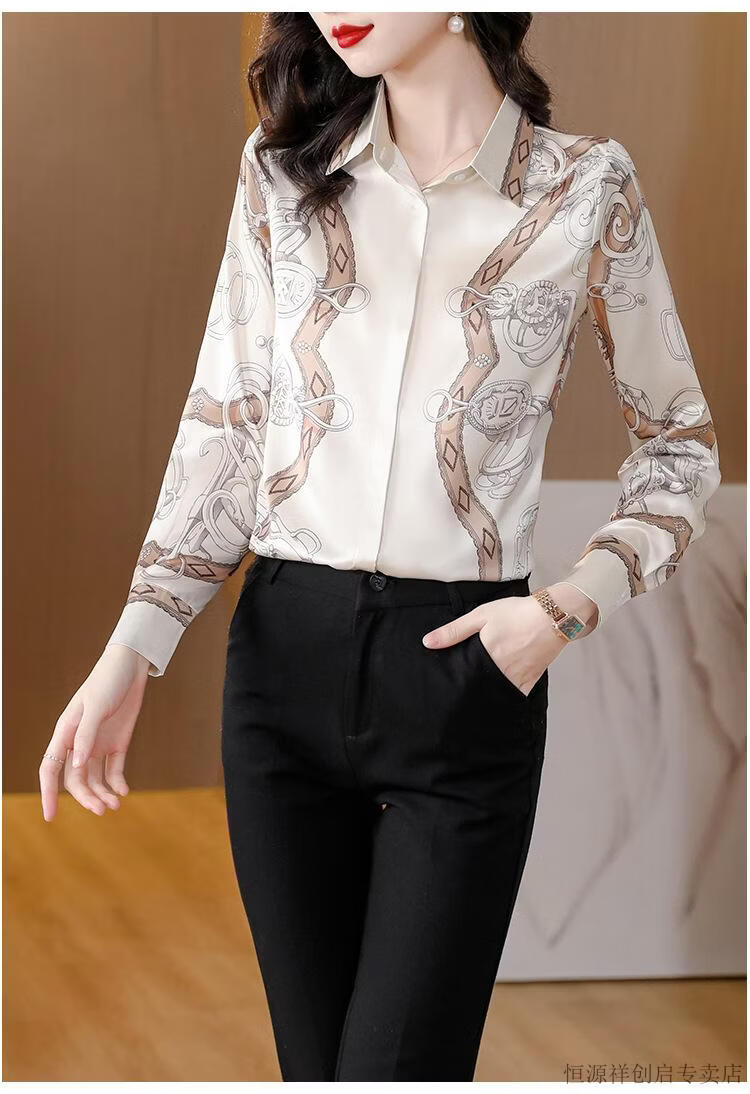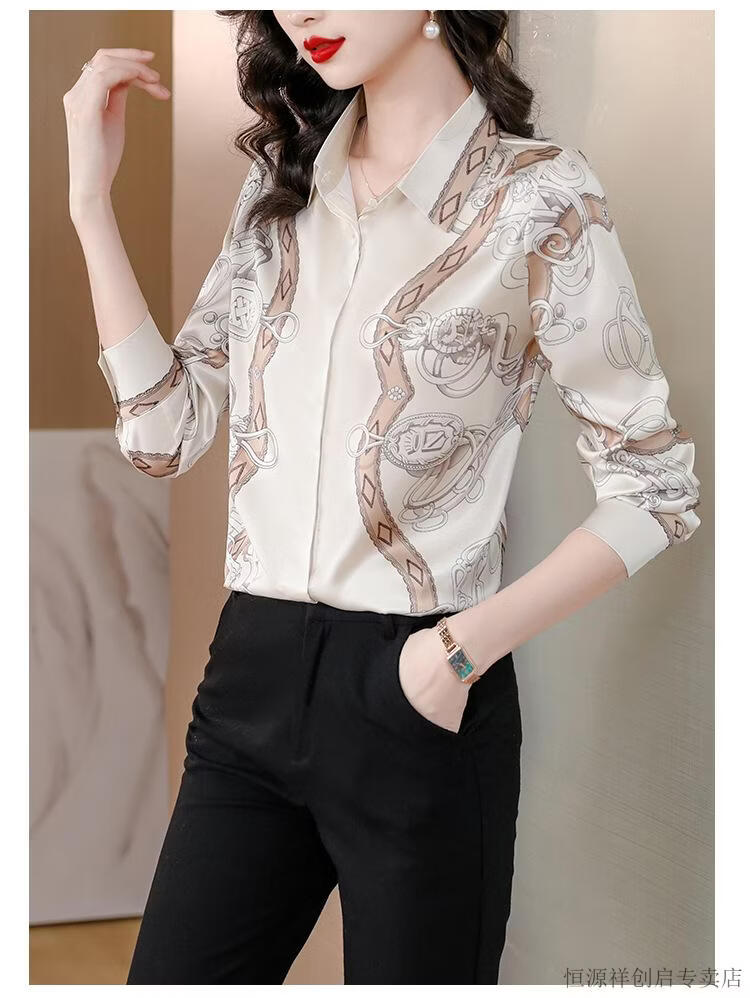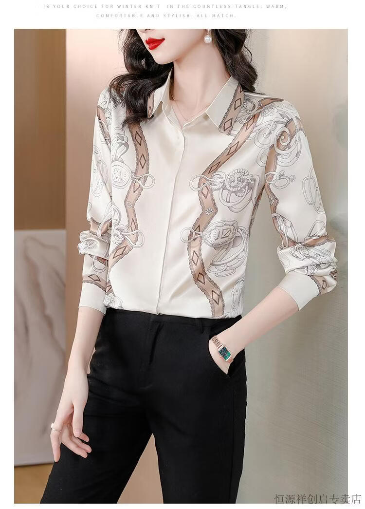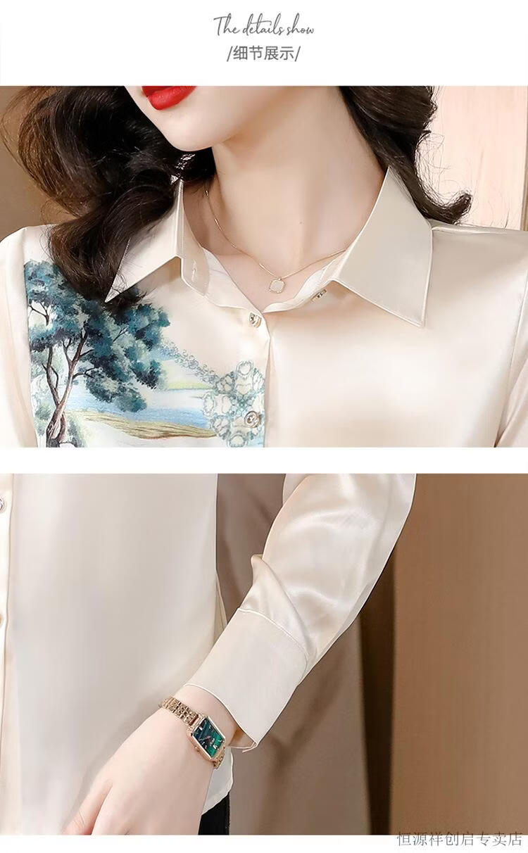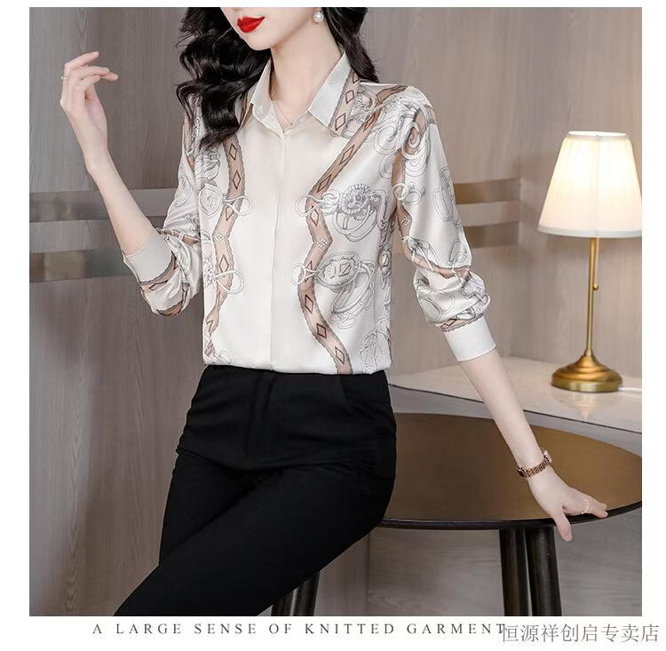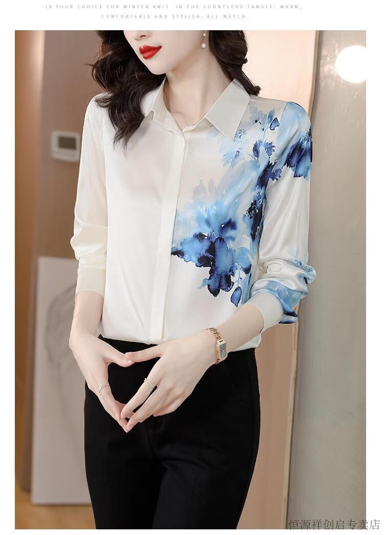 Hengyuanxiang Acetate Satin Long Sleeve Shirt Women's 2026 Spring and Autumn New T-shirt Top Mom Spring Shirt Temperament Small Shirt Gaojie Plum Blossom 3XL