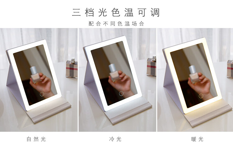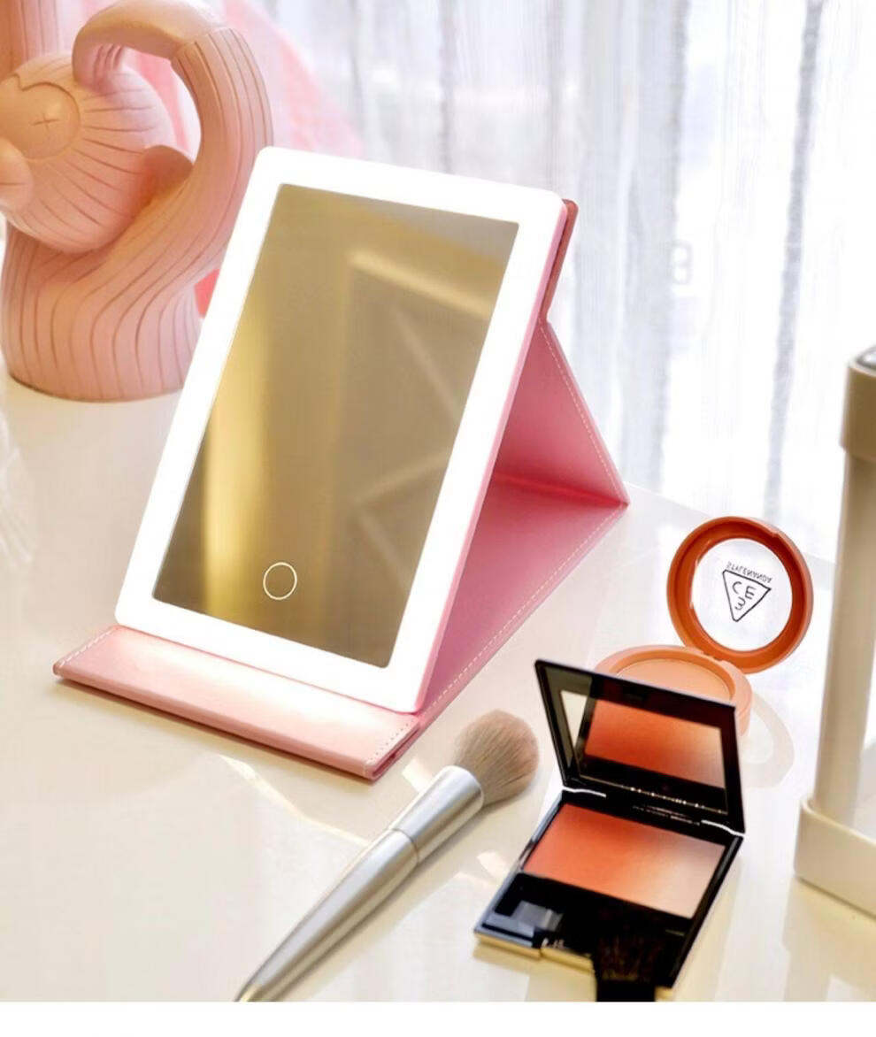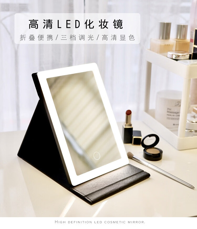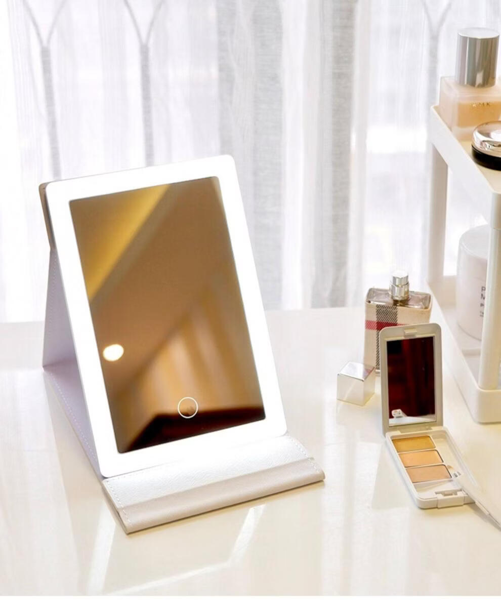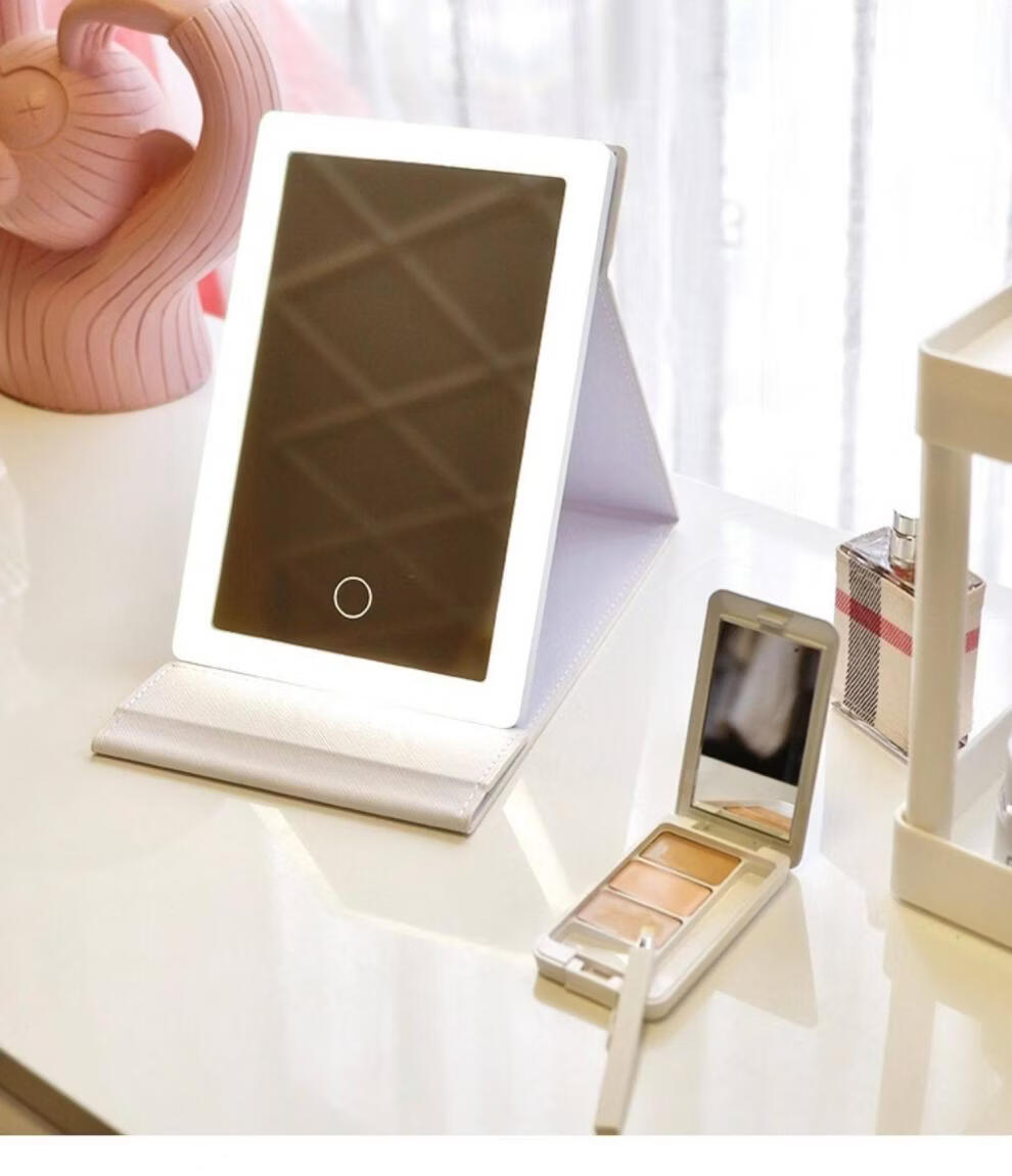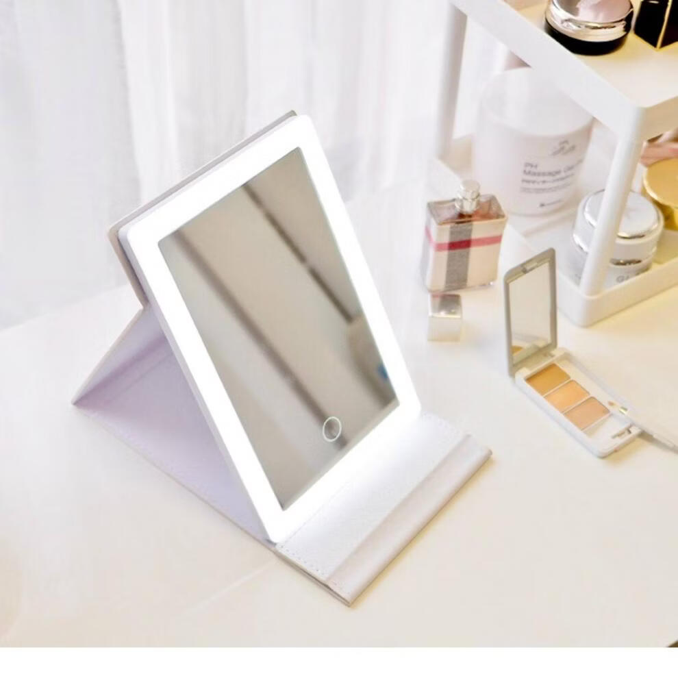 High Definition Led Cosmetic Mirror Desktop Folding Mirror and Home Dormitory Travel Portable Filled Light Desktop Cosmetic Mirror White Cosmetic Mirror