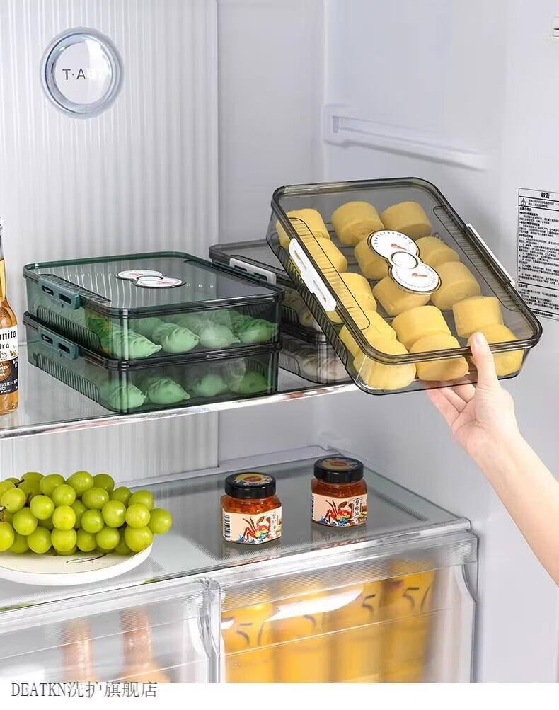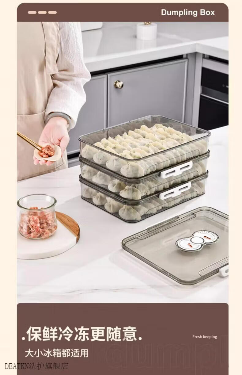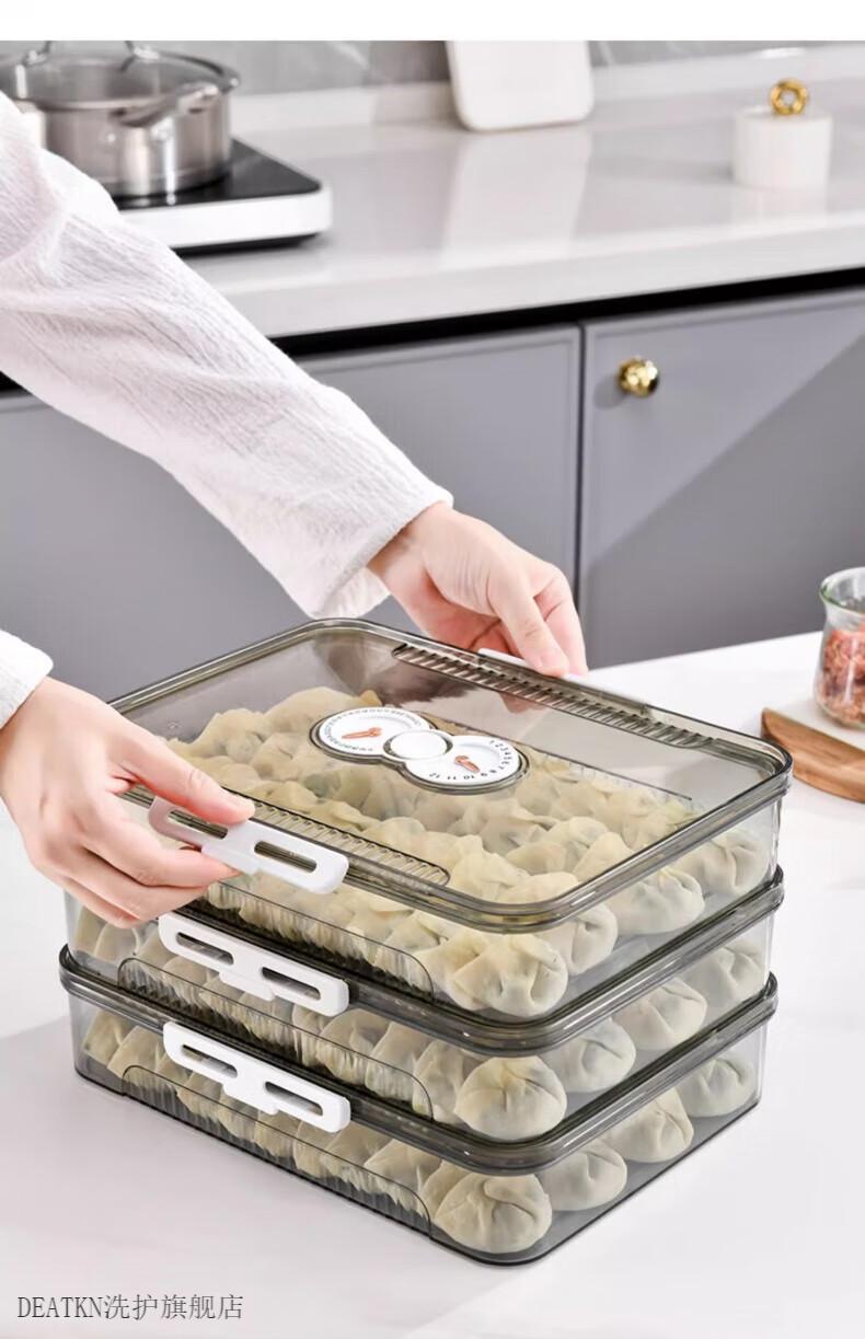 Xulin German dumpling freezing box, one box and one lid, food-grade refrigerator quick-frozen storage box, food-grade special dumpling box, transparent, two lids and two layers, about 80-100 pieces, 2 layers, 2 layers, sticker-free L-shaped - (10 meters + 10 corners)