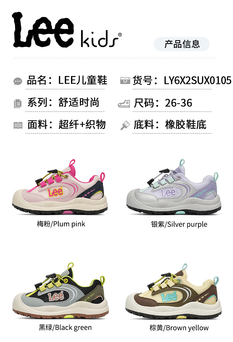 LEE KIDS children's sports shoes men's and women's running shoes 26 spring new running shoes non-slip wear-resistant running shoes casual shoes silver purple 26 inner length 17.2cm suitable for feet 16.2-16.7cm