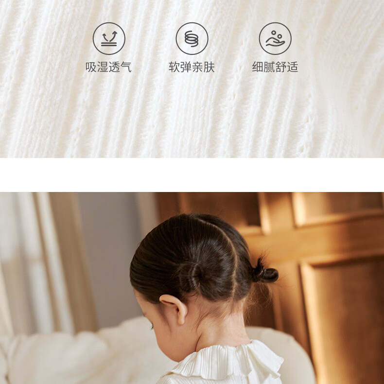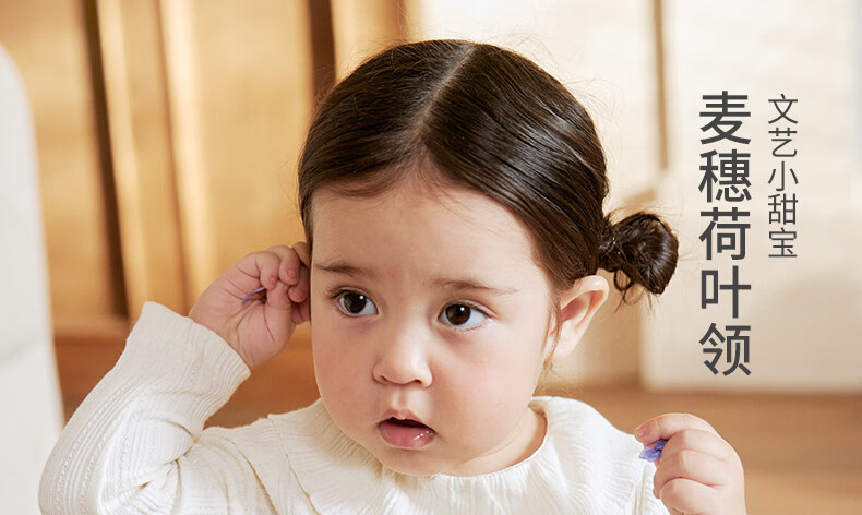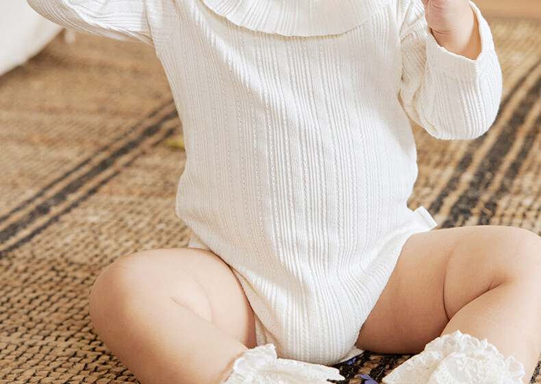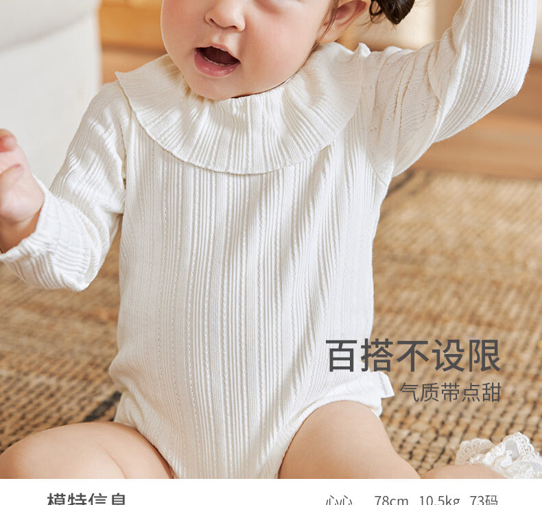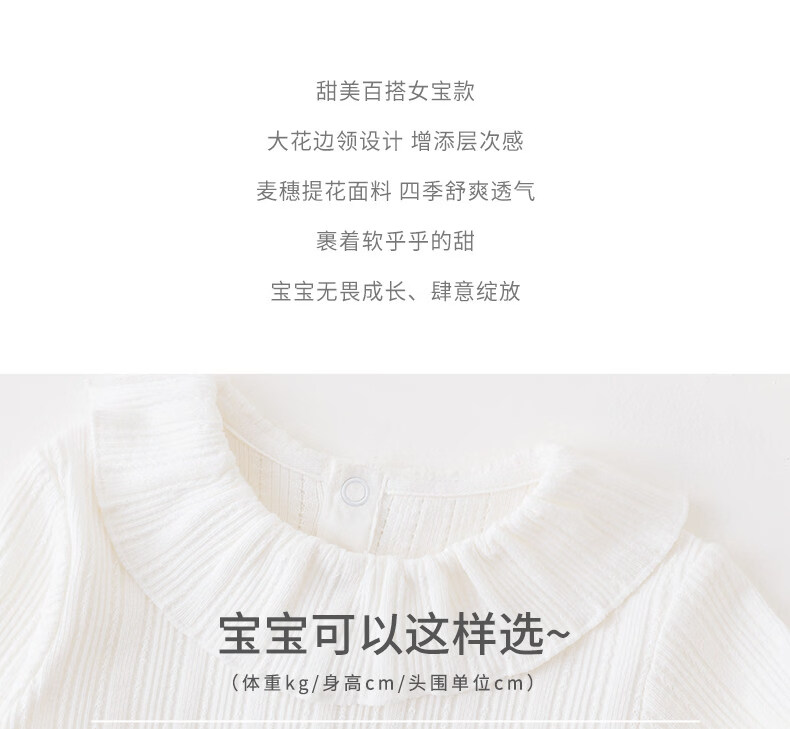 Koala nose, wheat ear jacquard lotus leaf collar, literary and sweet style, soft and versatile clothing for baby girls, milk white 66cm