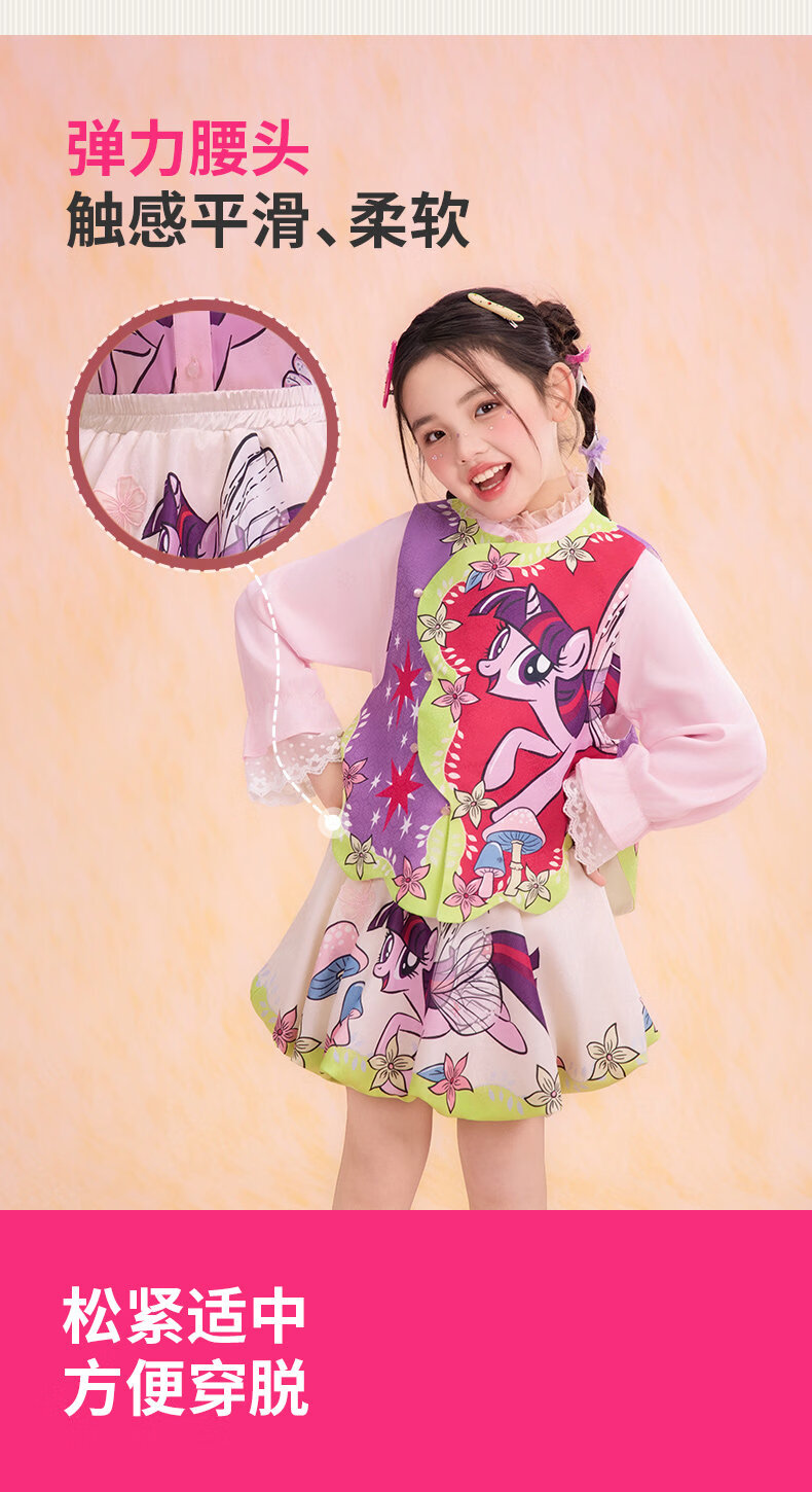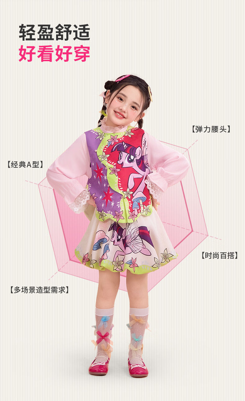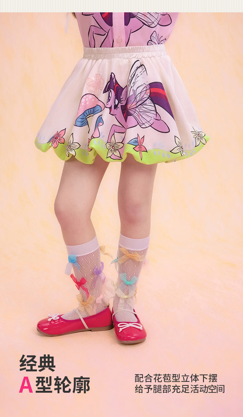 New year's clothing My Little Pony co-branded children's clothing skirt spring new girls flower bud skirt cartoon princess A-line skirt Yunshui blue 120