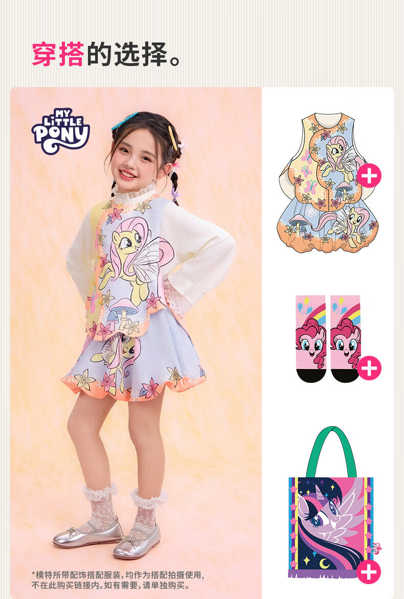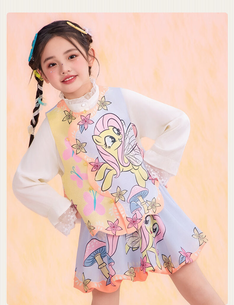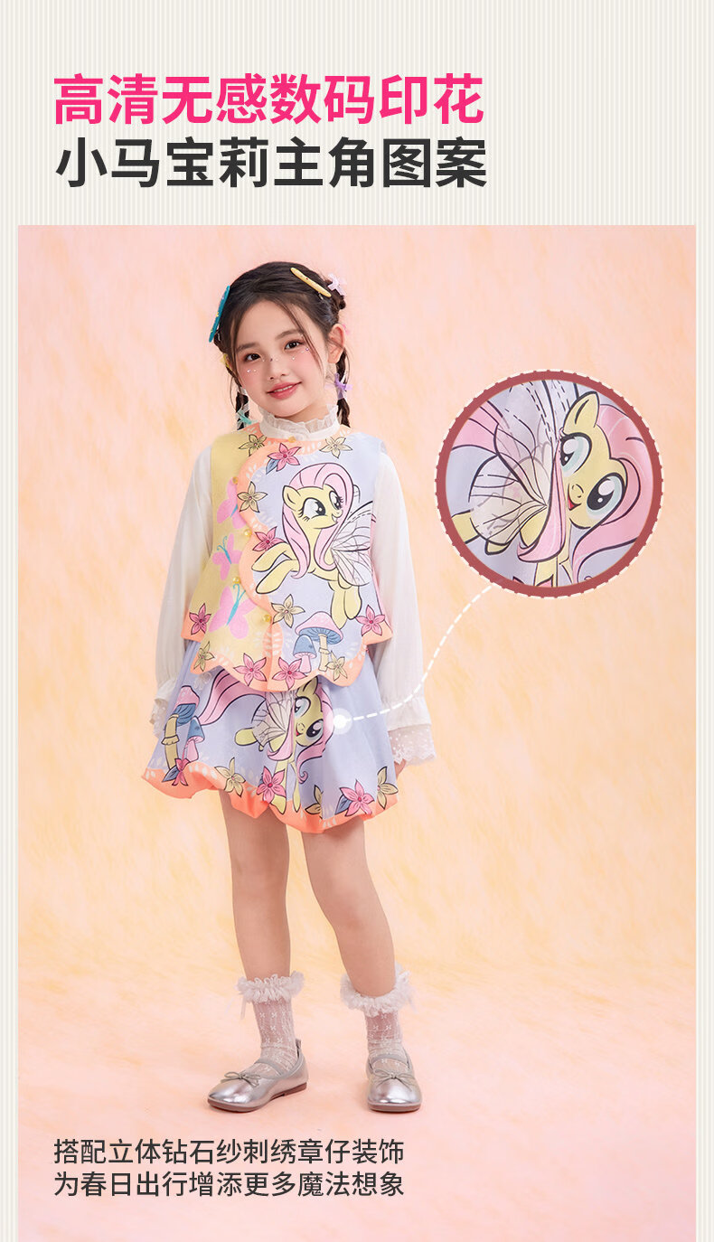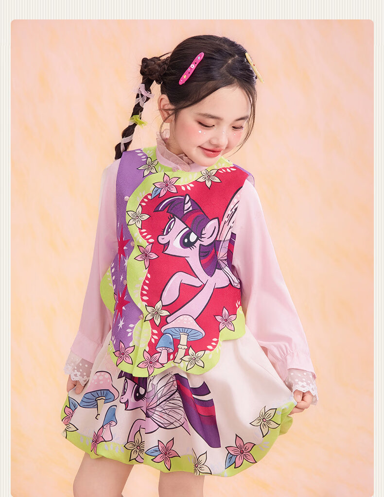 New year's clothing My Little Pony co-branded children's clothing skirt spring new girls flower bud skirt cartoon princess A-line skirt Yunshui blue 120