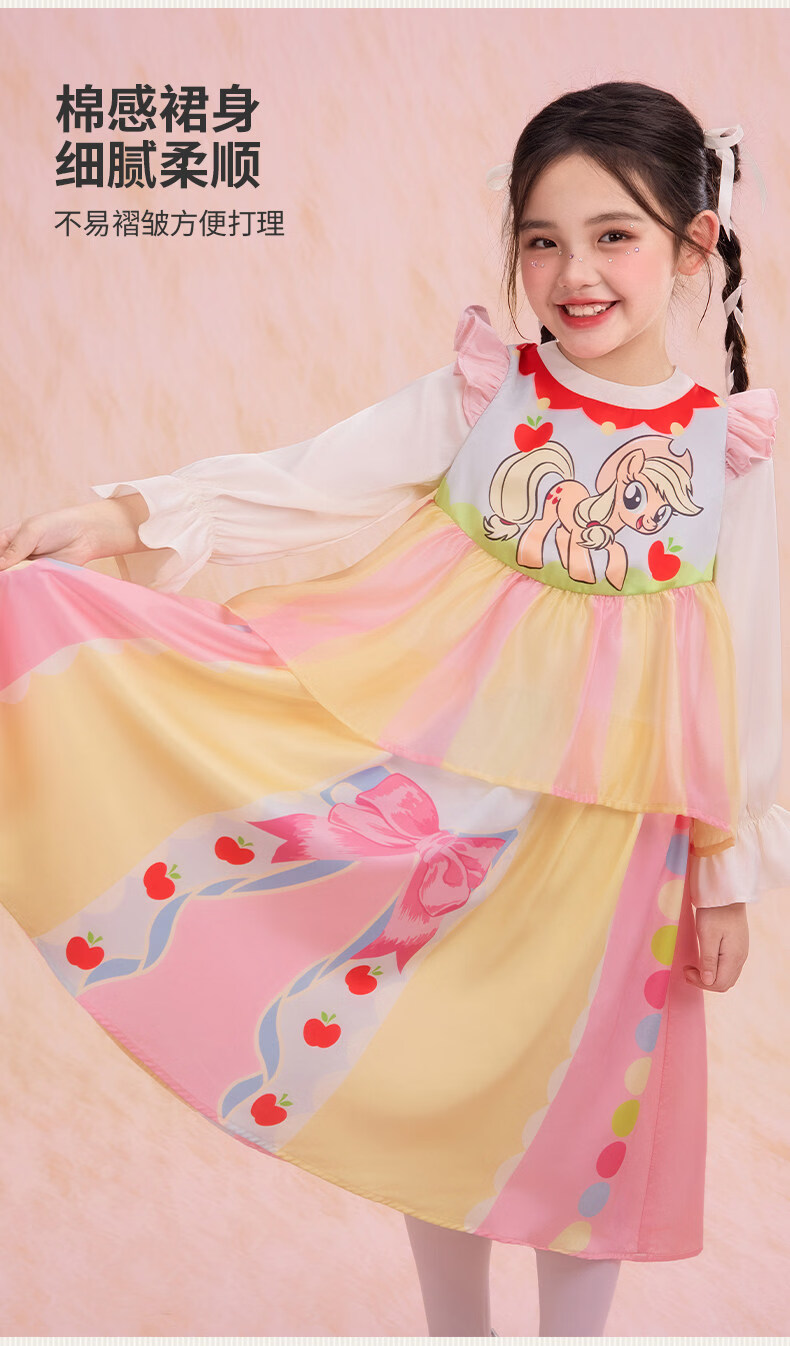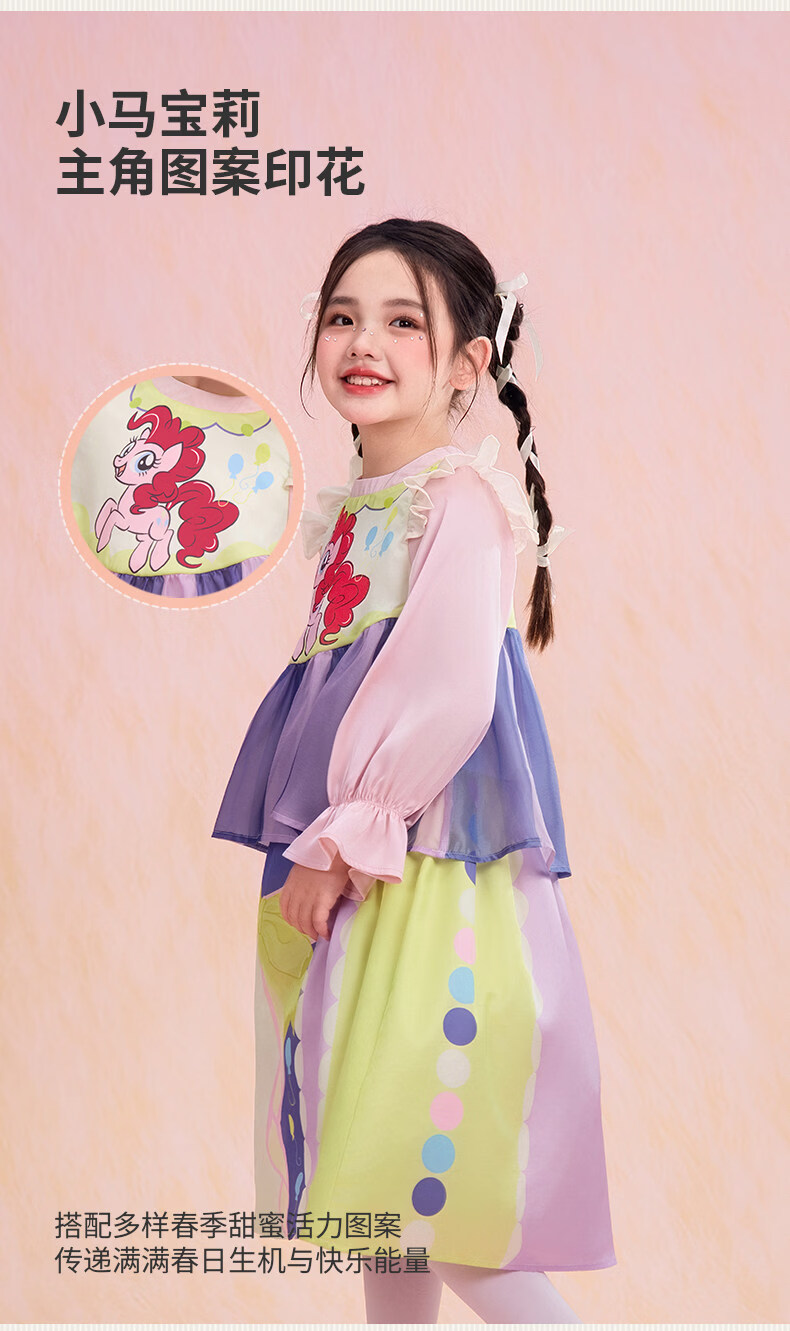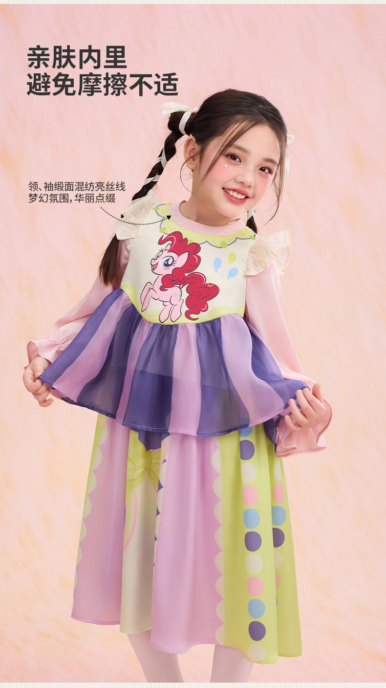 New year's clothing My Little Pony co-branded children's long-sleeved dress spring new style girls cartoon princess girl long skirt Hatsumo pink 100