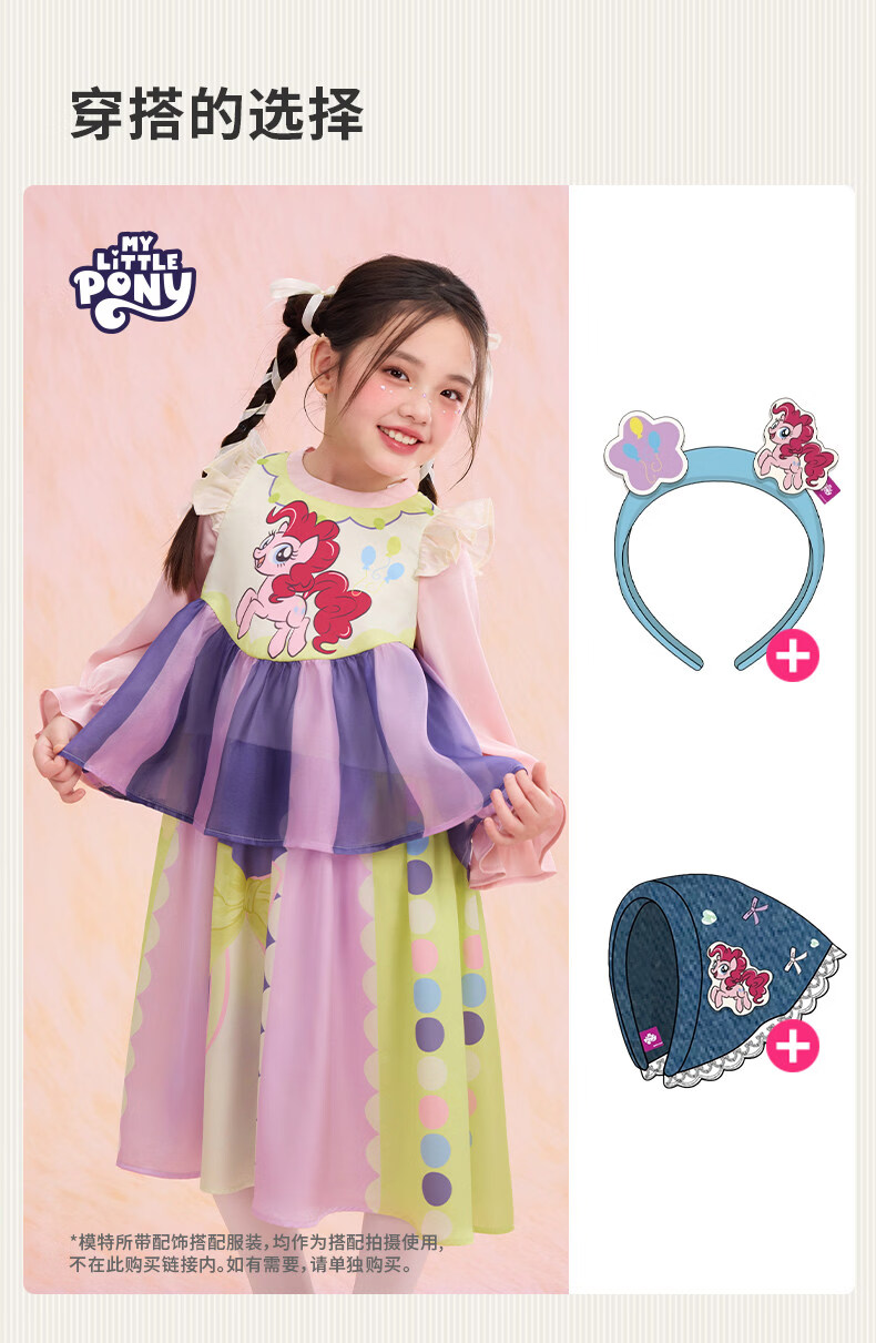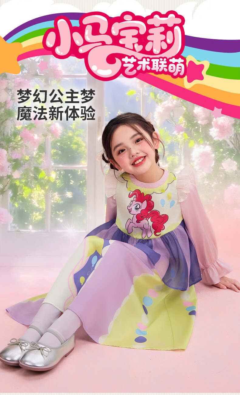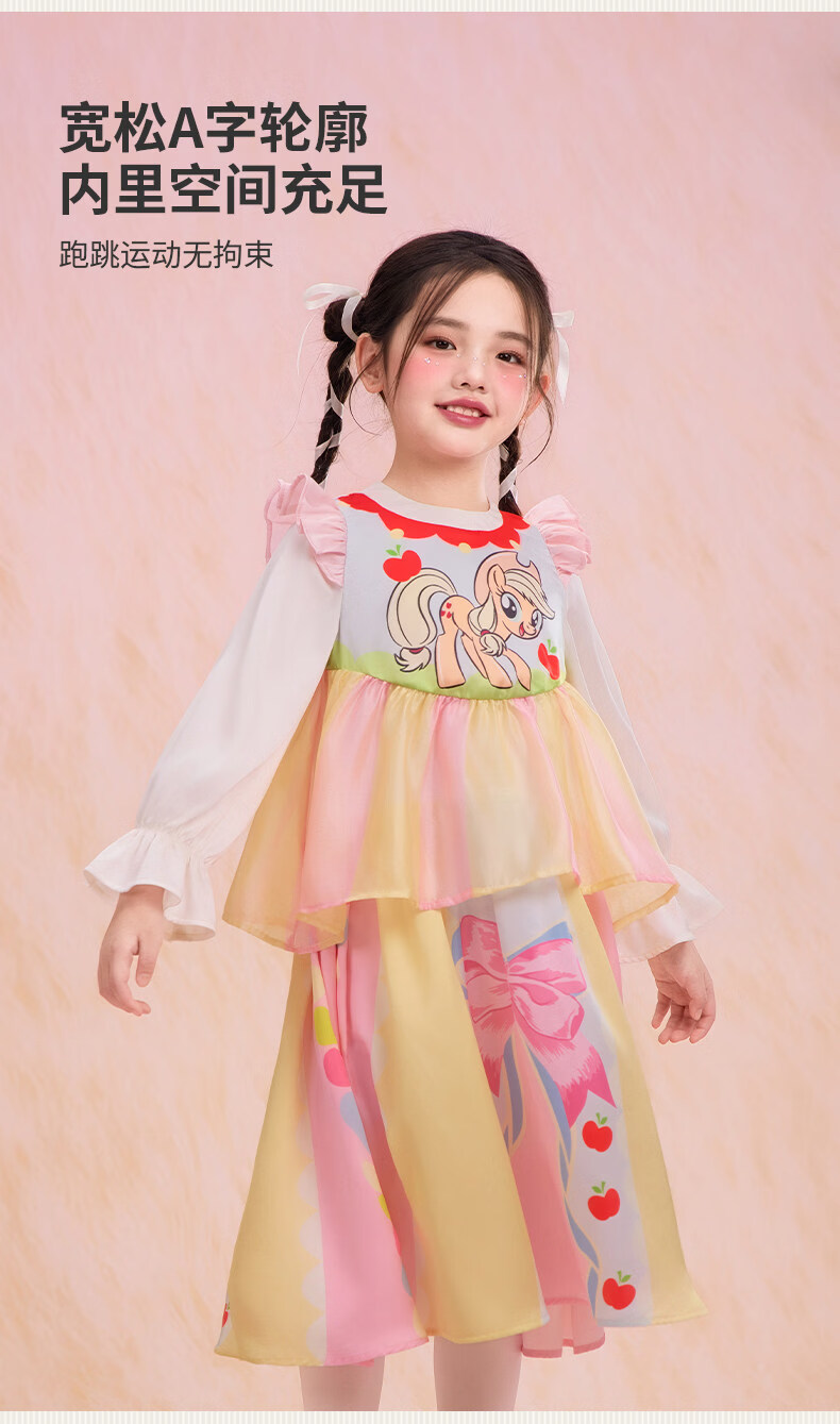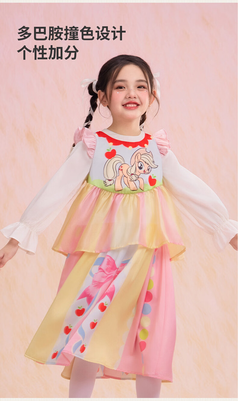 New year's clothing My Little Pony co-branded children's long-sleeved dress spring new style girls cartoon princess girl long skirt Hatsumo pink 100