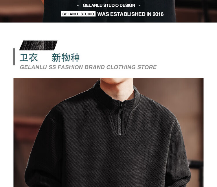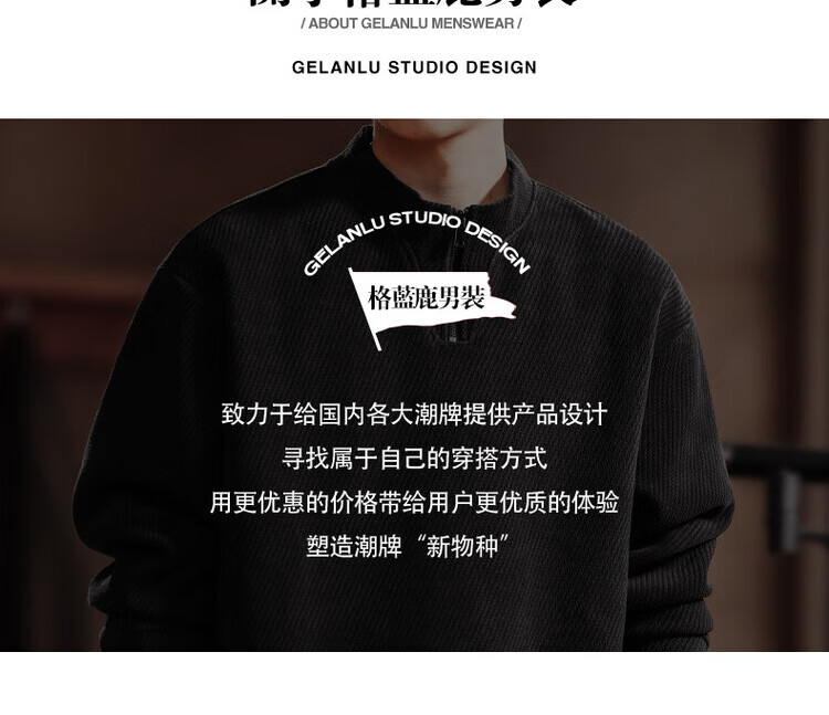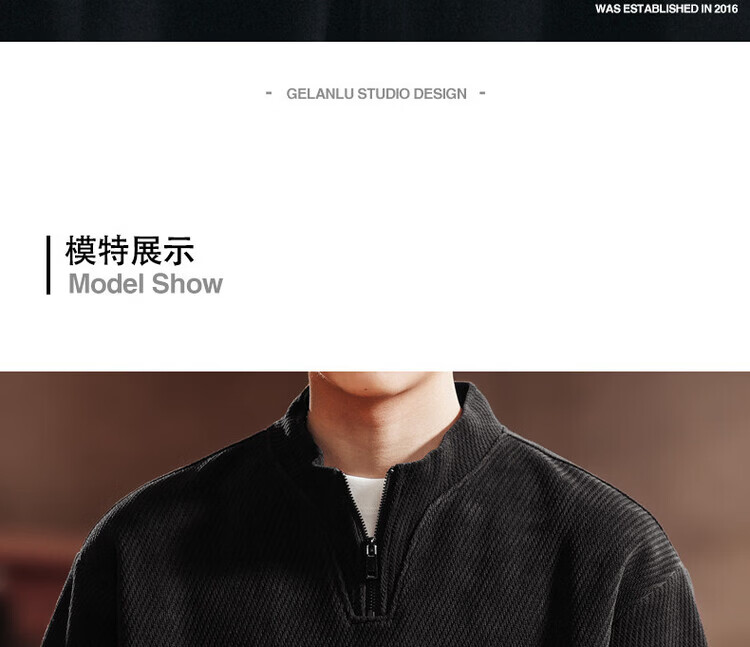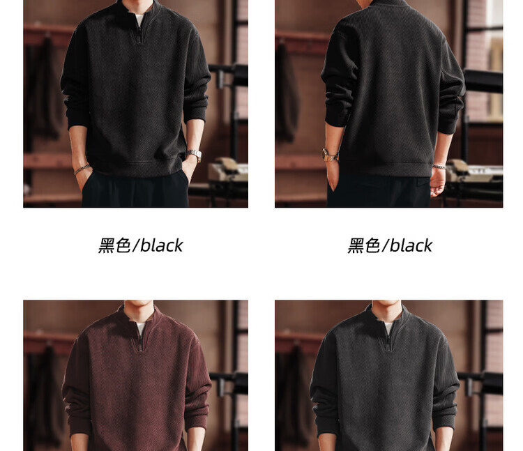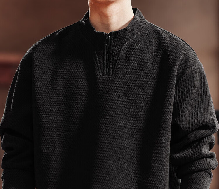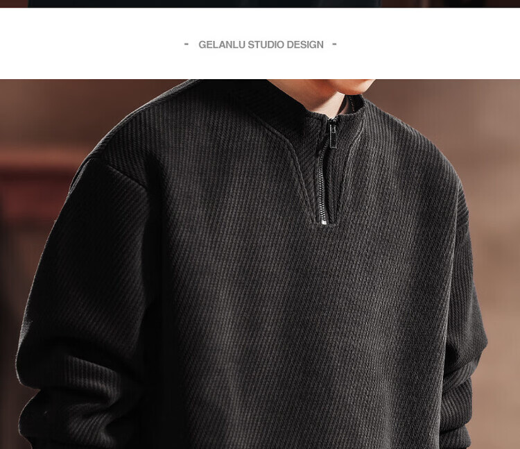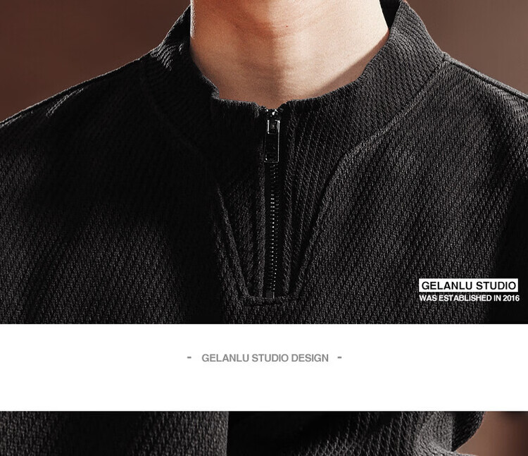 Green Deer high-end retro high-end half-zip long-sleeved sweatshirt men's spring and autumn casual tops black L suitable for 120-140Jin Jin equals 0.5 kg