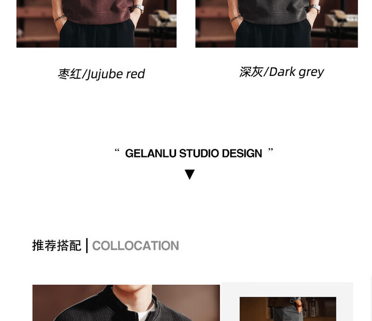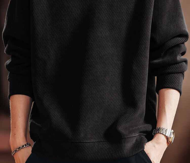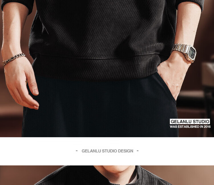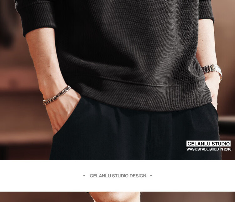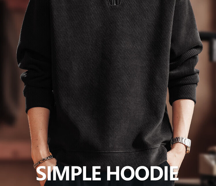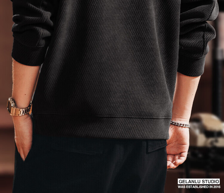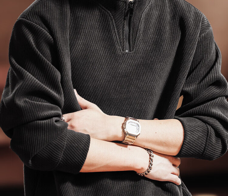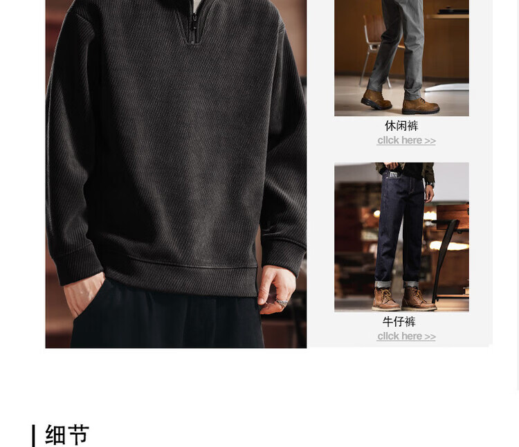 Green Deer high-end retro high-end half-zip long-sleeved sweatshirt men's spring and autumn casual tops black L suitable for 120-140Jin Jin equals 0.5 kg