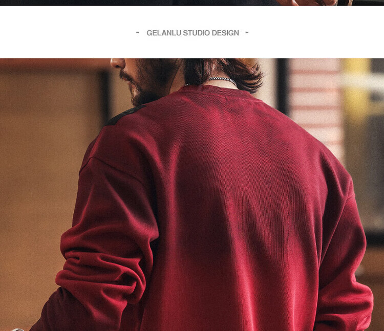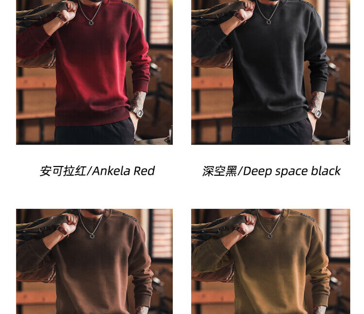 Green Deer American retro heavyweight dirty dyed spring and autumn men's sweatshirt new loose long-sleeved T-shirt top trendy Ancora red L suitable for 130-150Jin Jin equals 0.5 kg