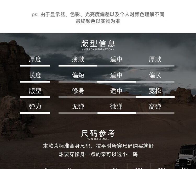 China (cm) 165 / 88-90 170 / 96-98 175 / 108-110 180 / 118-122 185 / 126-130