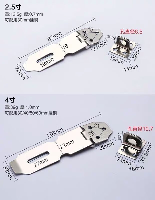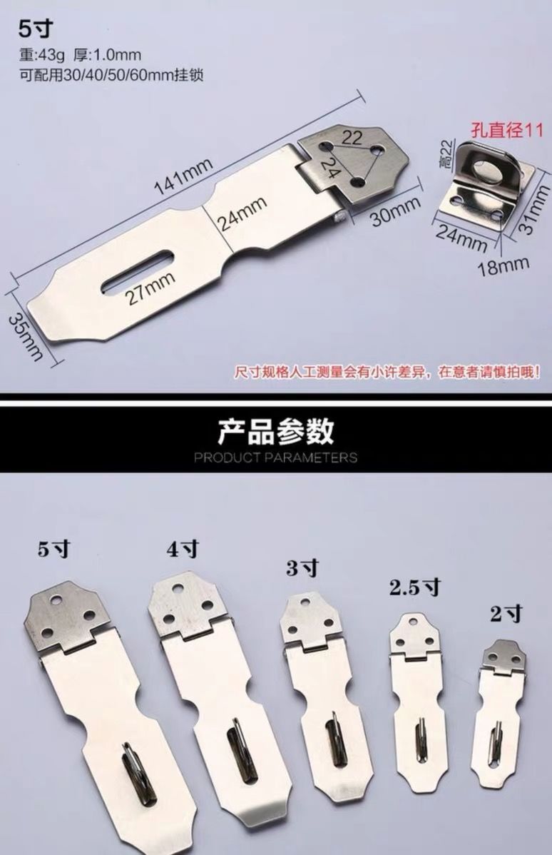 Junmo hinge hinge stainless steel lock buckle lock bolt old wooden latch thickened buckle latch nose buckle 5 inches + screws