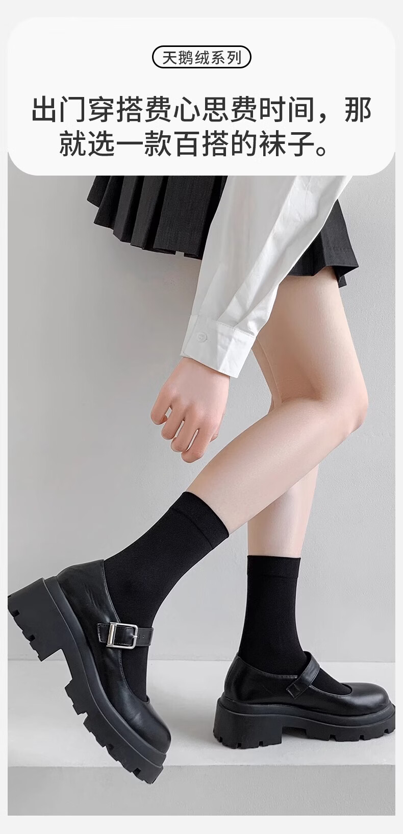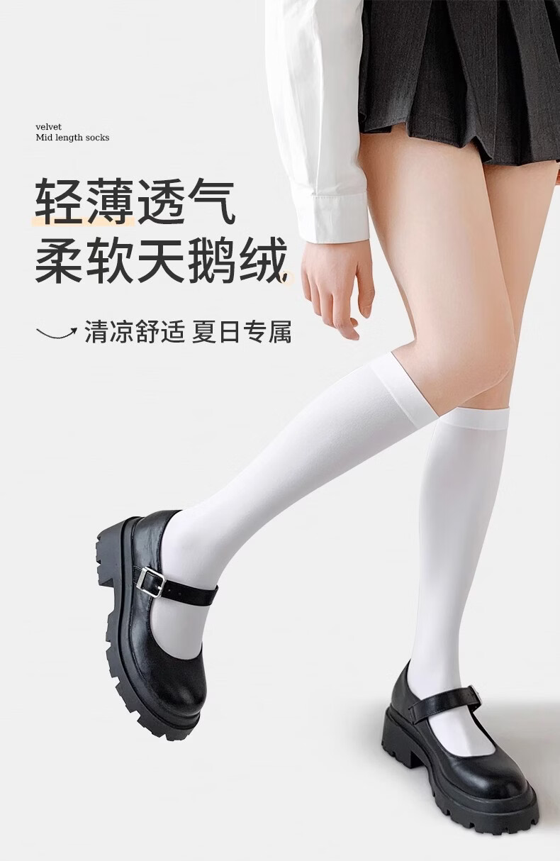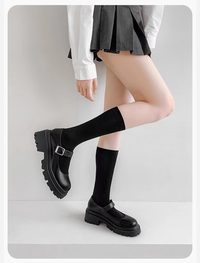 Black socks women's socks spring and autumn goose down long tube knee-high jk calf socks non-falling pressure Japanese sweet black mid-calf socks one size