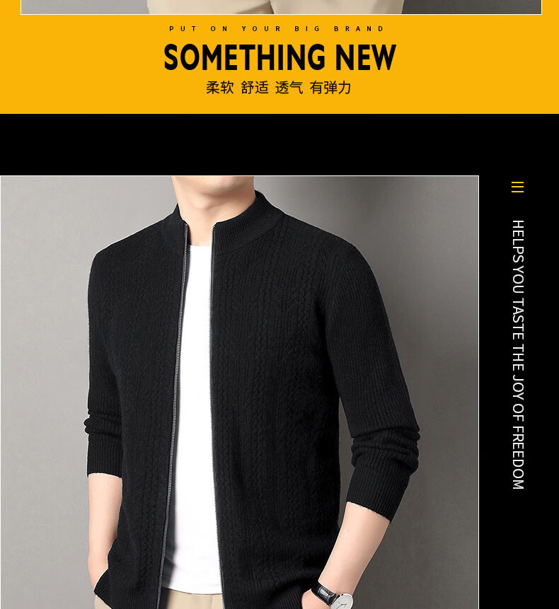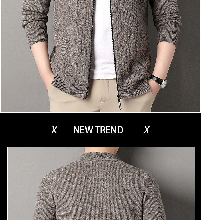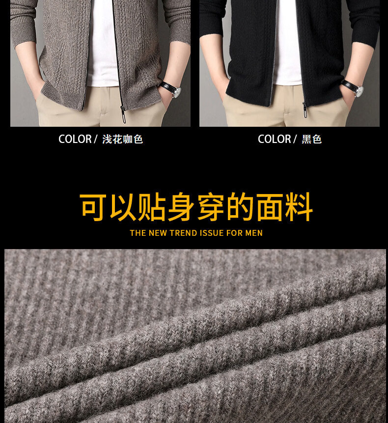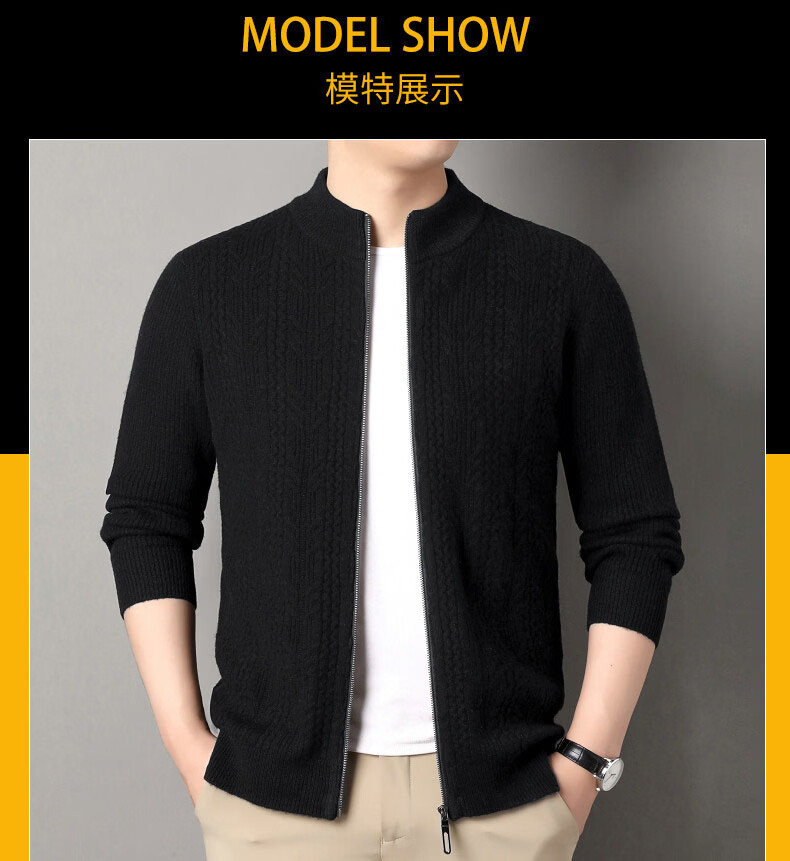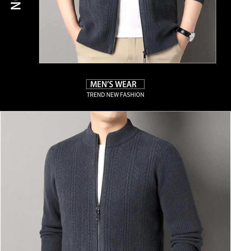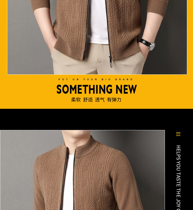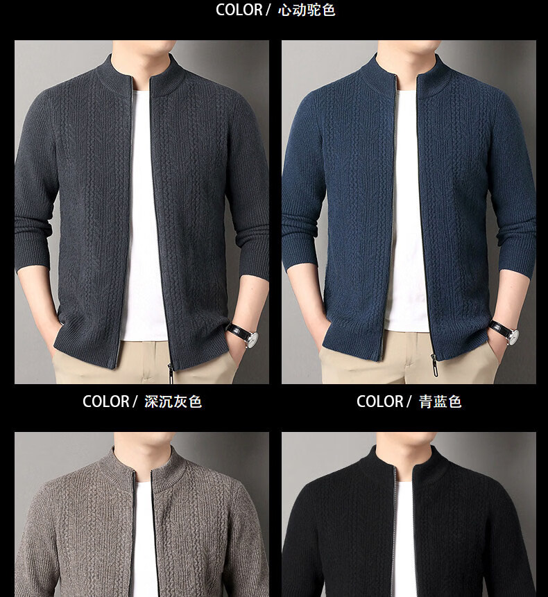GUSKI light luxury brand high-end men's wool sweater casual stand-up collar sweater thickened warm knitted cardigan business bottoming shirt exciting camel color exquisite gift box M (105)