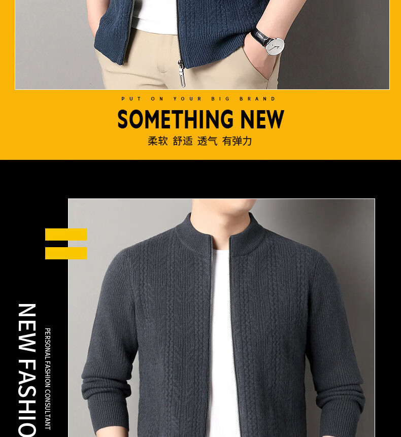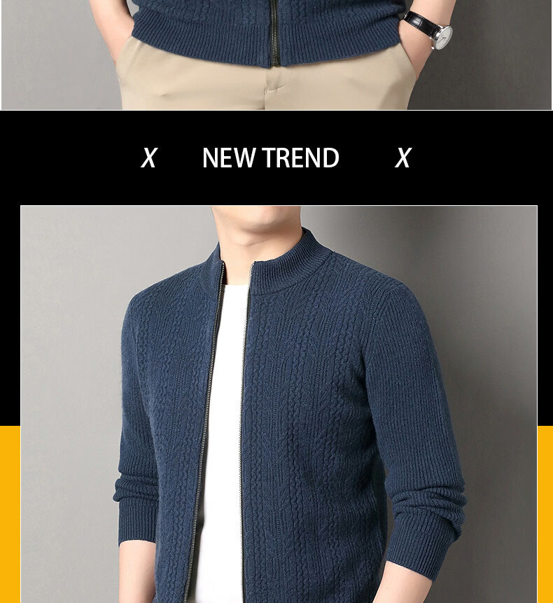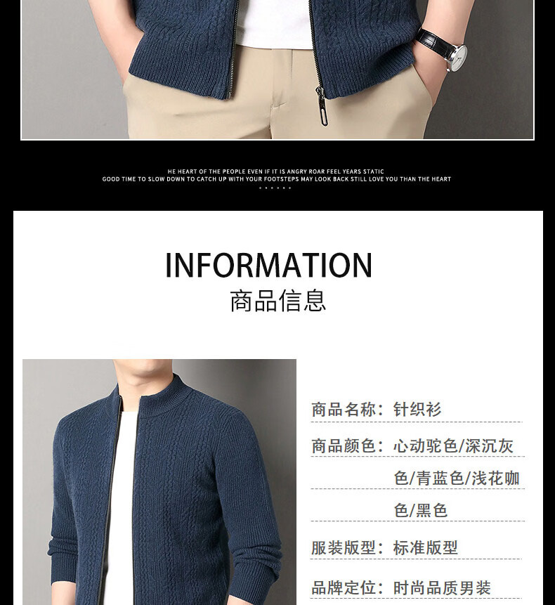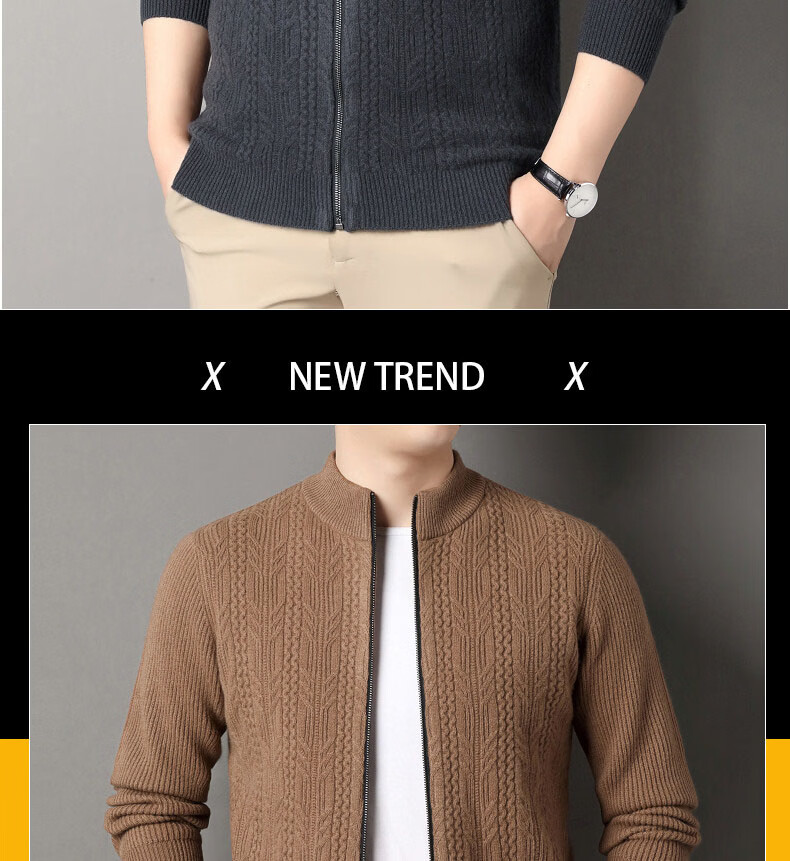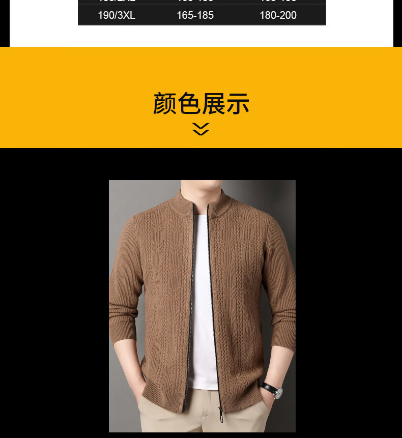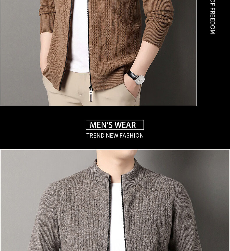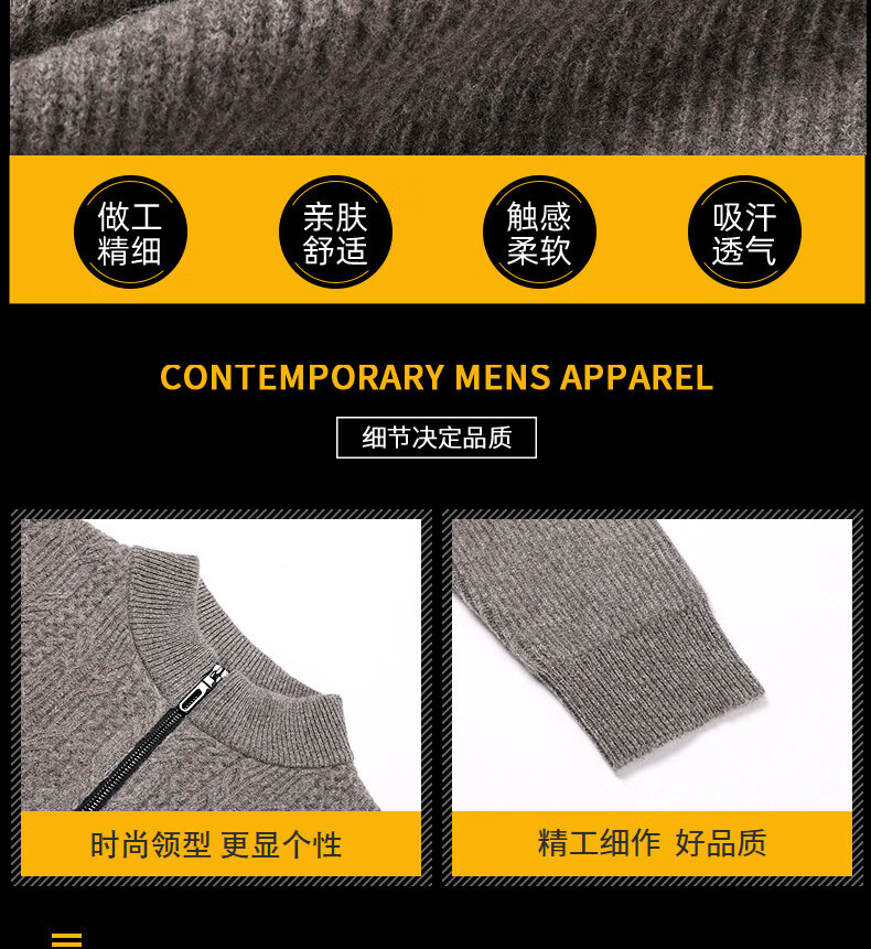 GUSKI light luxury brand high-end men's wool sweater casual stand-up collar sweater thickened warm knitted cardigan business bottoming shirt exciting camel color exquisite gift box M (105)