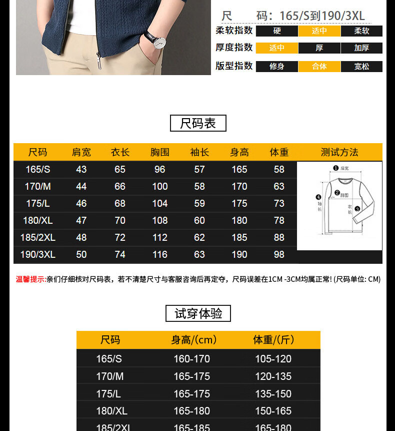 China (cm) 165 / 88-90 170 / 96-98 175 / 108-110 180 / 118-122 185 / 126-130